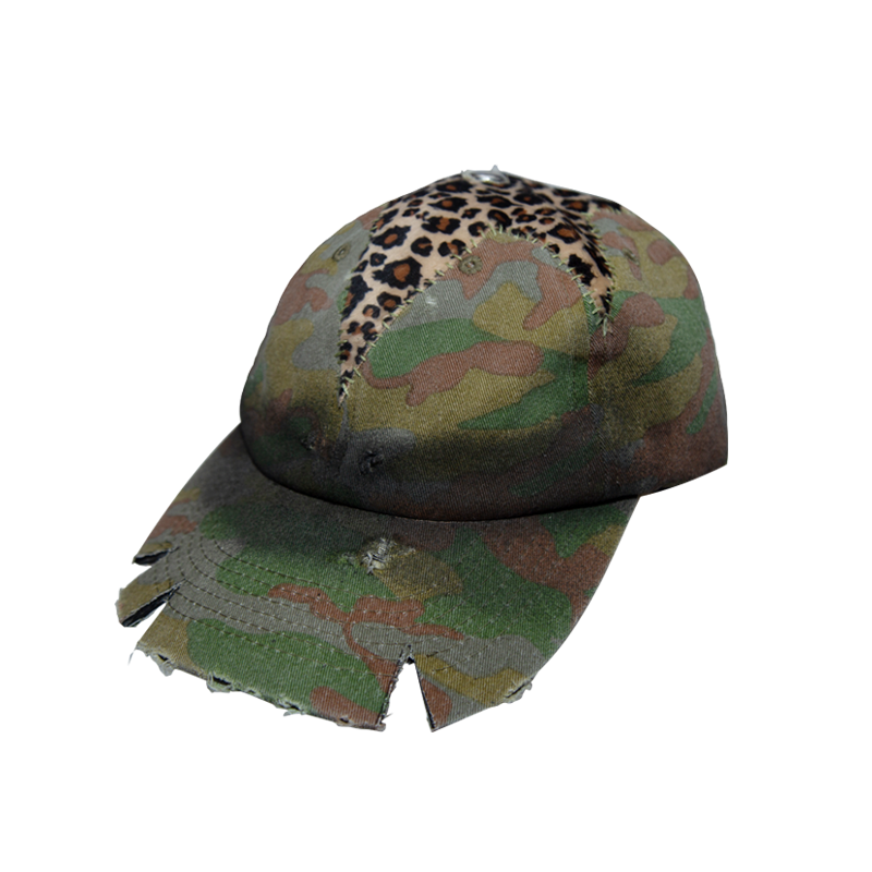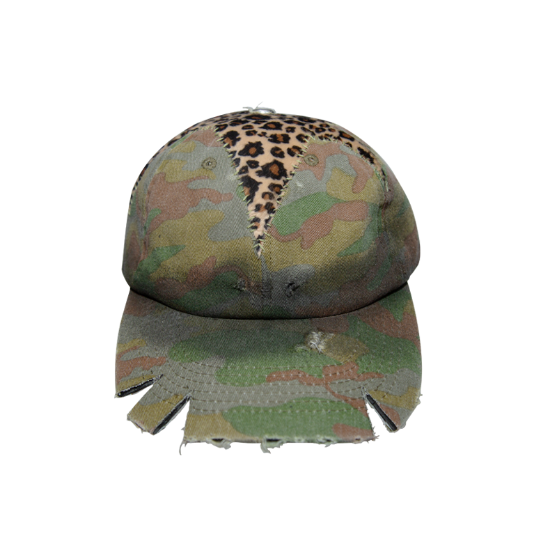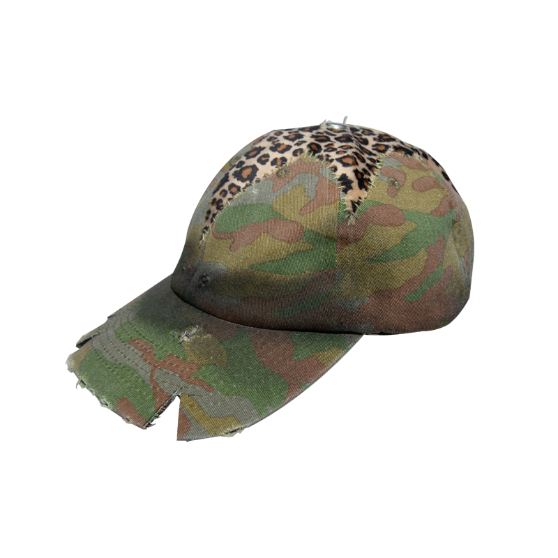 Irregular Brim Leopard Patchwork Damage Cap WN21092