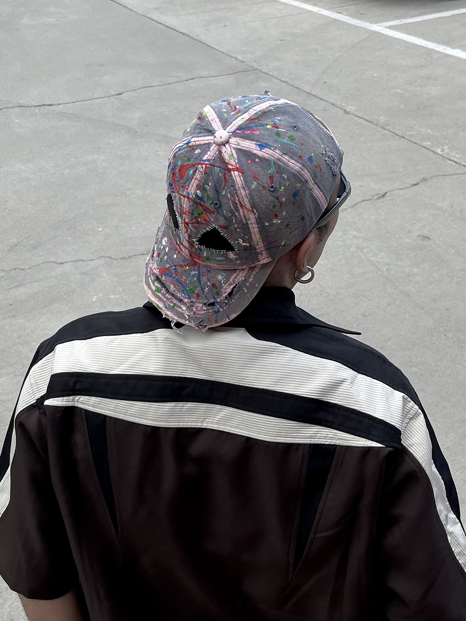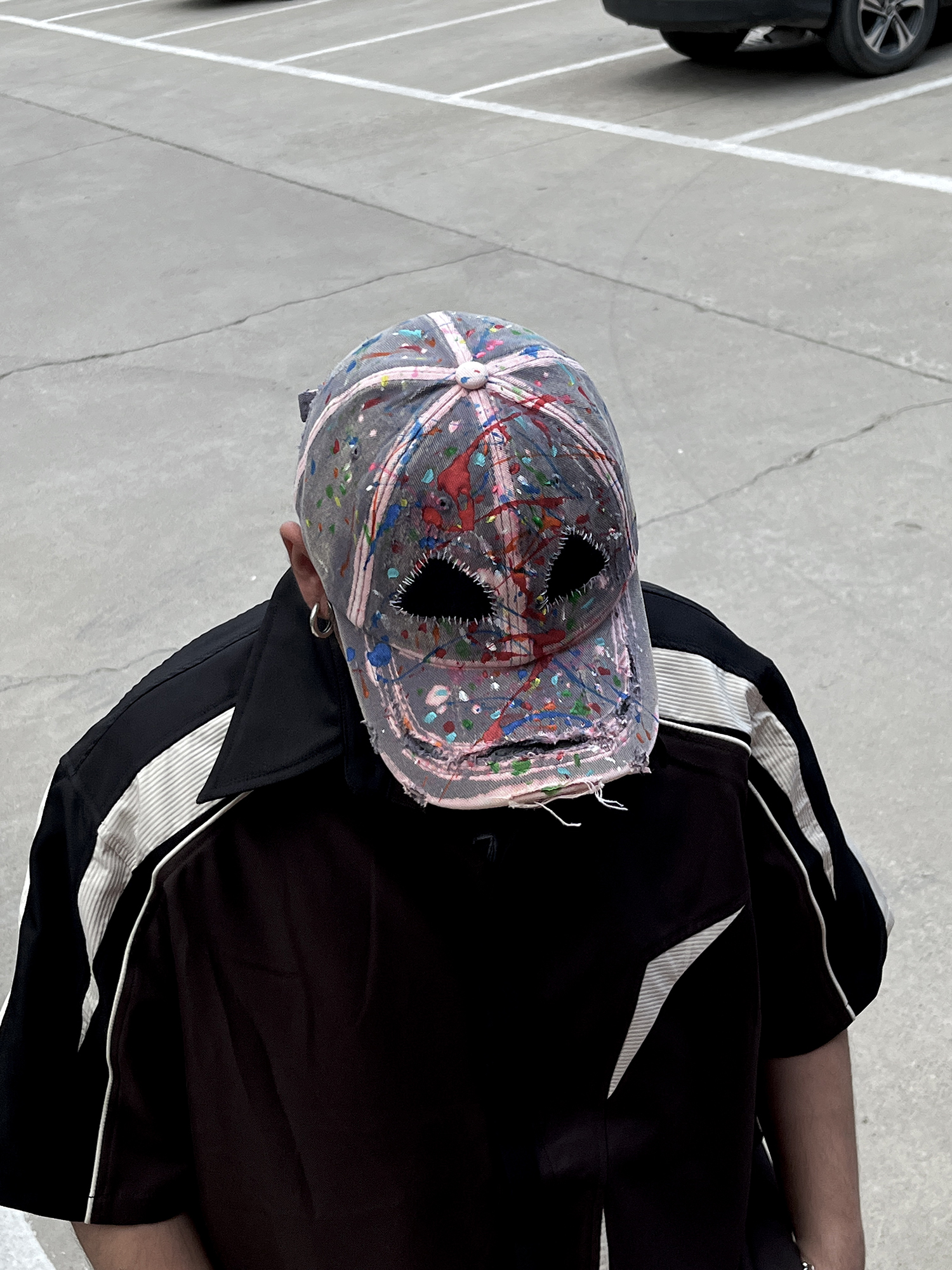 Paint Graffiti Patchwork Denim Washed Cap WN21122
