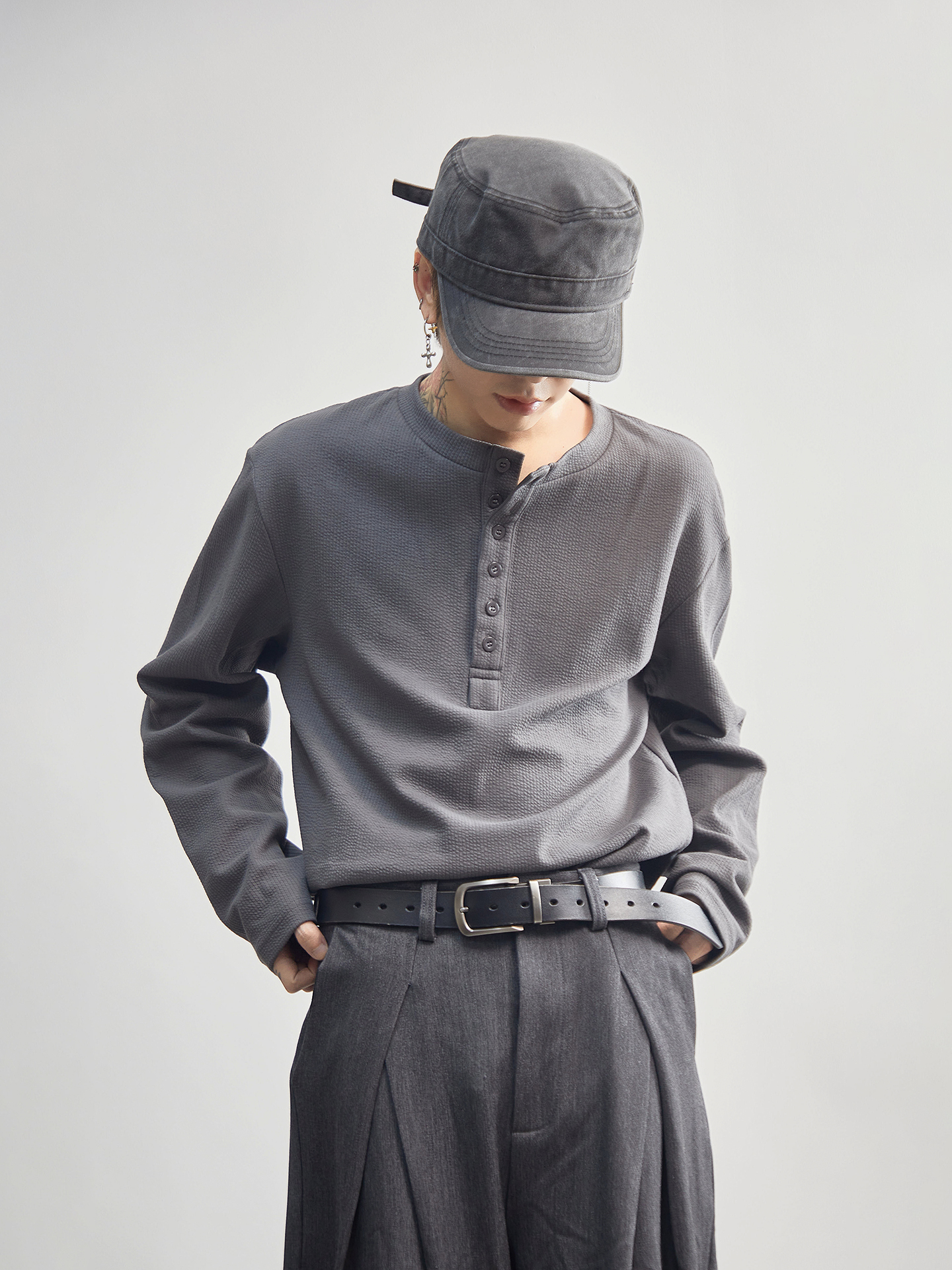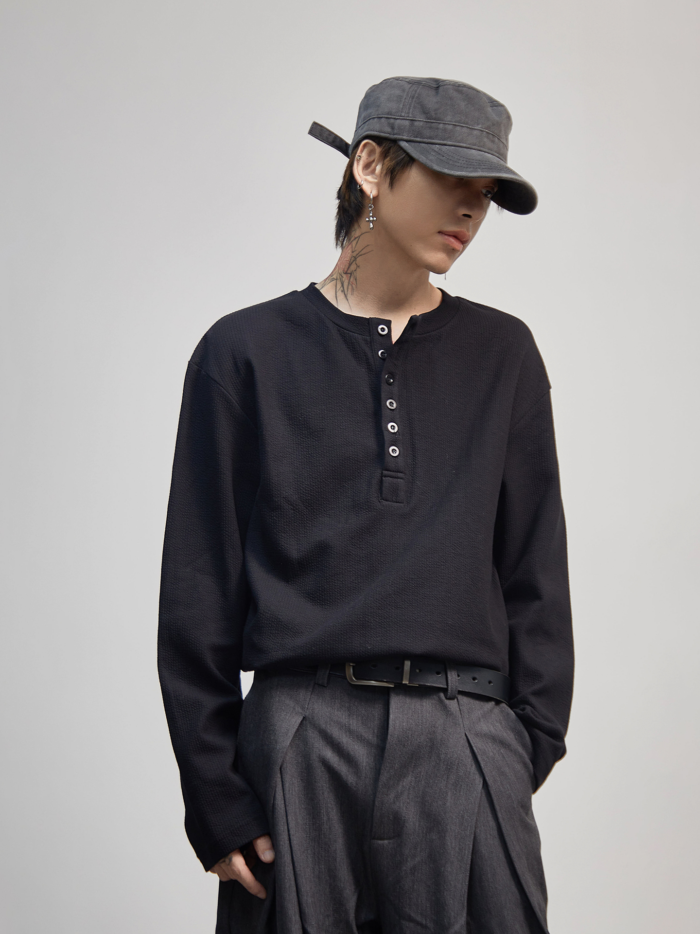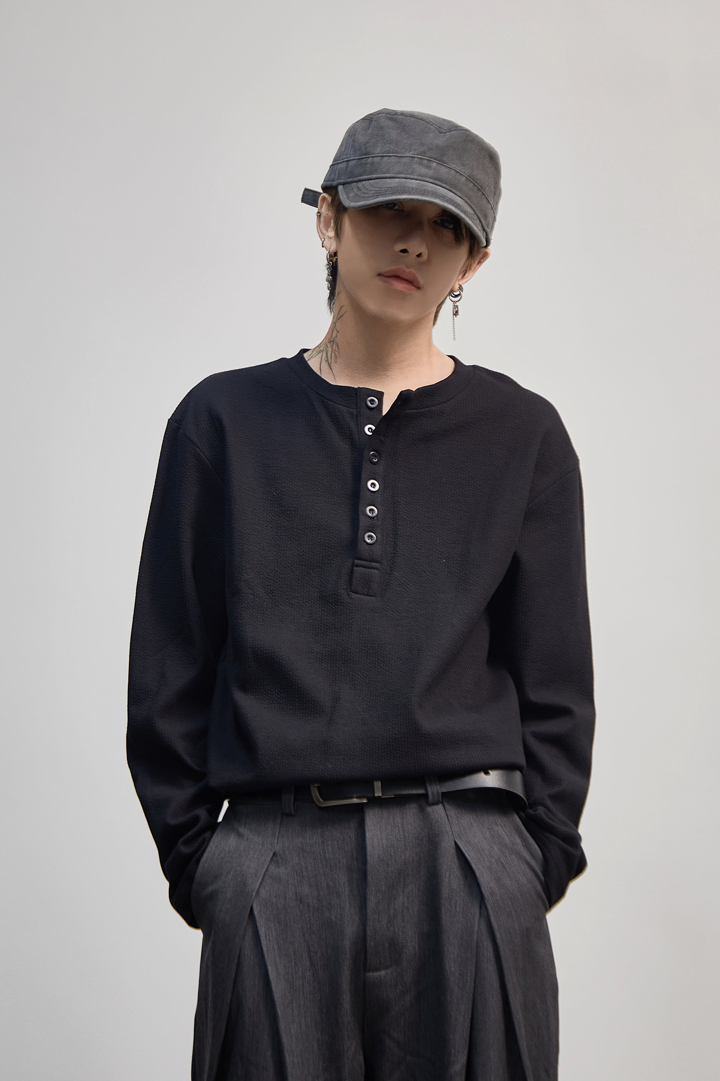 Half-Button Plain Long Sleeve T-Shirt WN21185