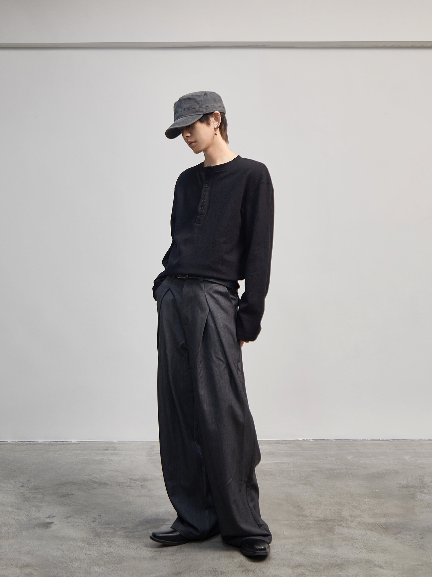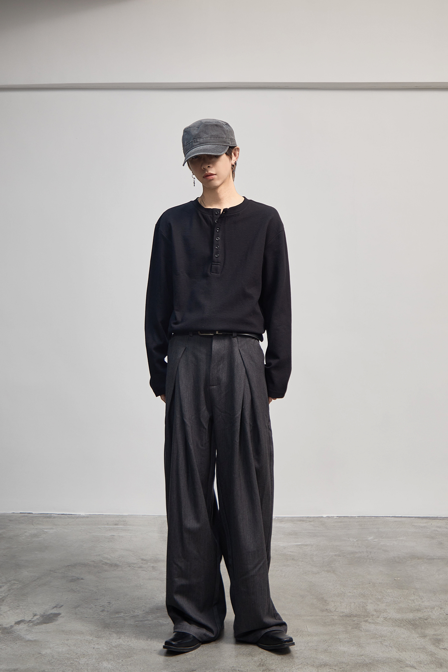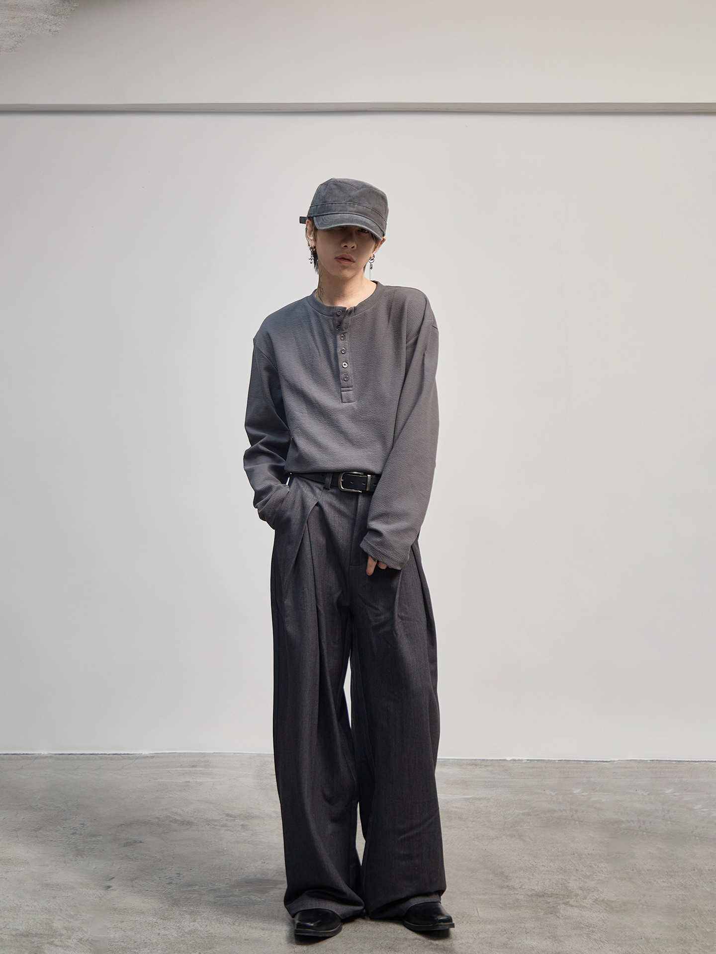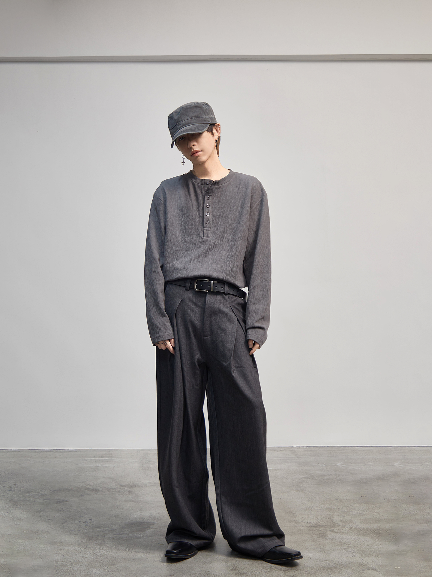 Half-Button Plain Long Sleeve T-Shirt WN21185