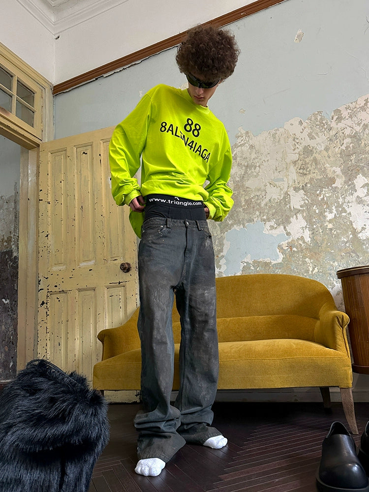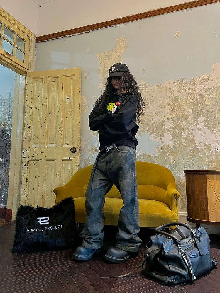 Washed Faded Mud-Dye Paint Damage Denim Jeans WN21318