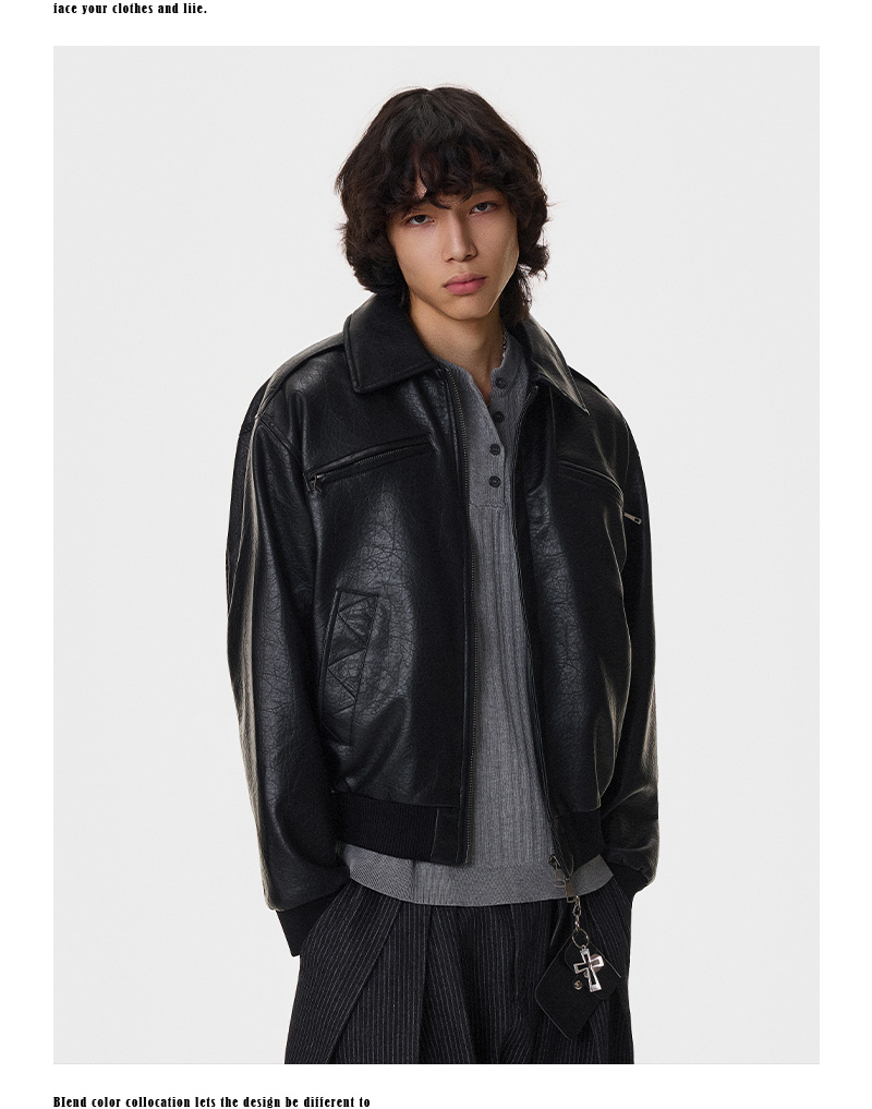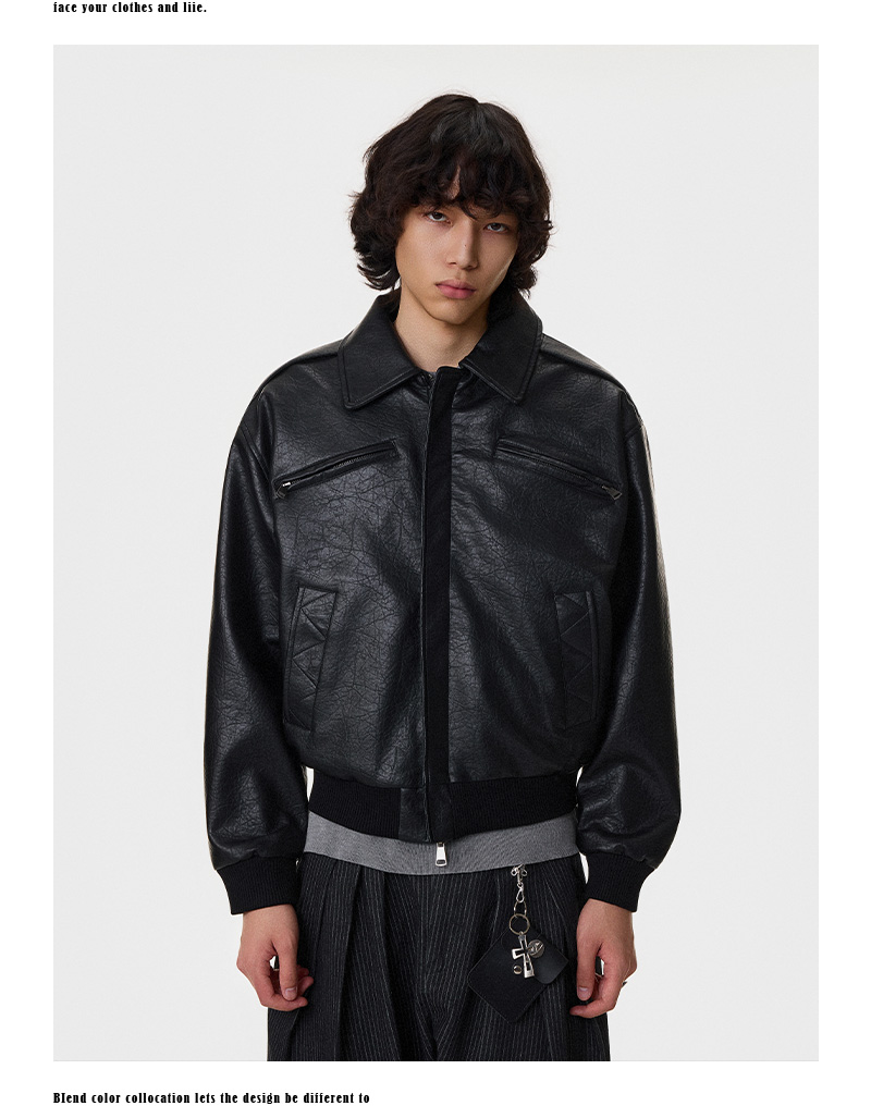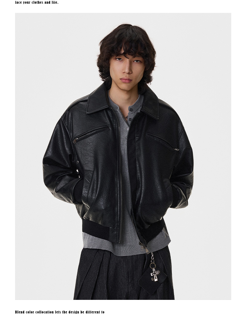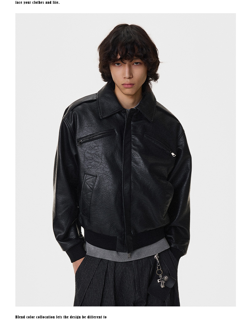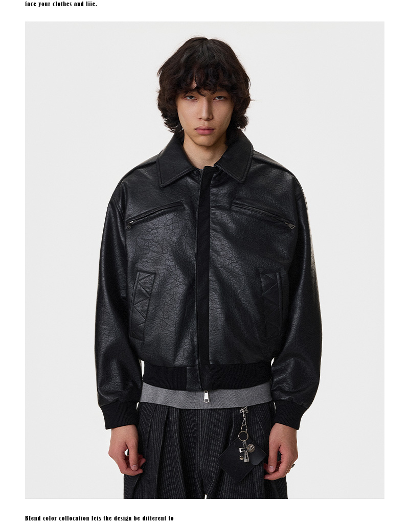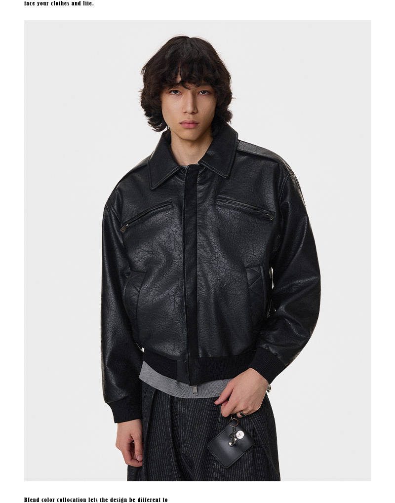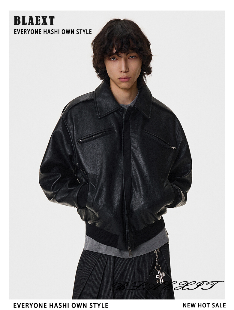 Textured Multi-Pocket Short PU Leather Jacket WN21394