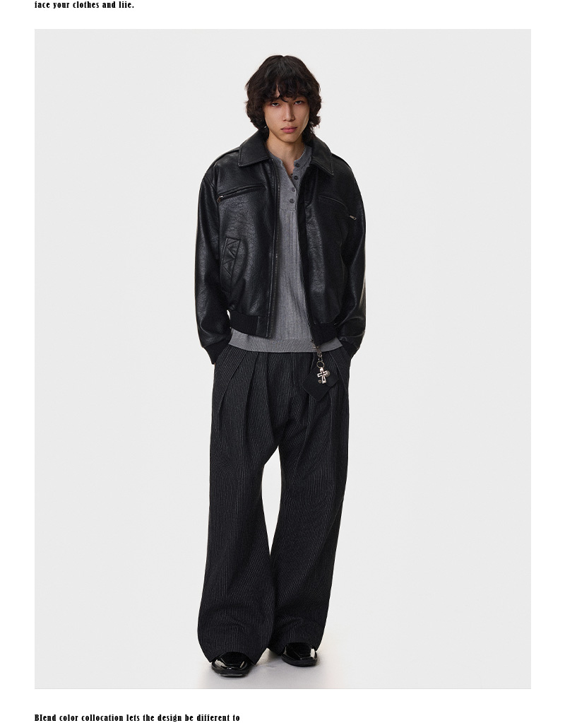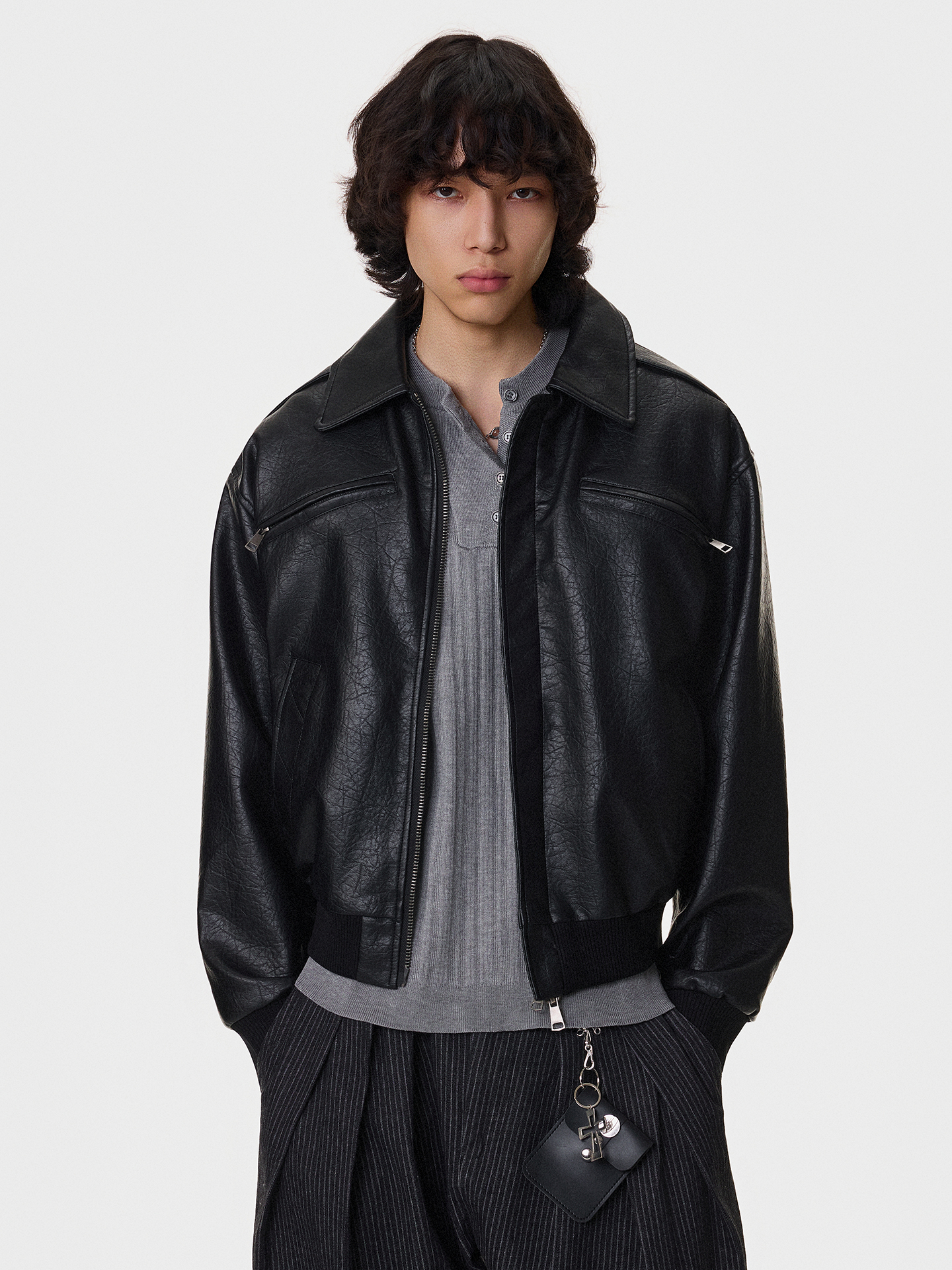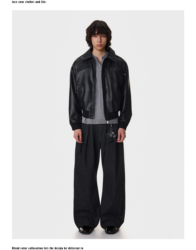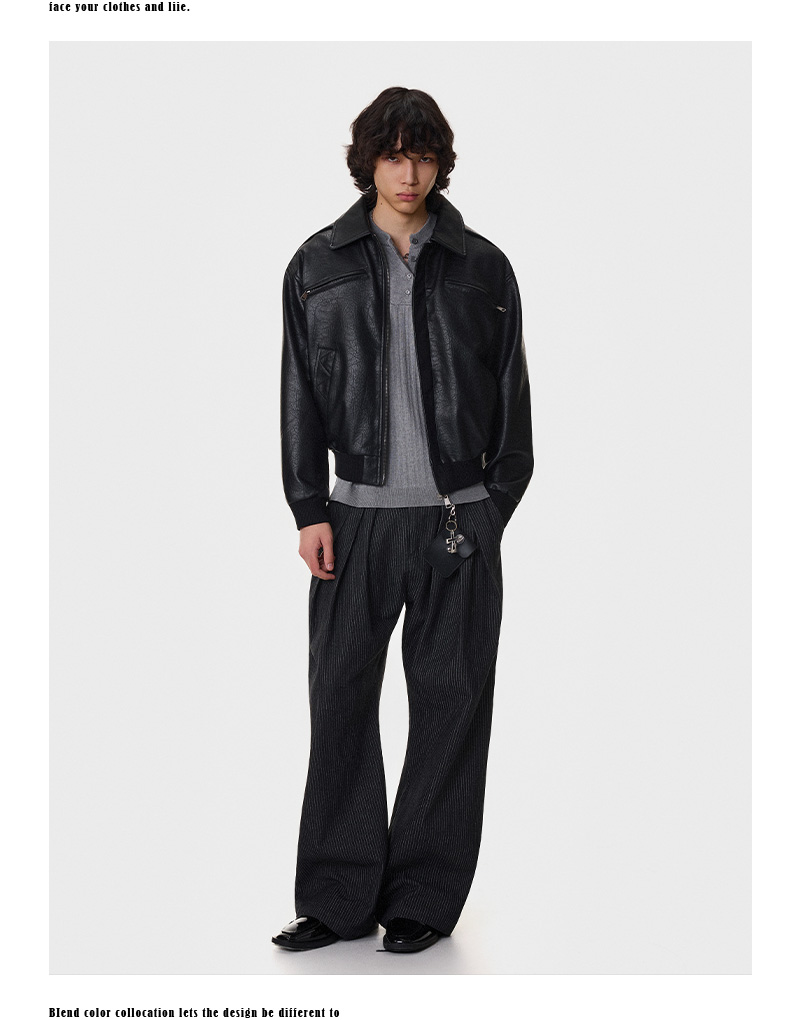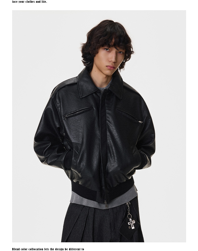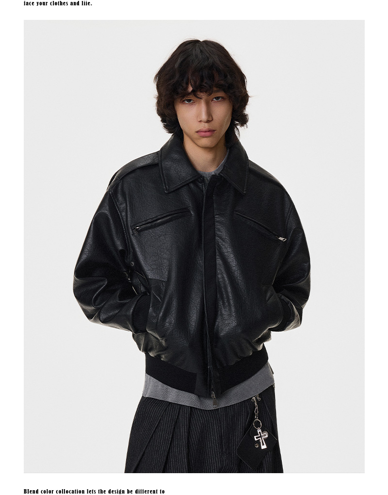 Textured Multi-Pocket Short PU Leather Jacket WN21394