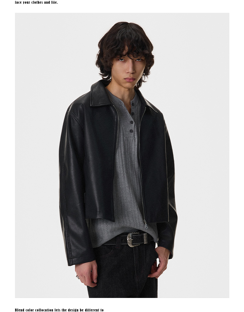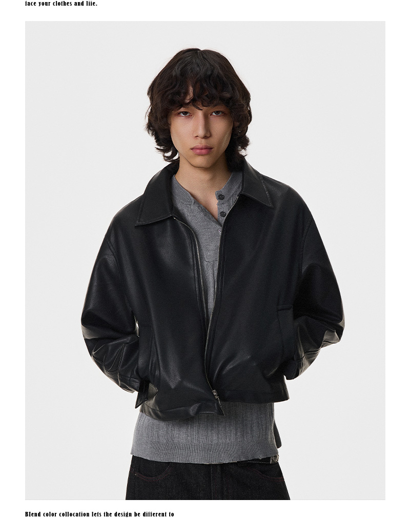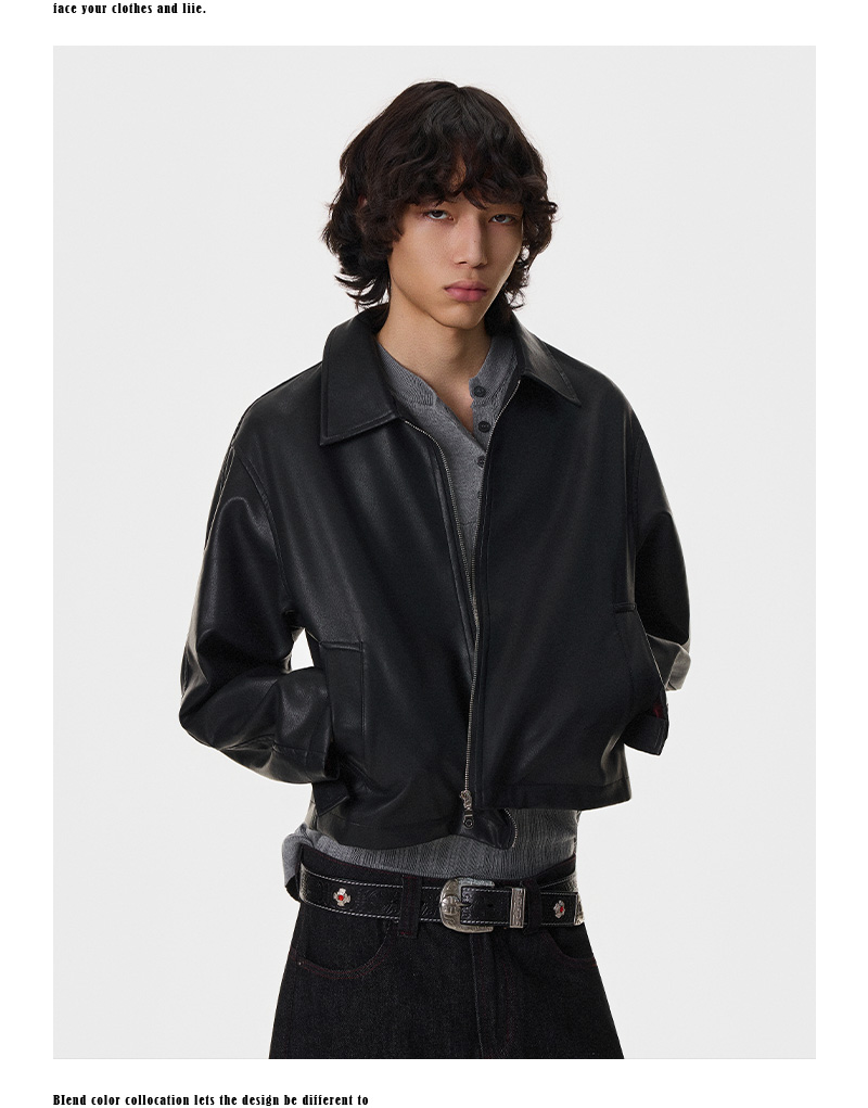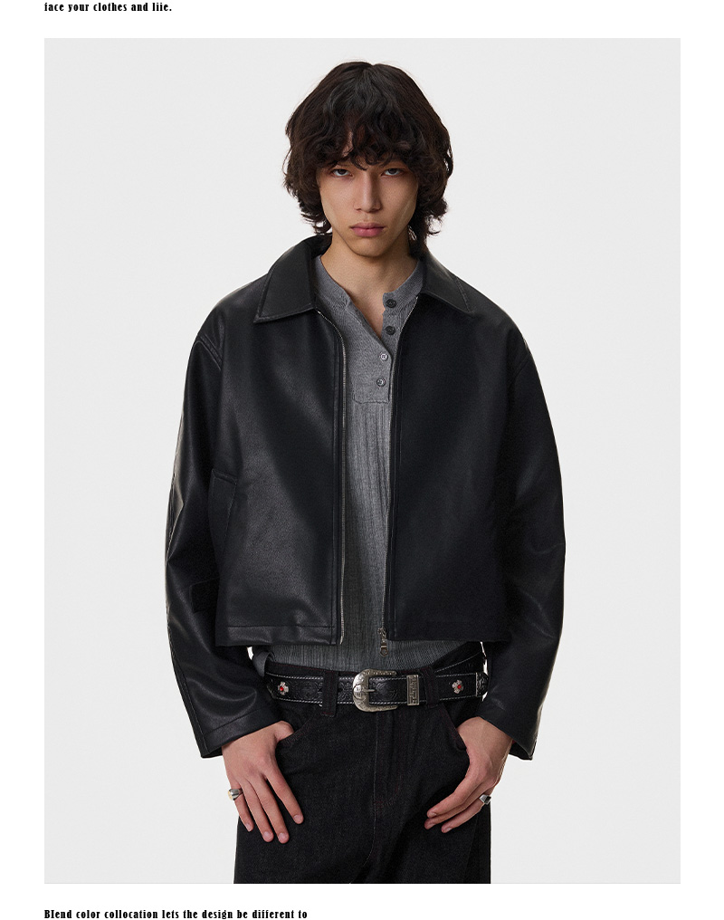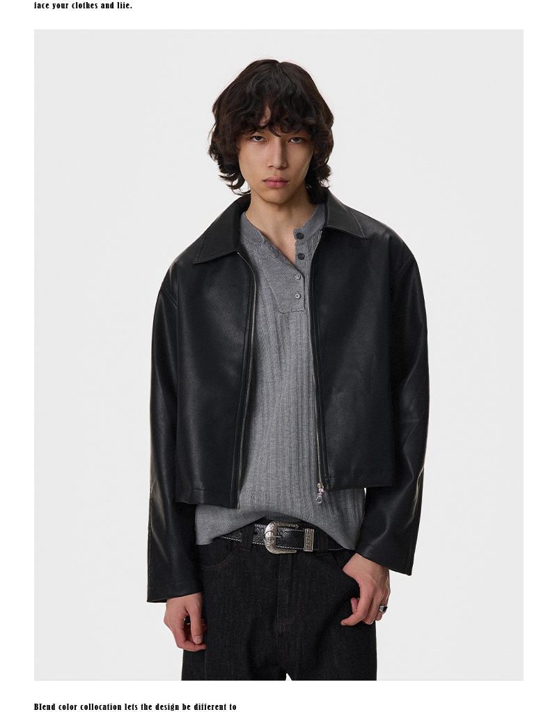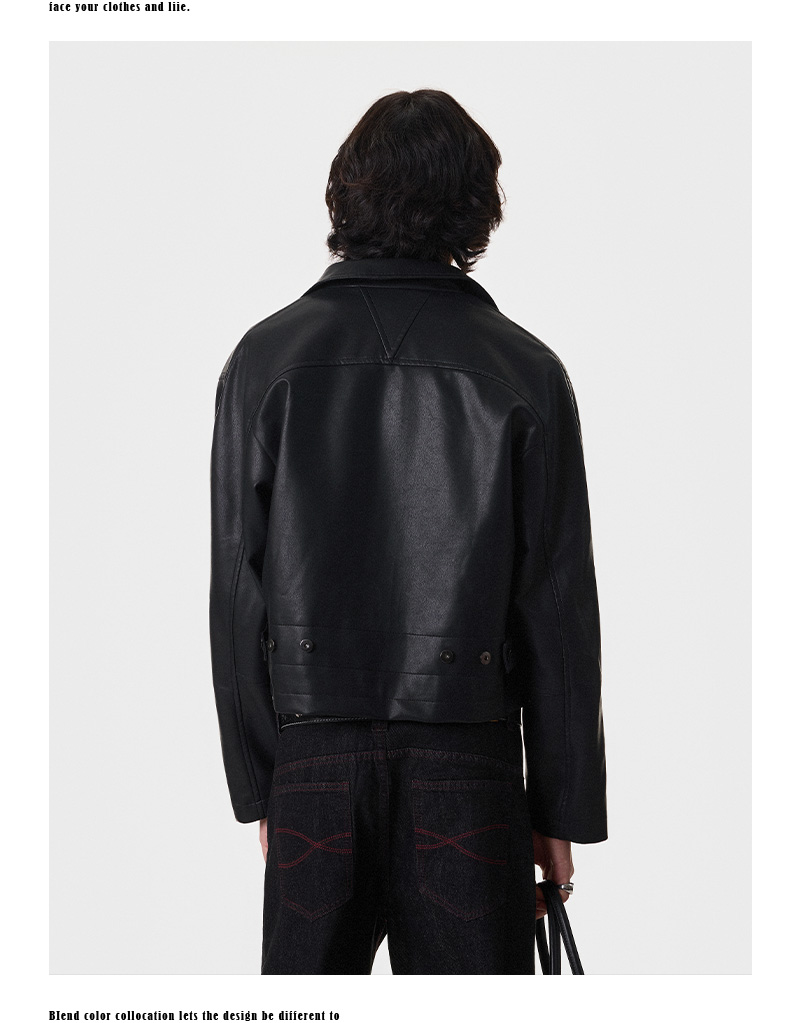 Turn-Down Collar Short PU Leather Jacket WN21395