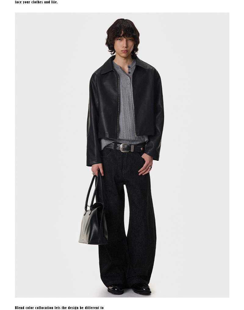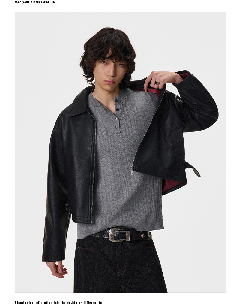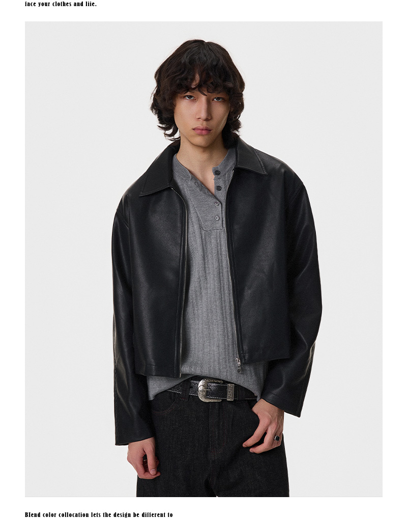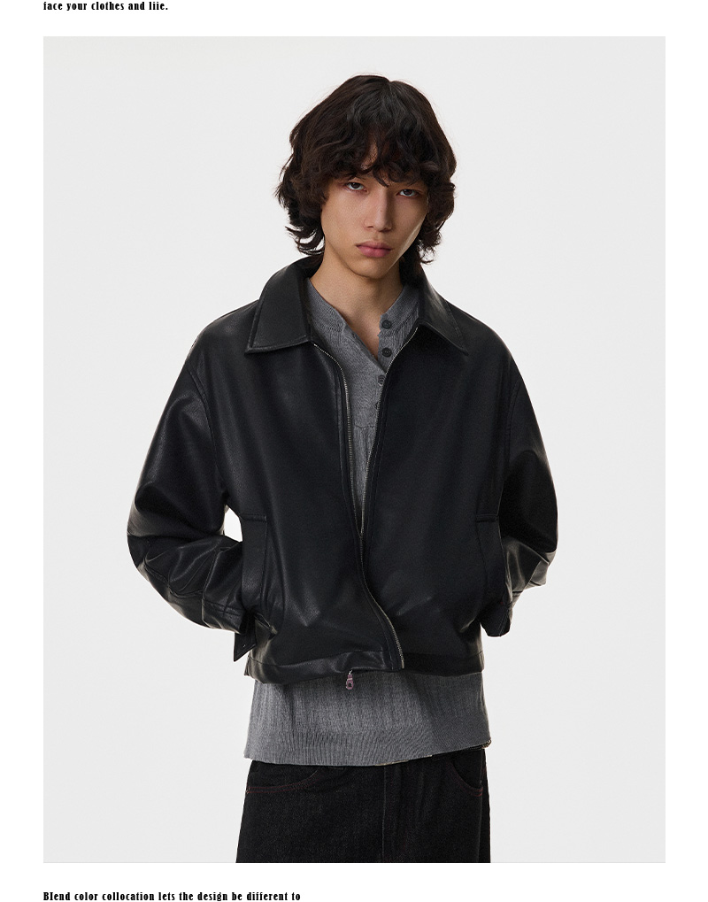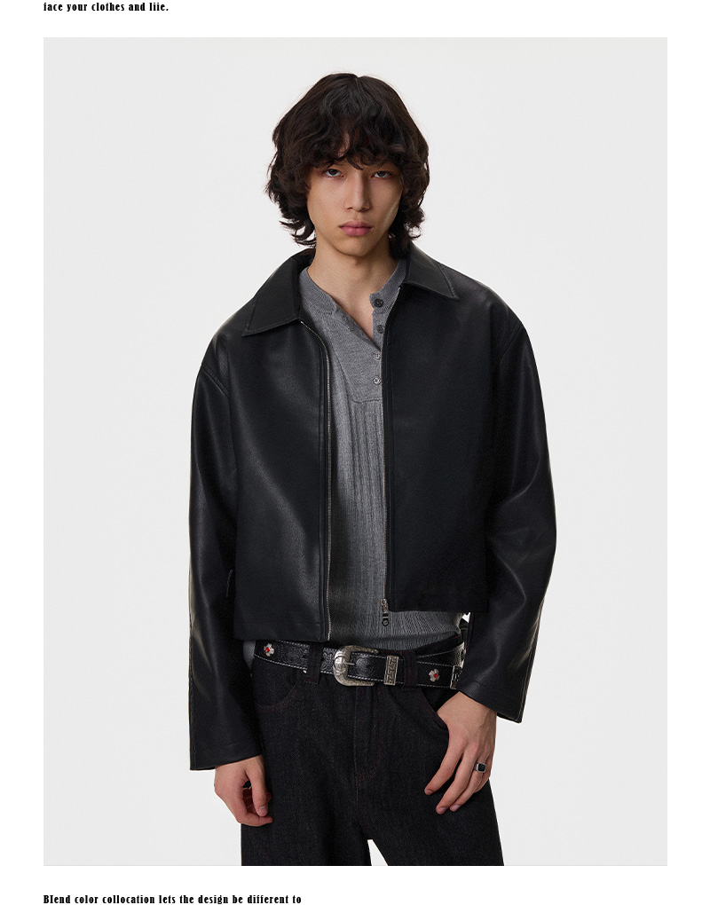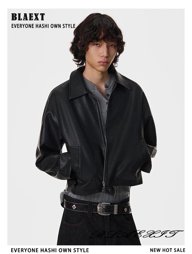 Turn-Down Collar Short PU Leather Jacket WN21395