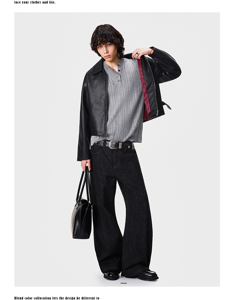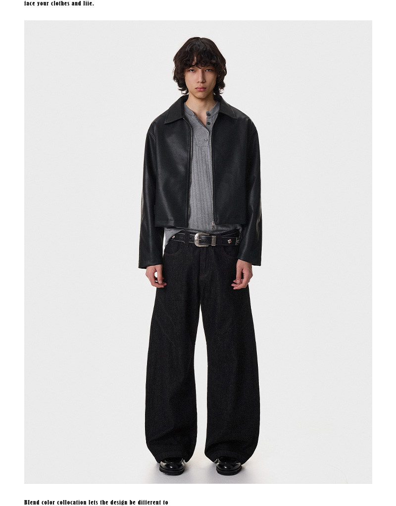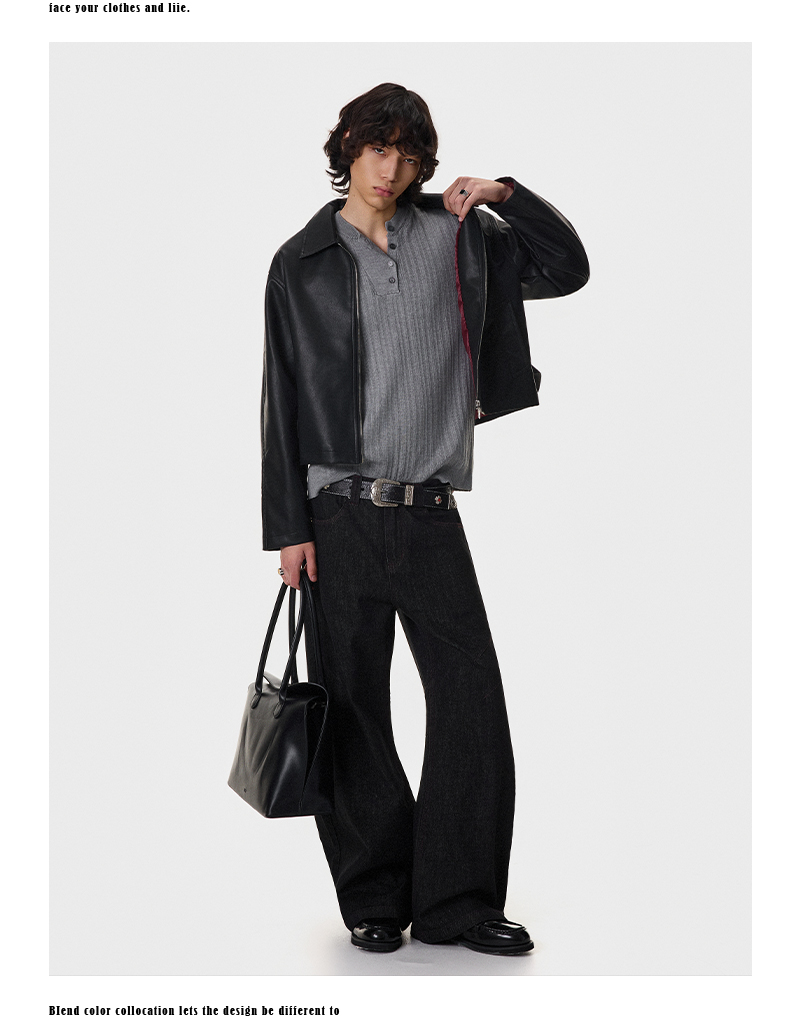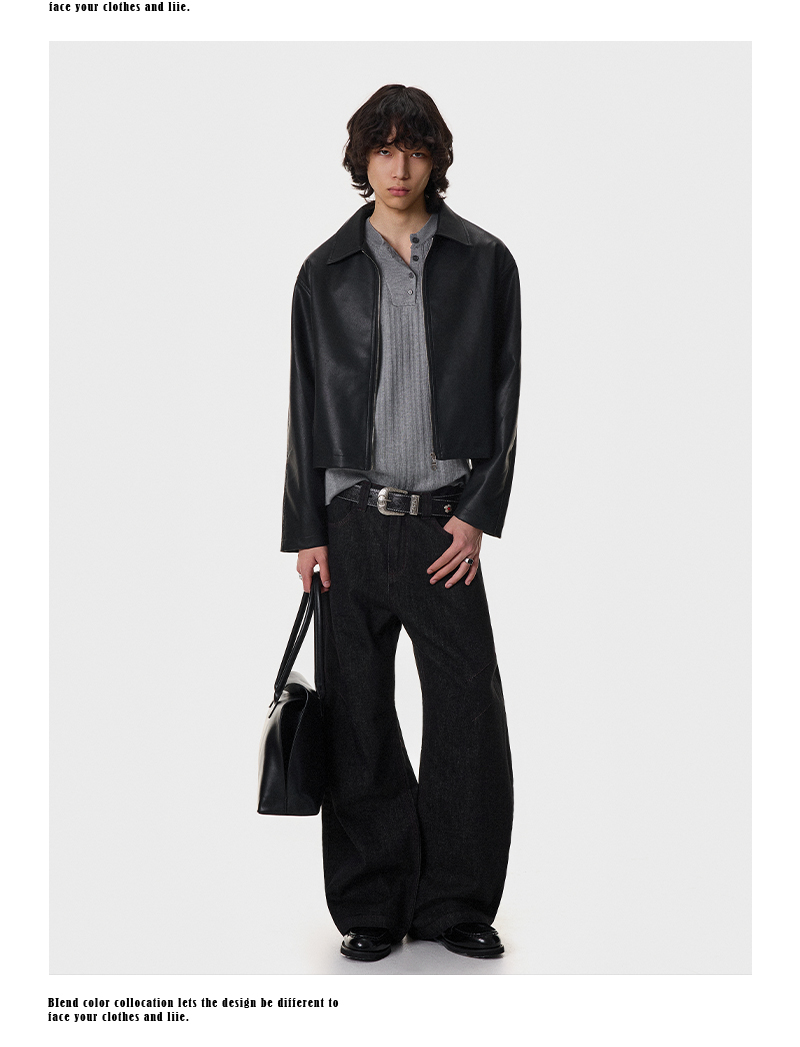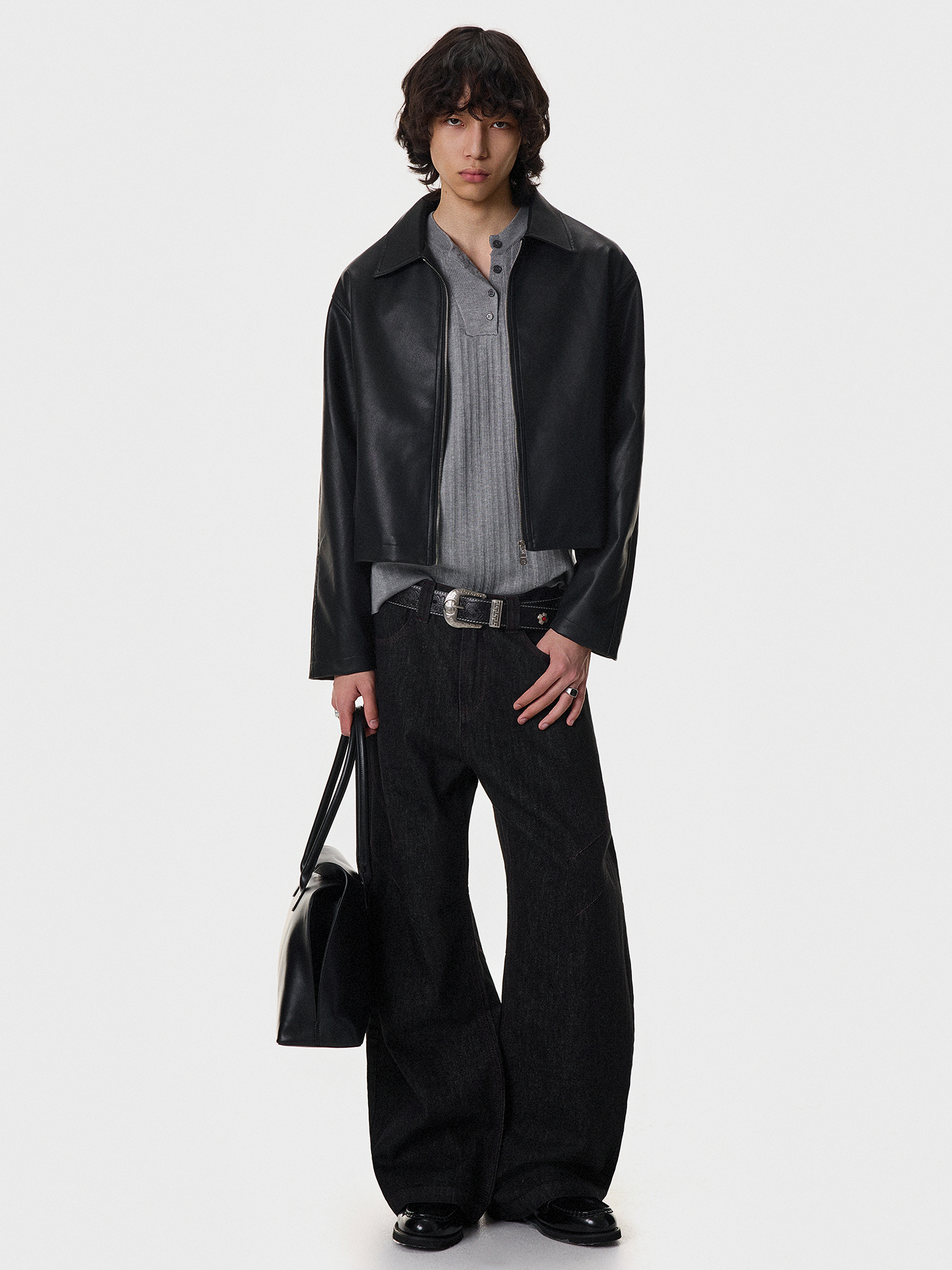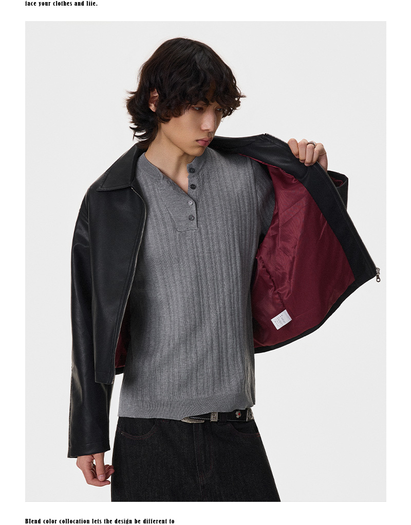 Turn-Down Collar Short PU Leather Jacket WN21395