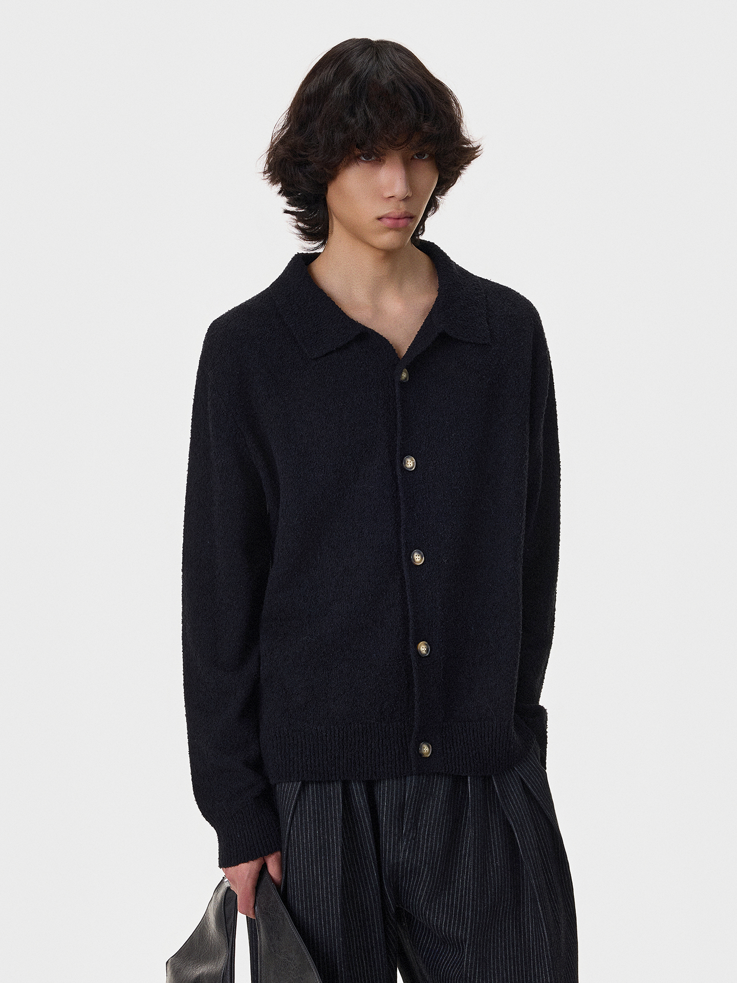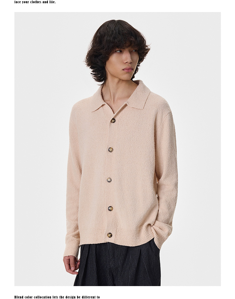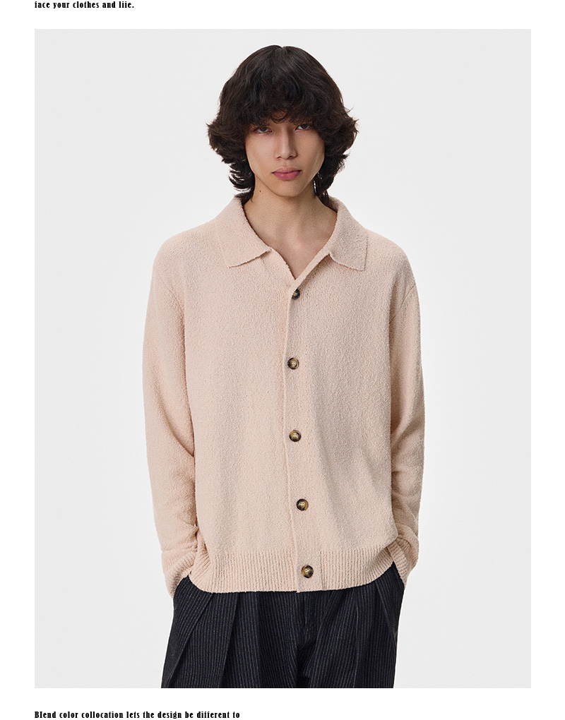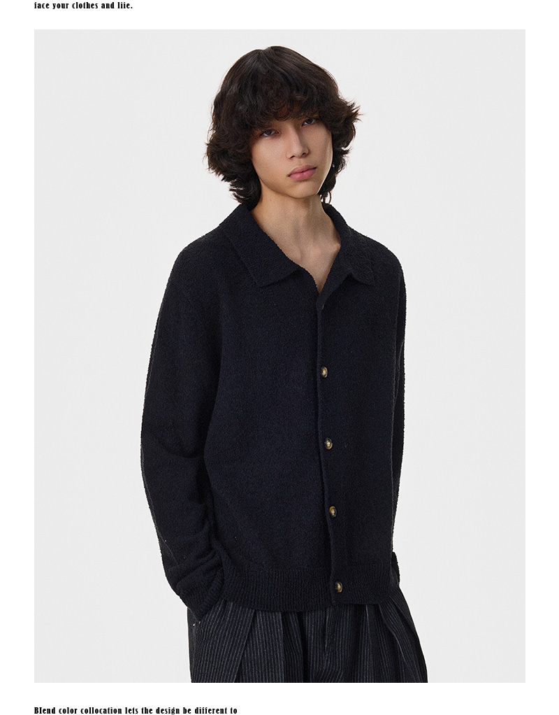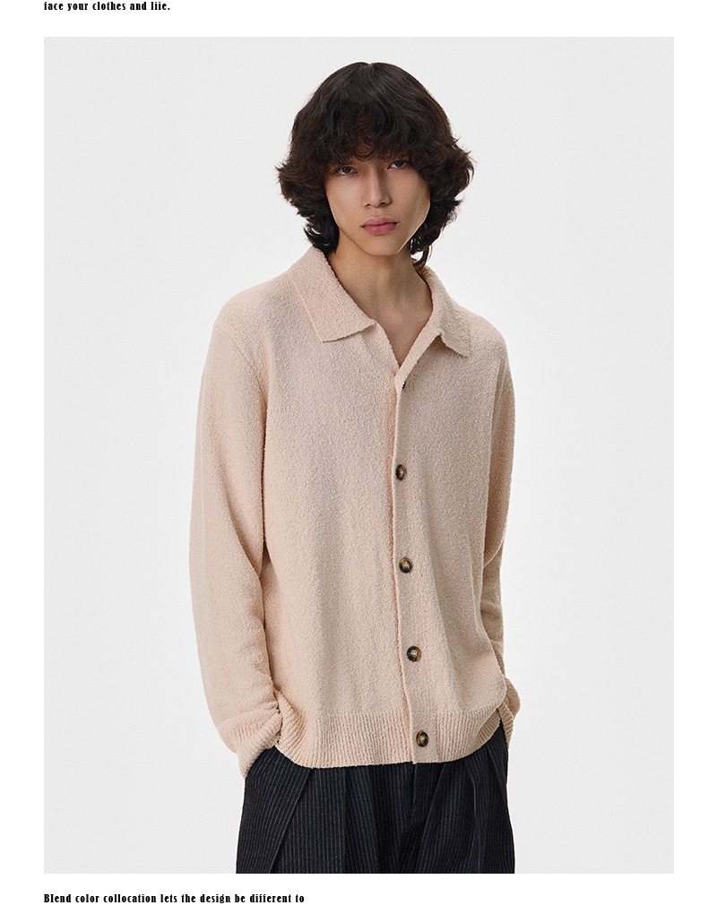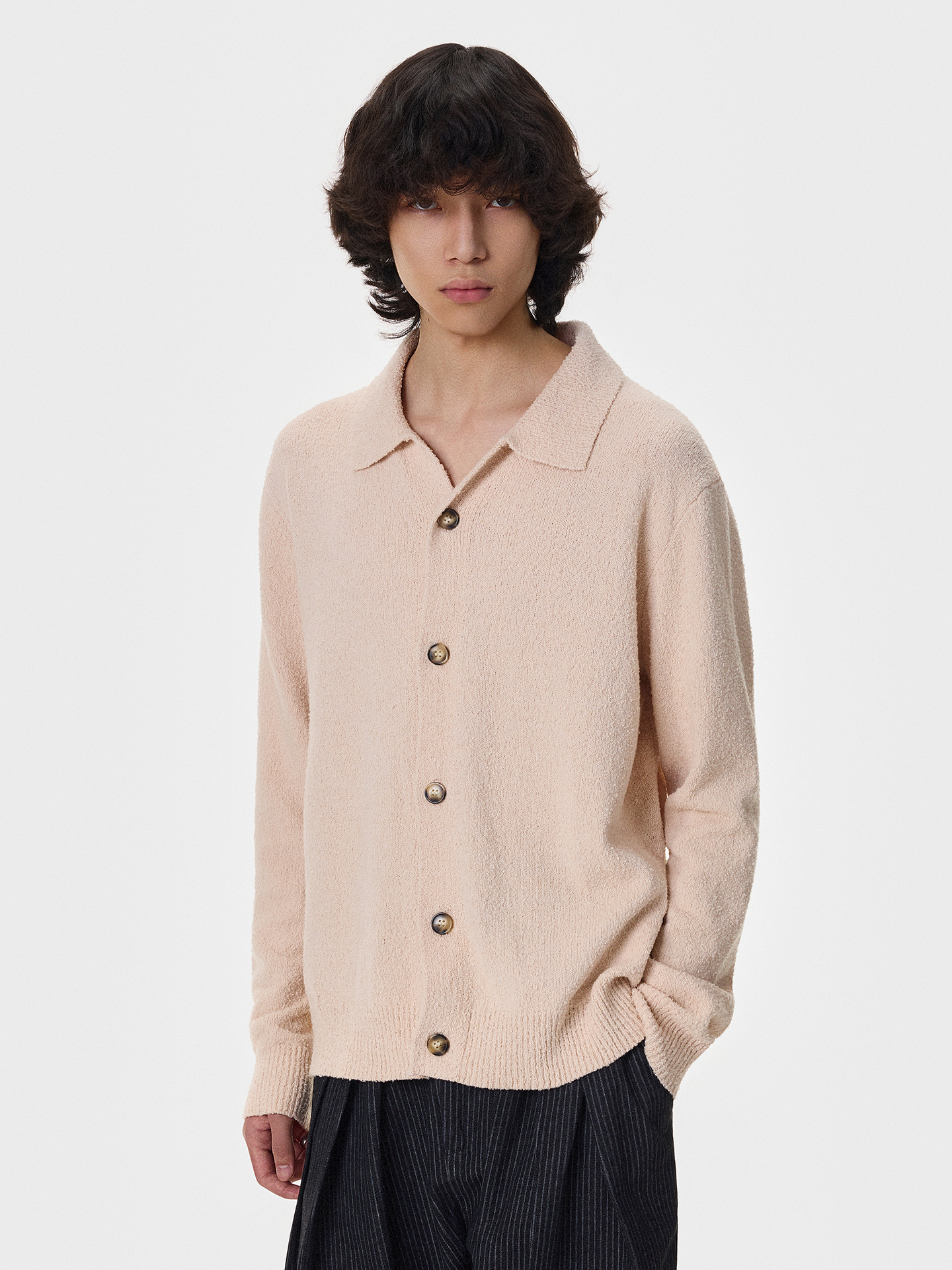 Fleece Polo-Collar Oversize Knit Cardigan WN21396