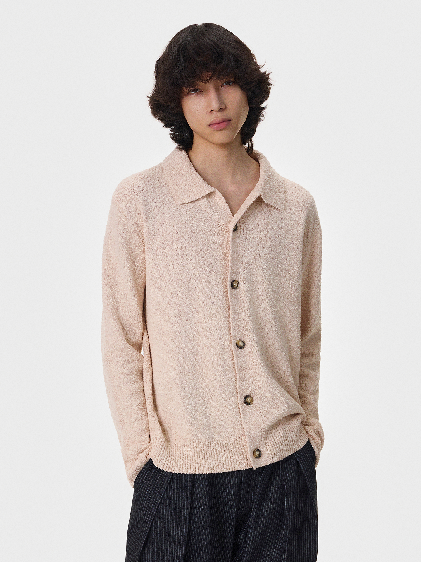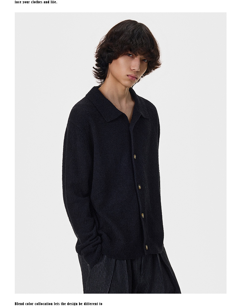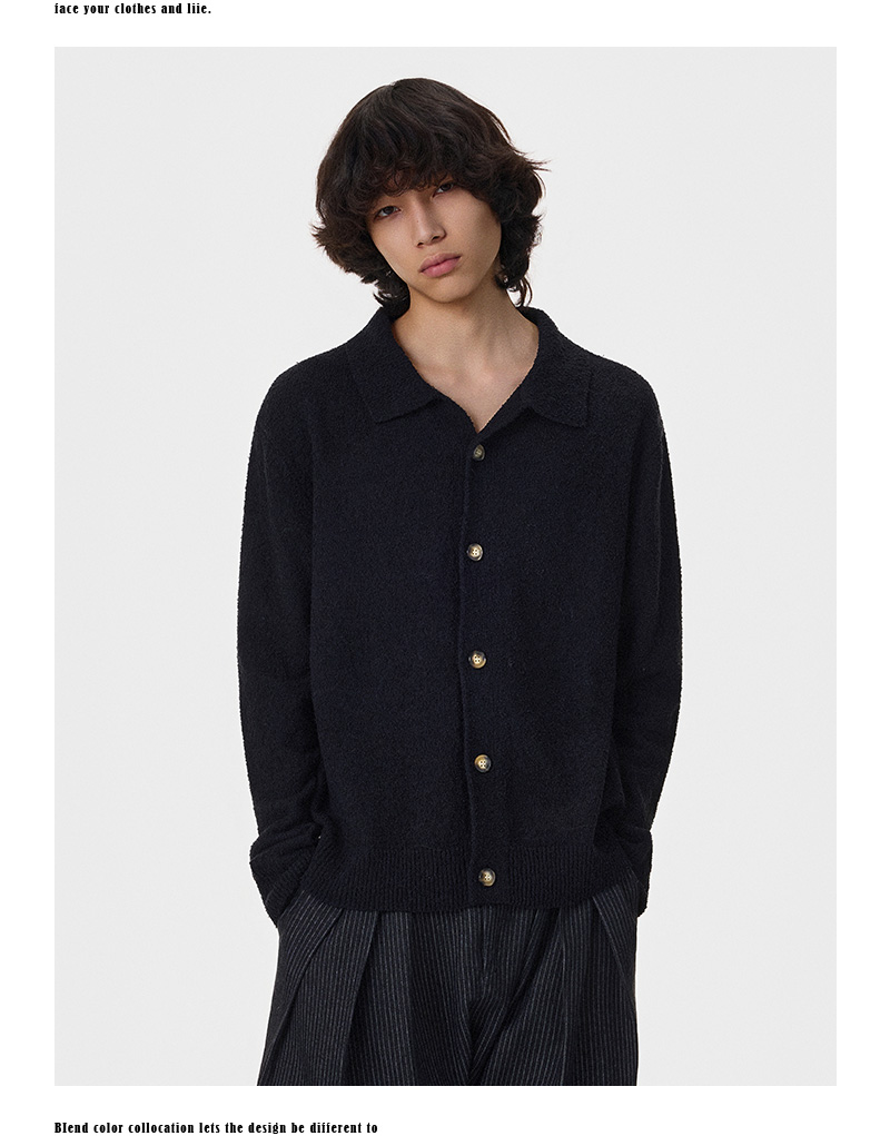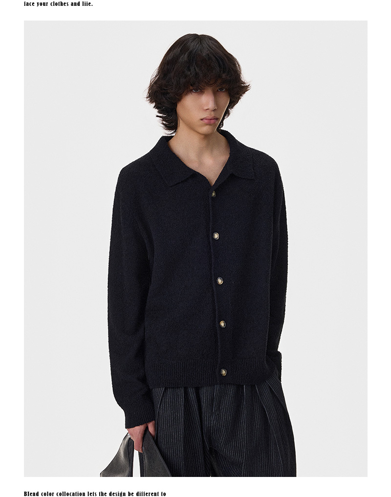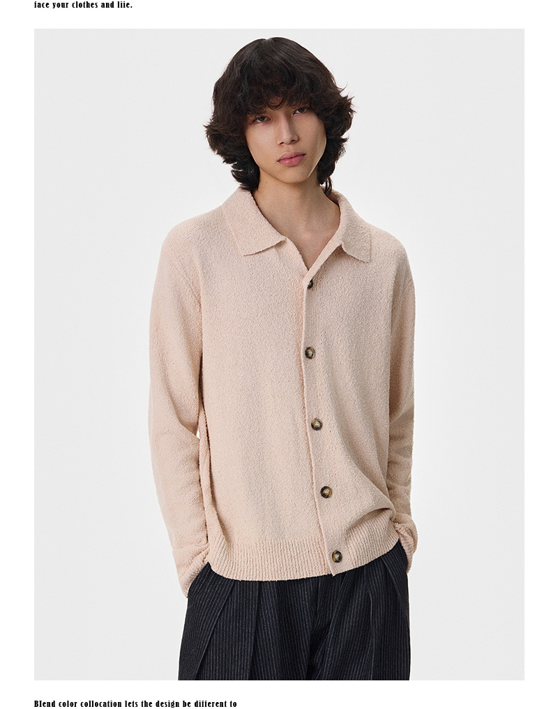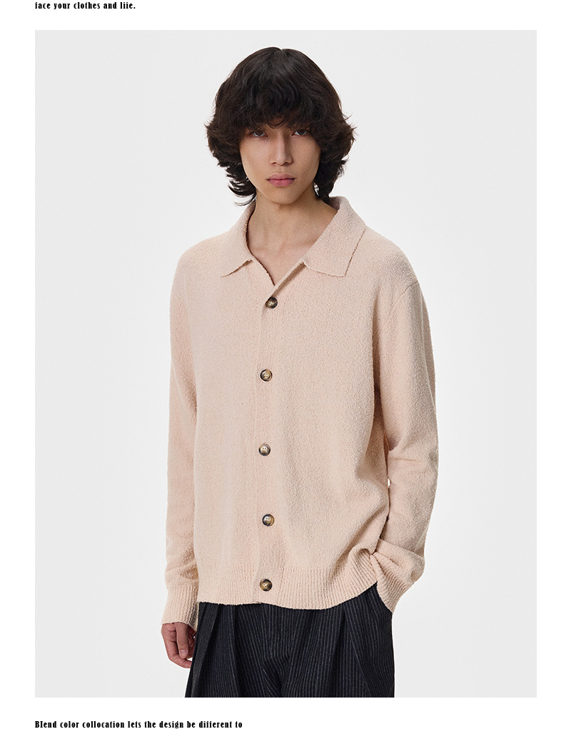 Fleece Polo-Collar Oversize Knit Cardigan WN21396