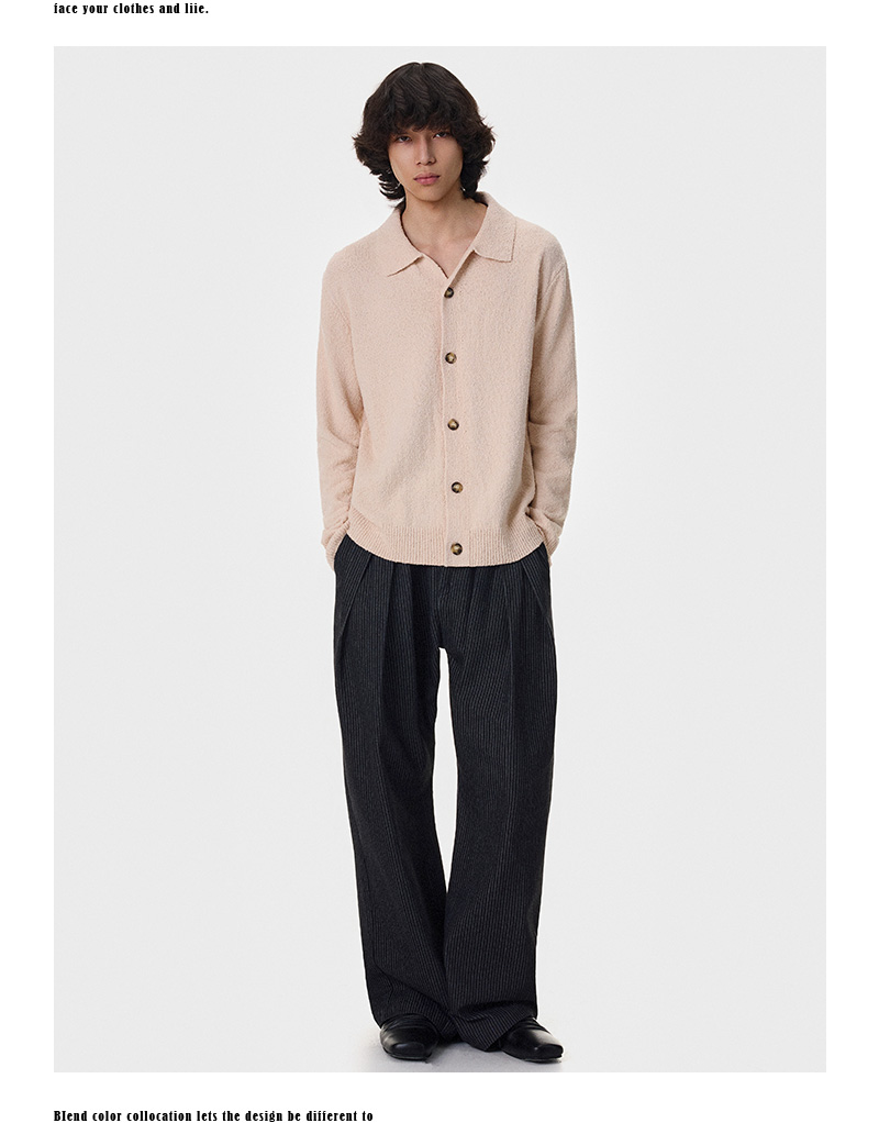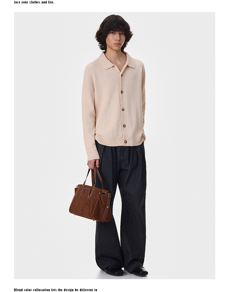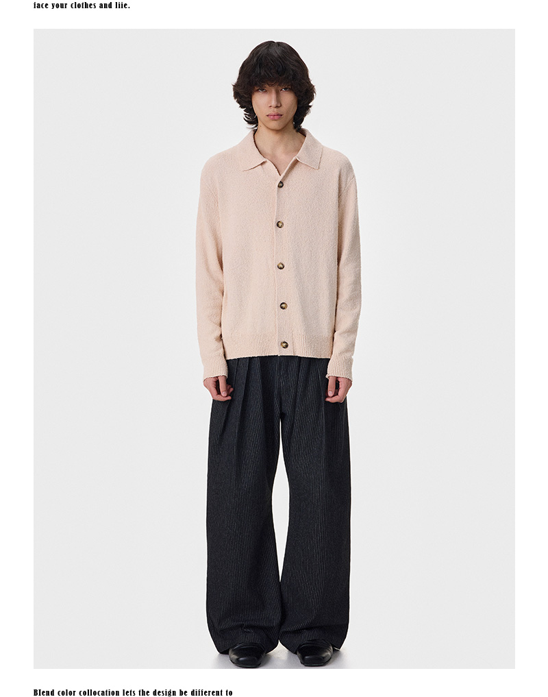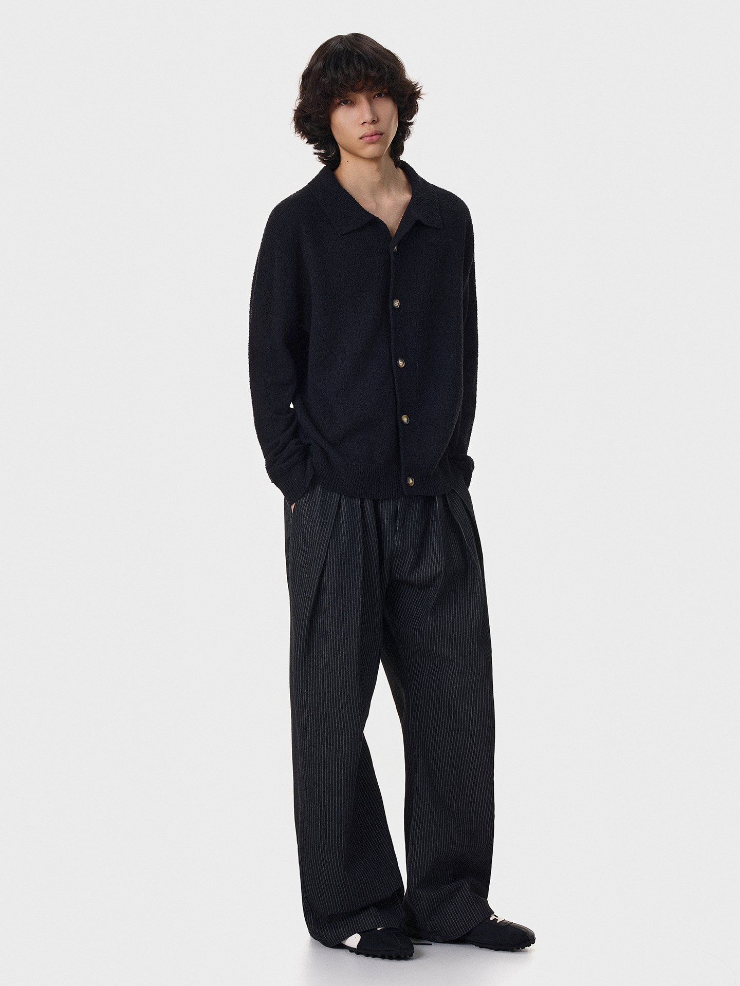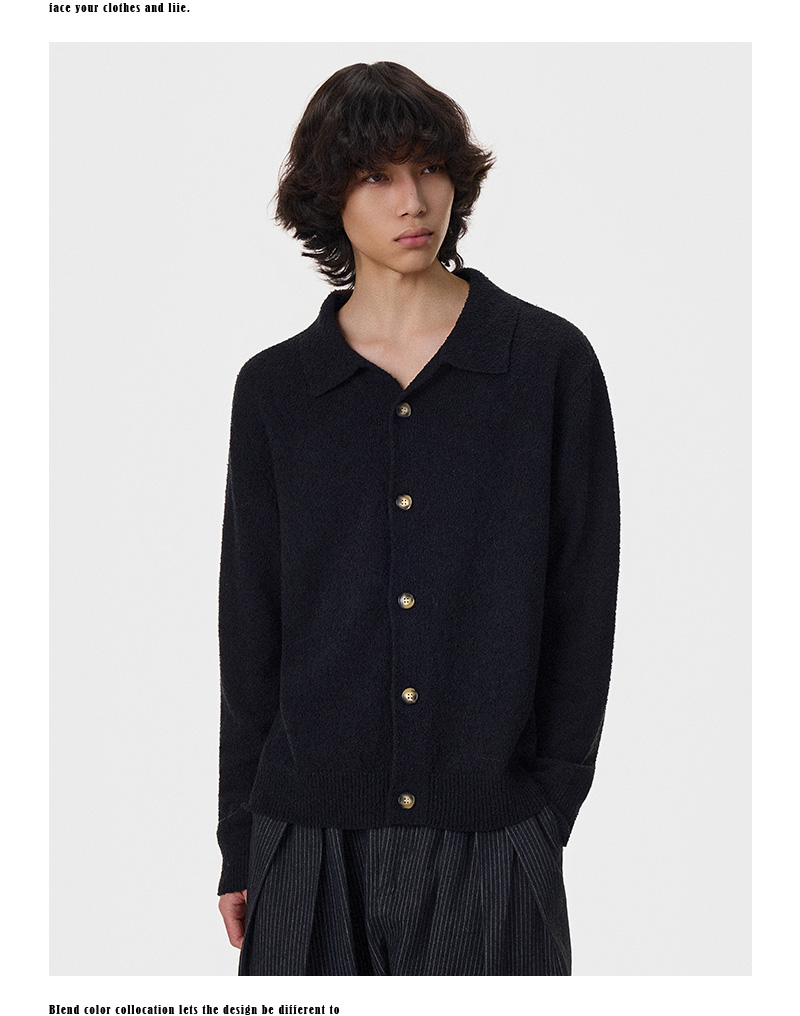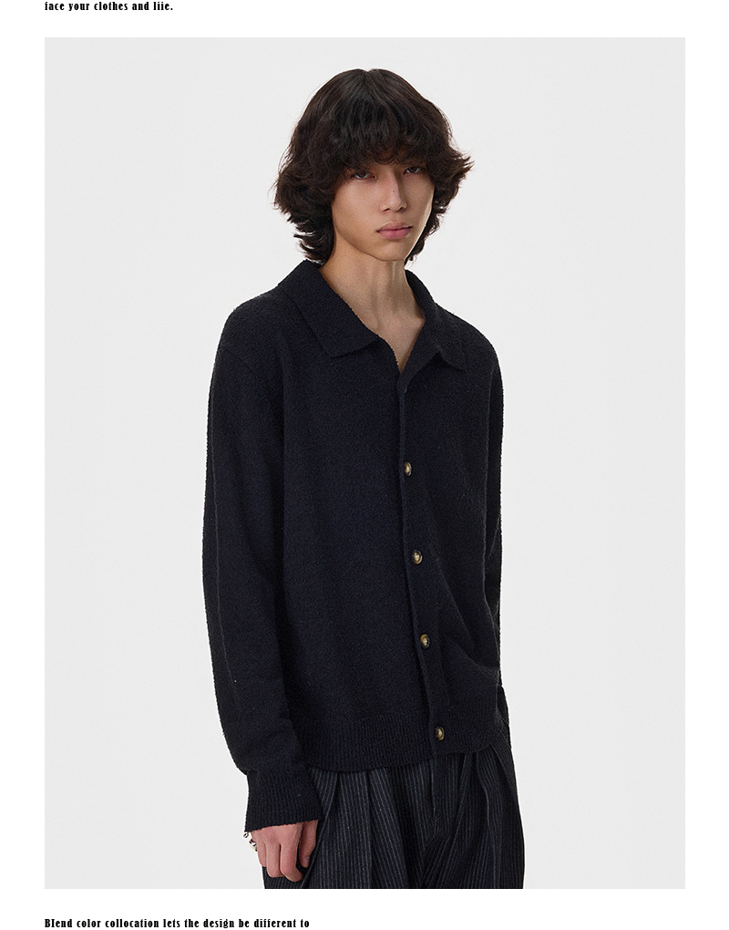 Fleece Polo-Collar Oversize Knit Cardigan WN21396