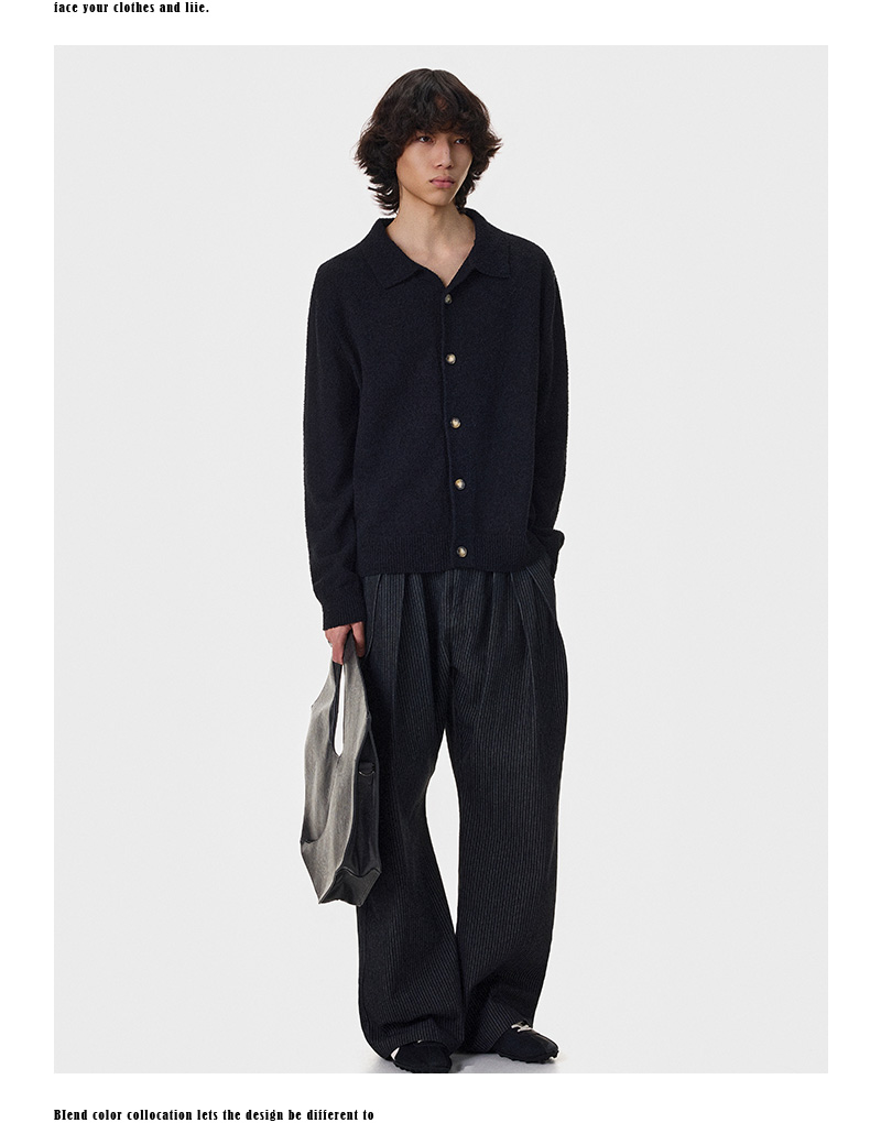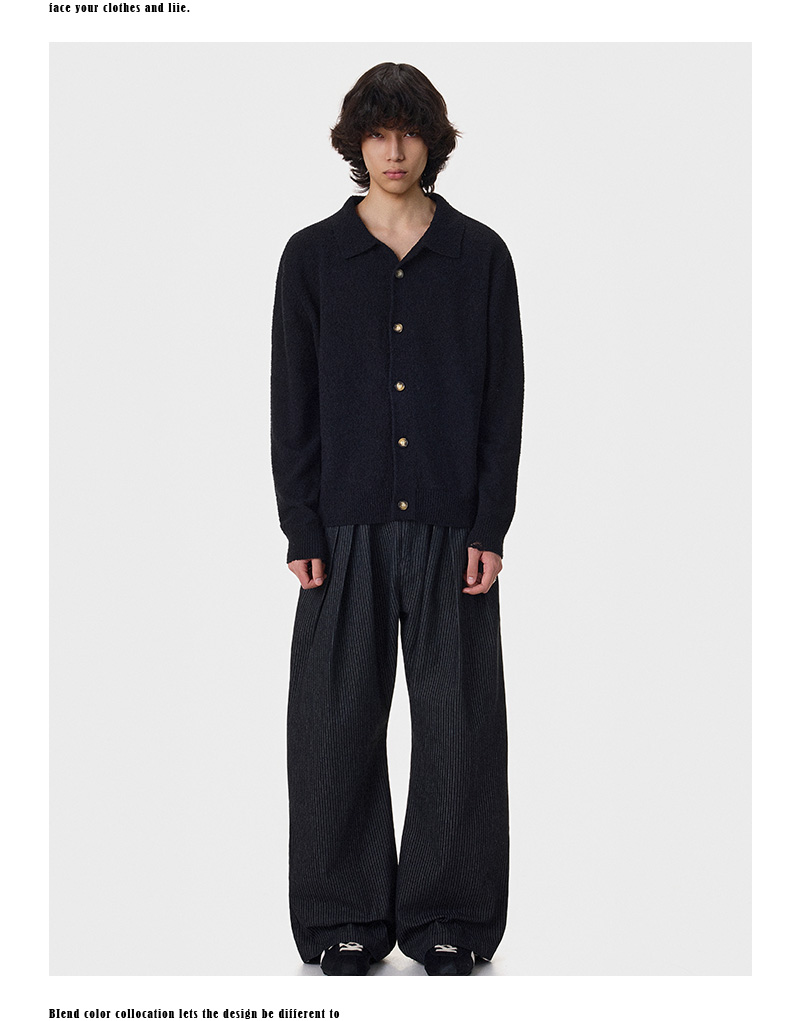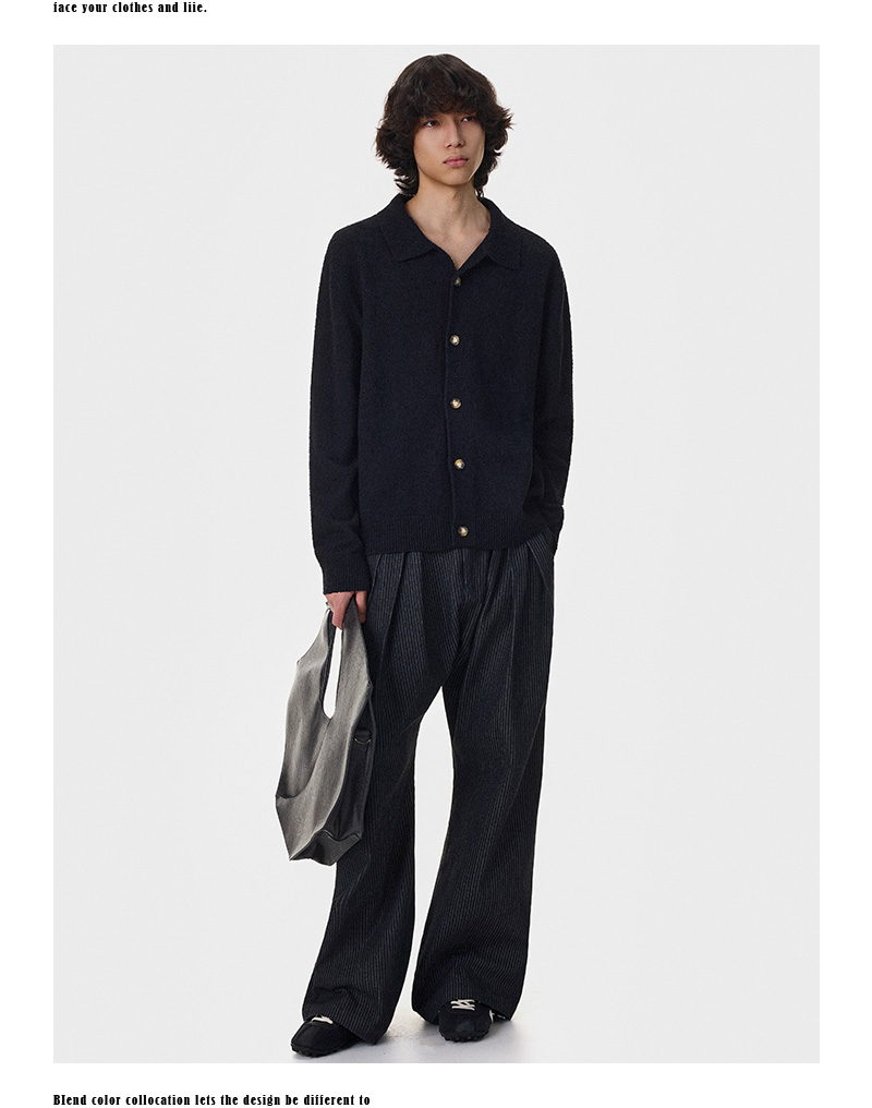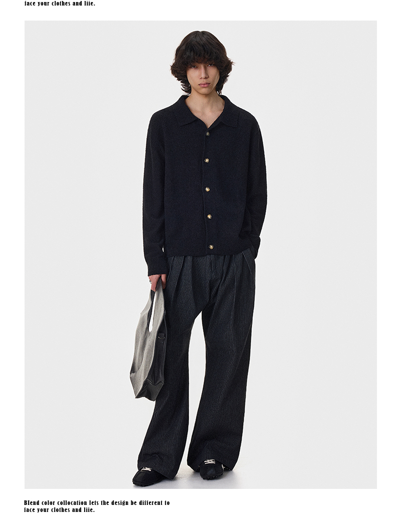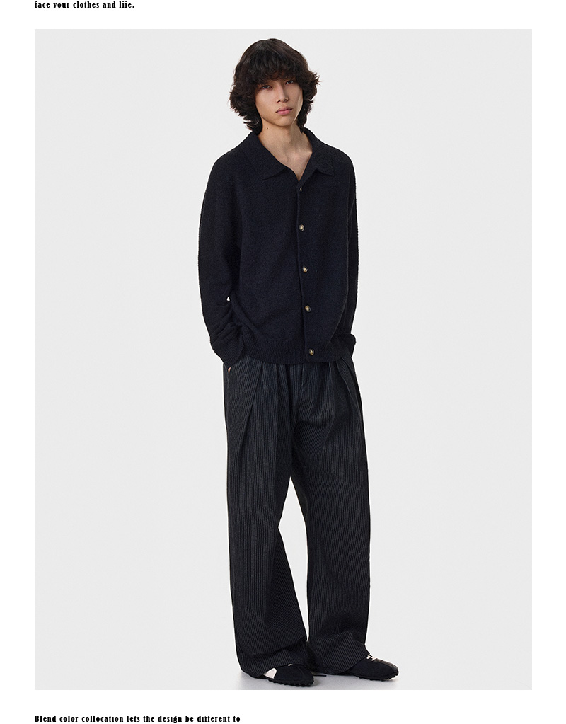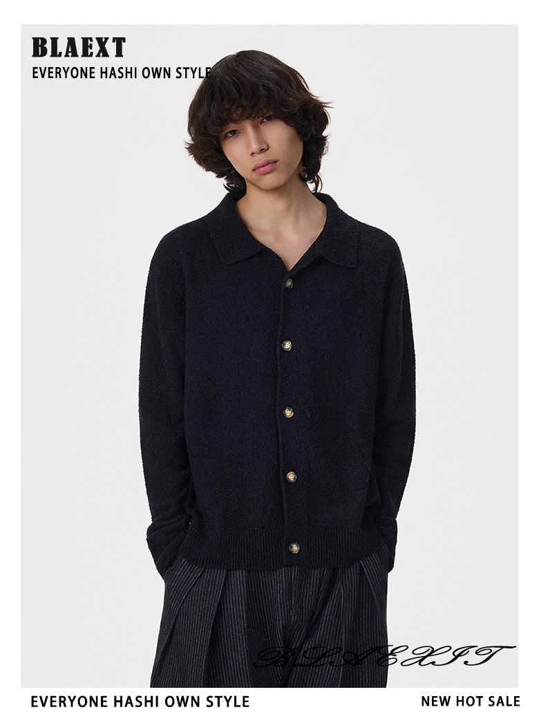 Fleece Polo-Collar Oversize Knit Cardigan WN21396