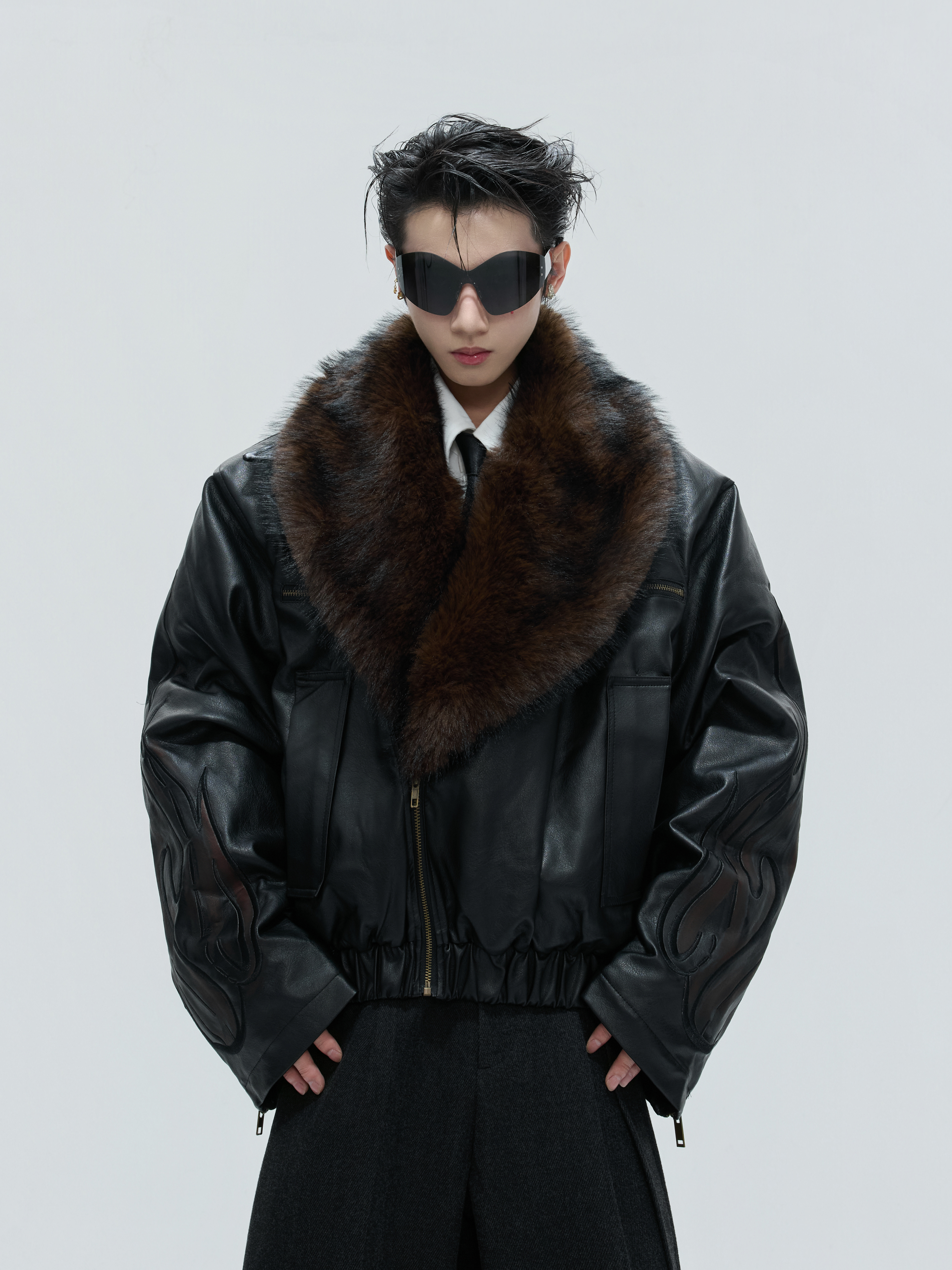 Detachable Fur Collar Embossed Thick Puffer Jacket WN21726