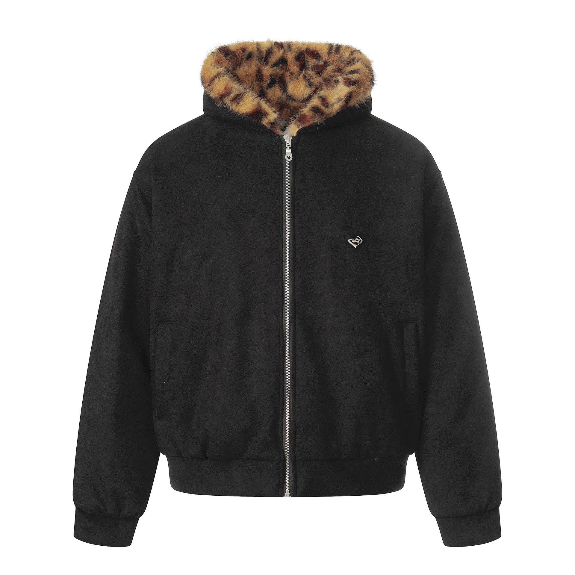 Leopard Fake Fur Hooded Zipper Jacket WN21867