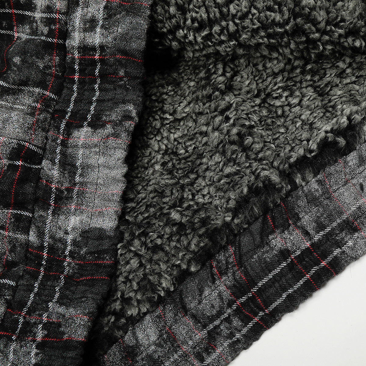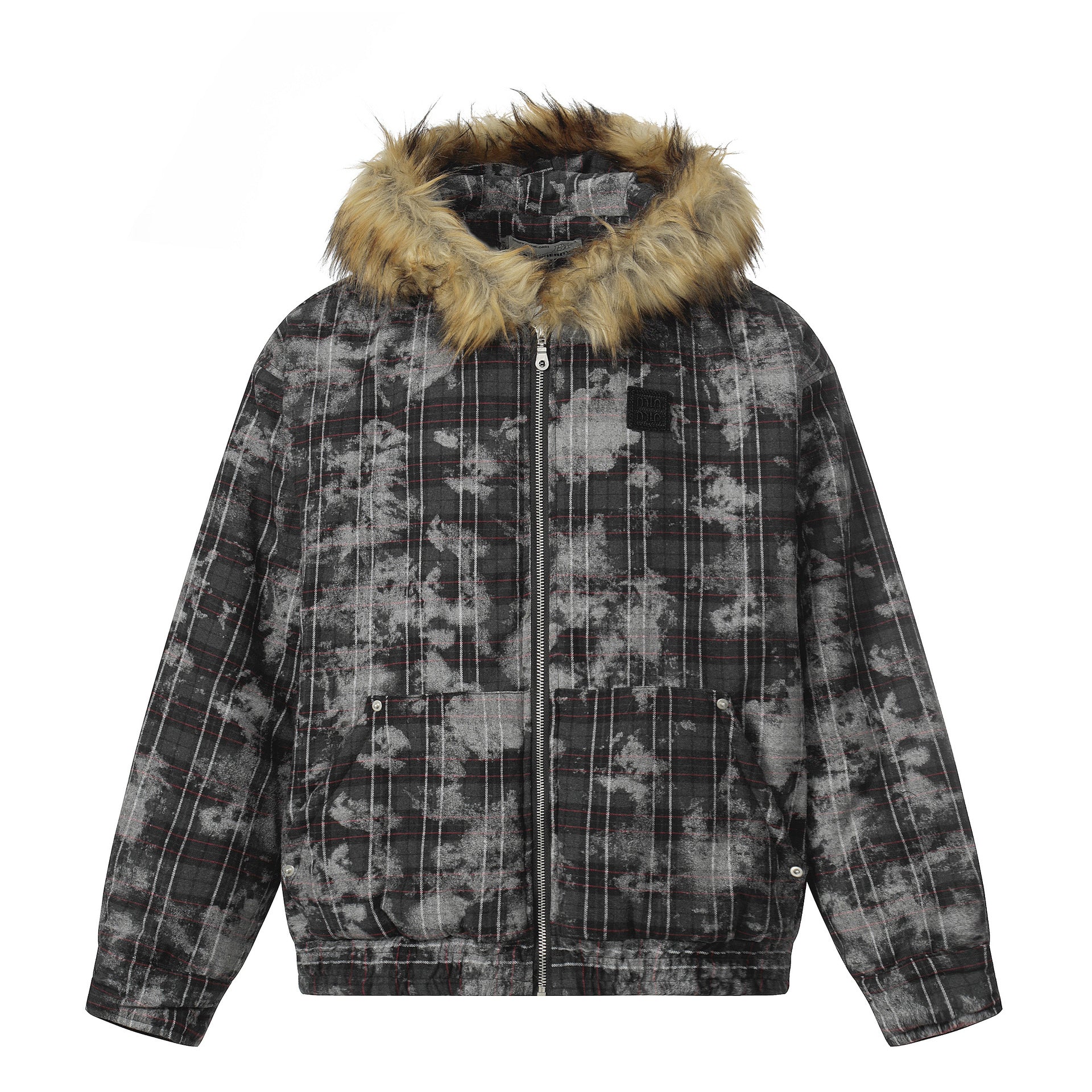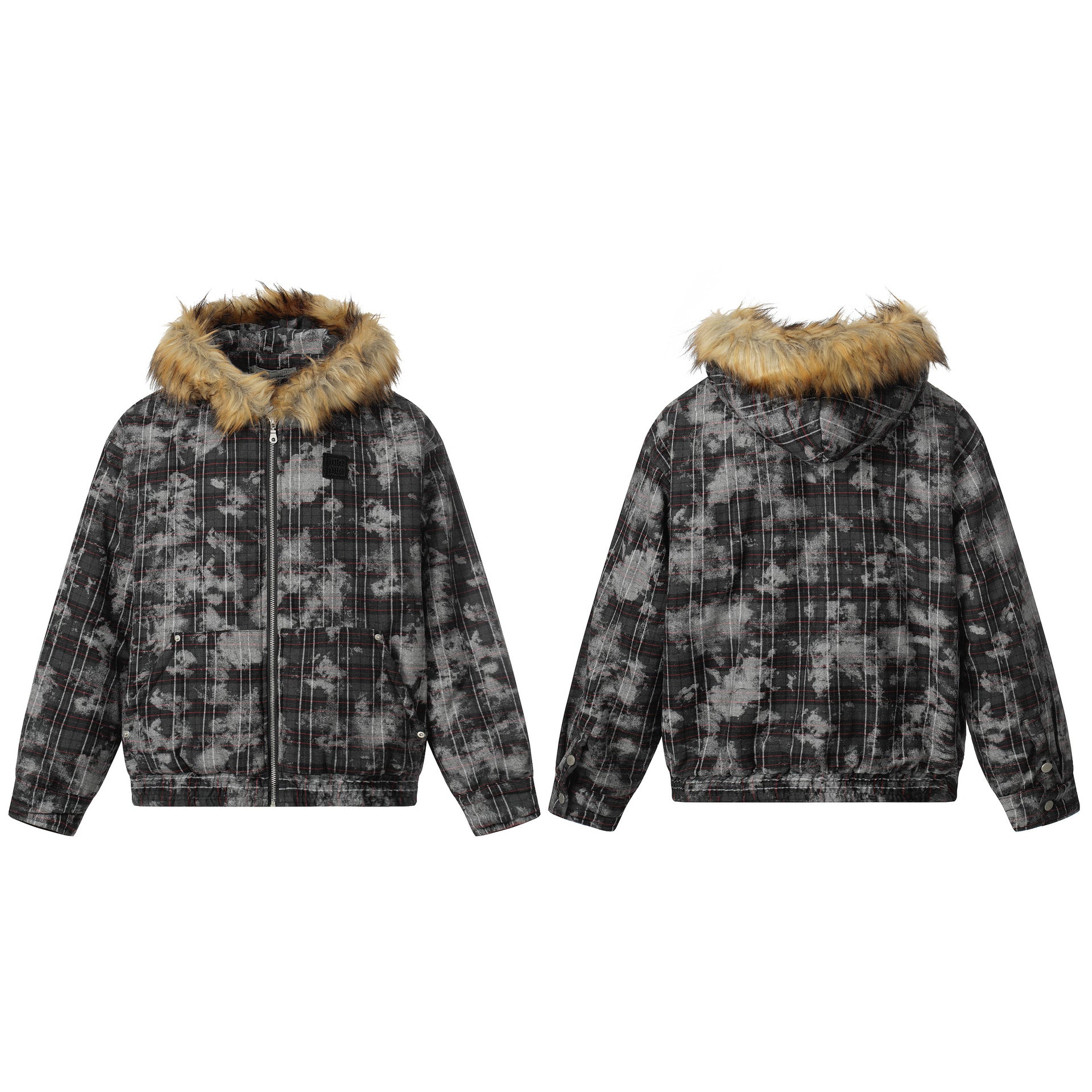Fake Fur Collar Lamb Fleece Plaid Puffer Jacket WN21884