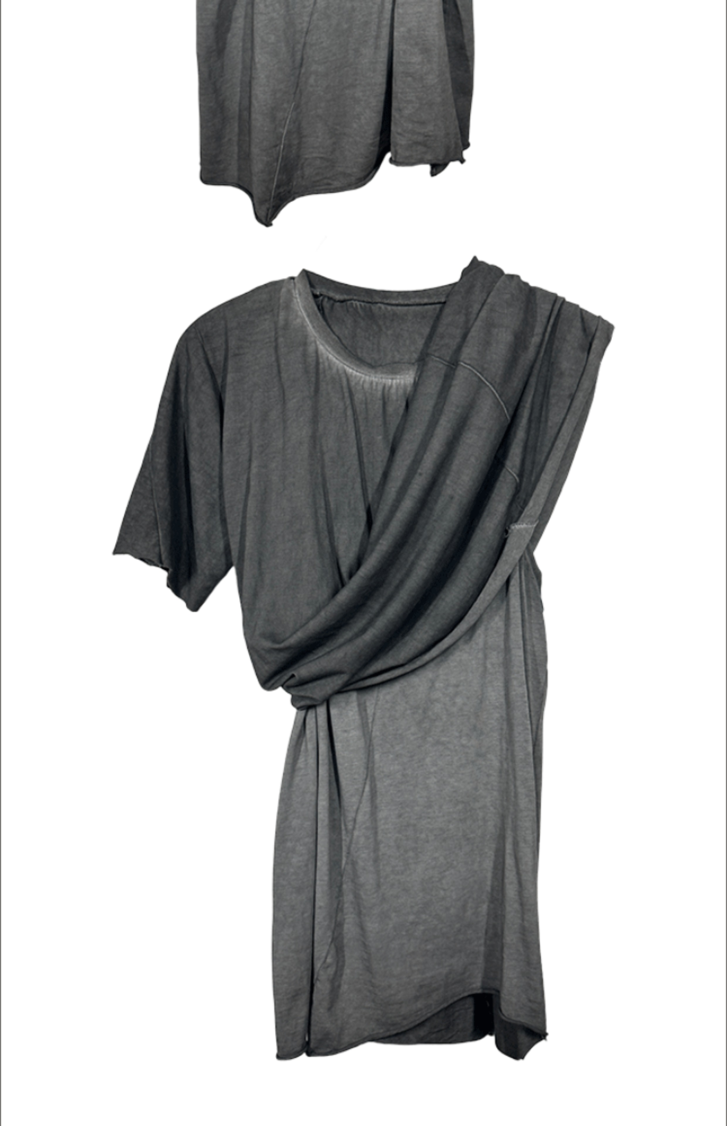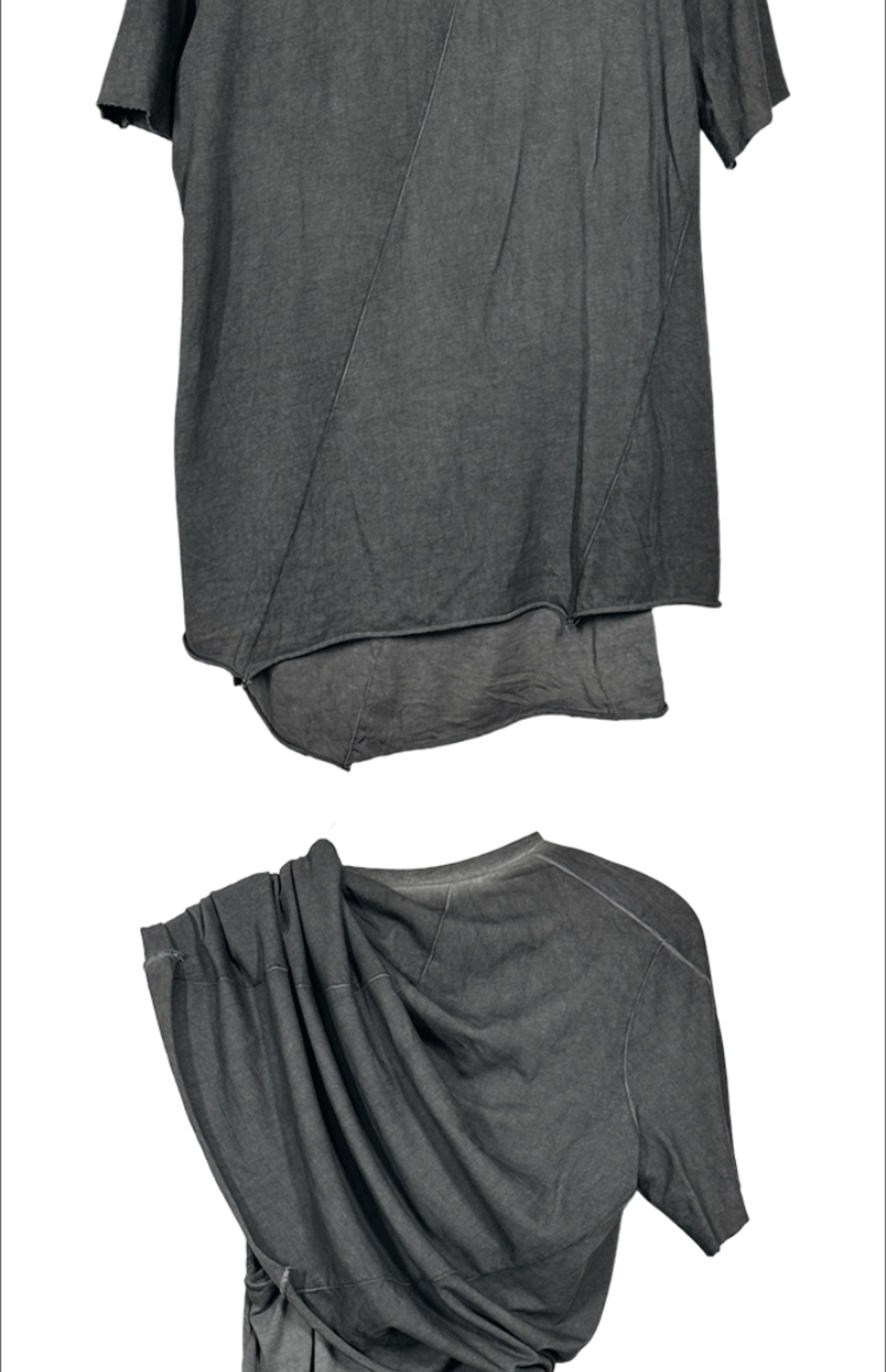 Asymmetric Layered Washed Short Sleeve T-Shirt WN21983