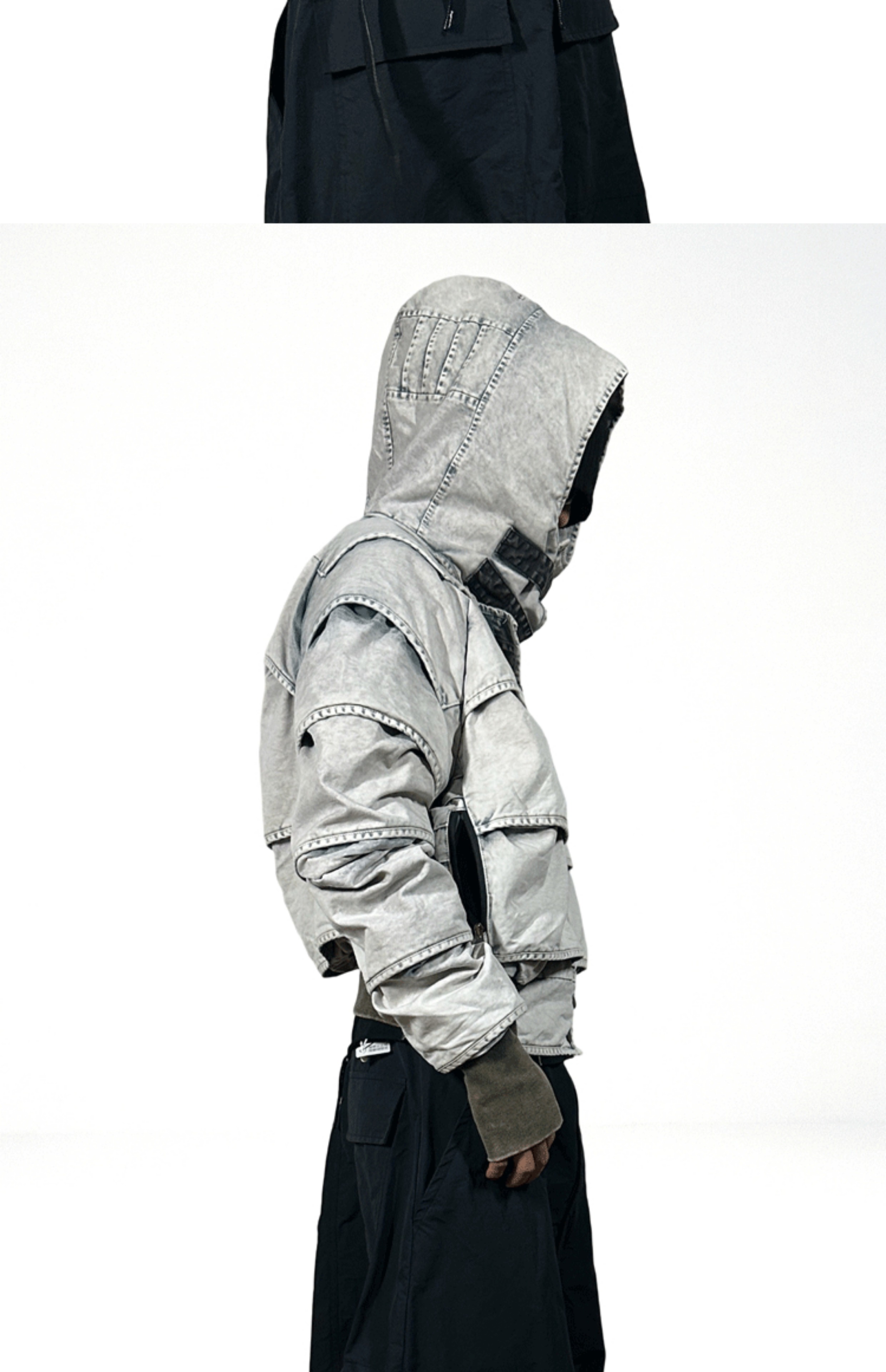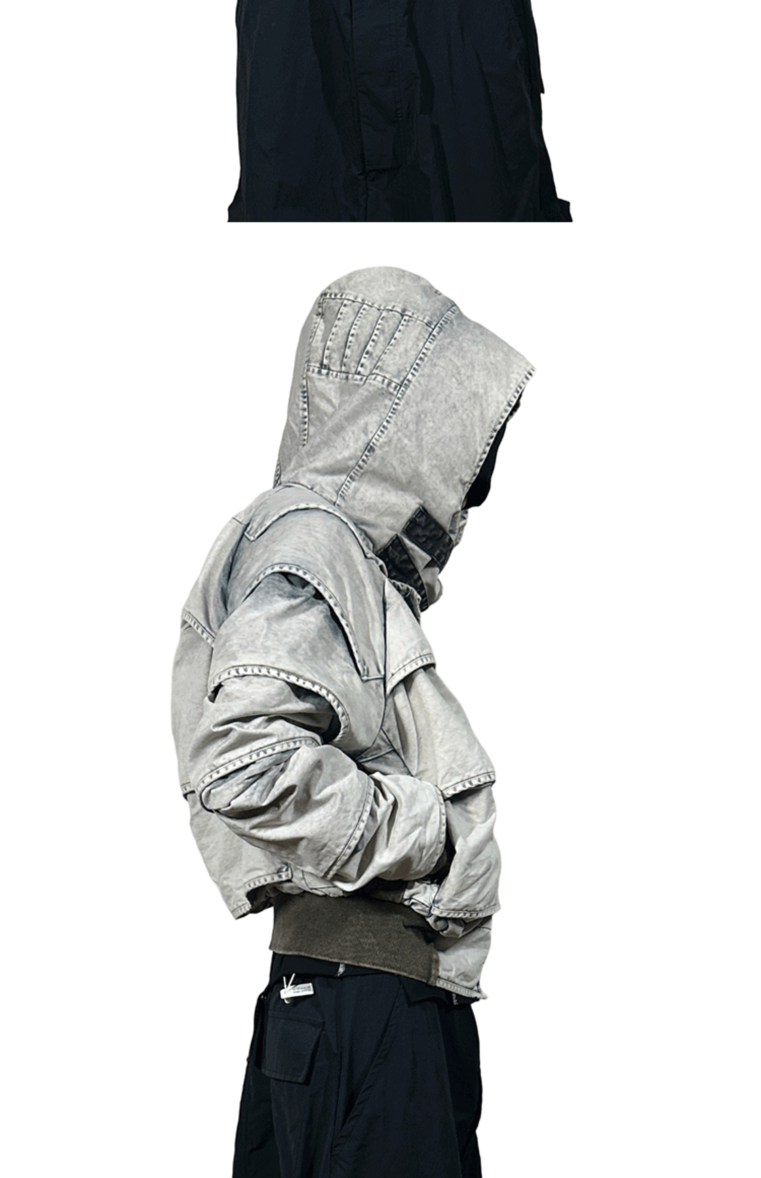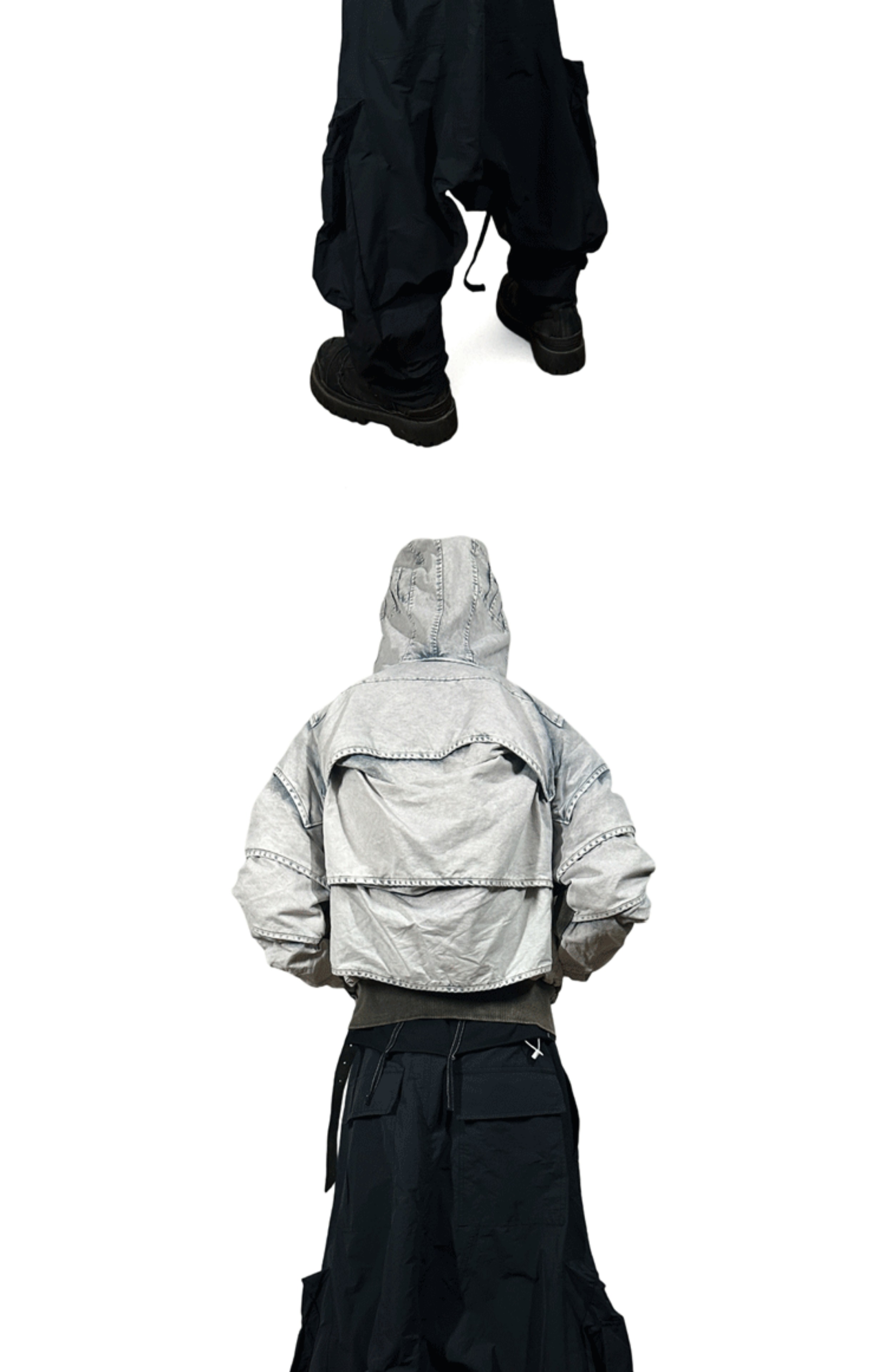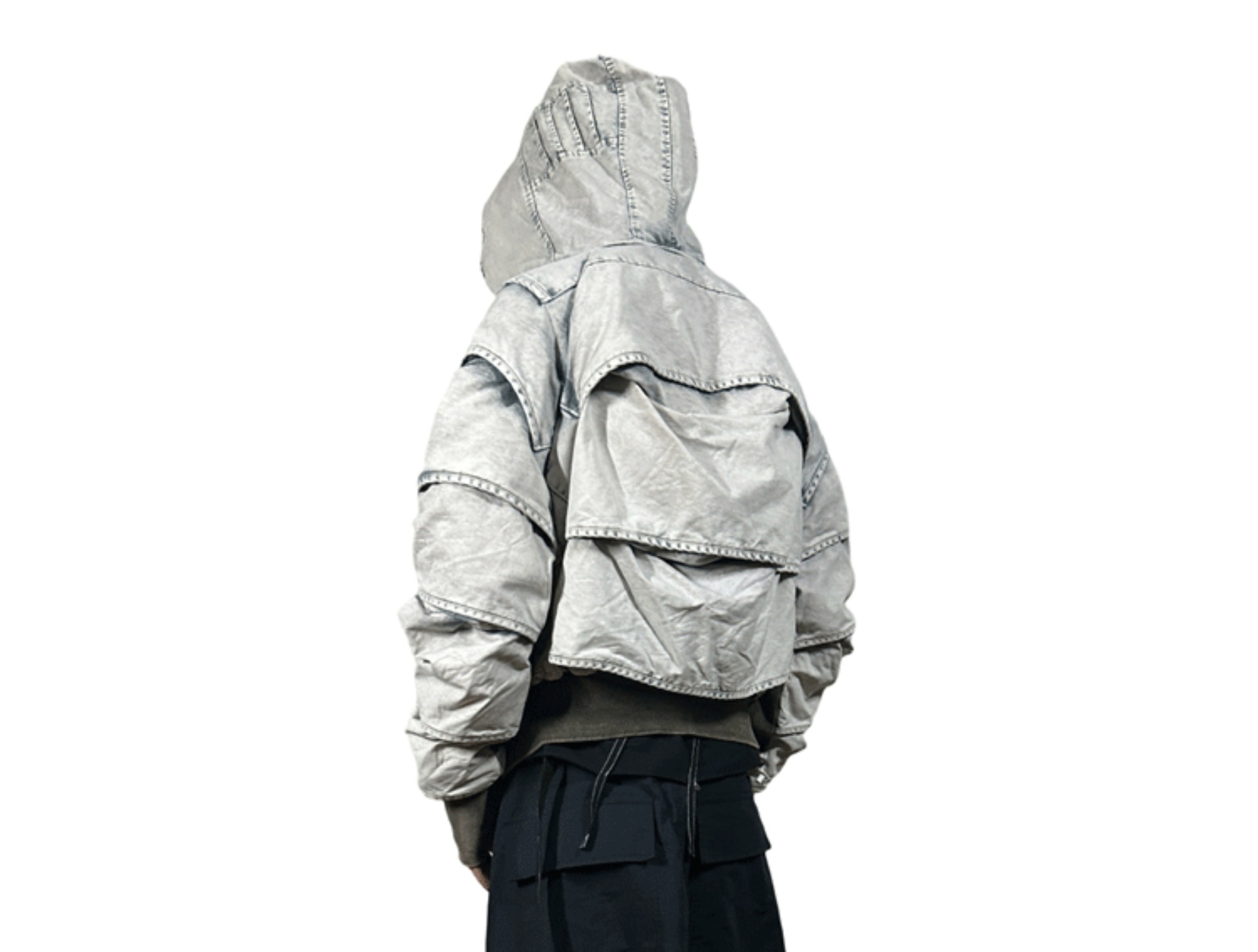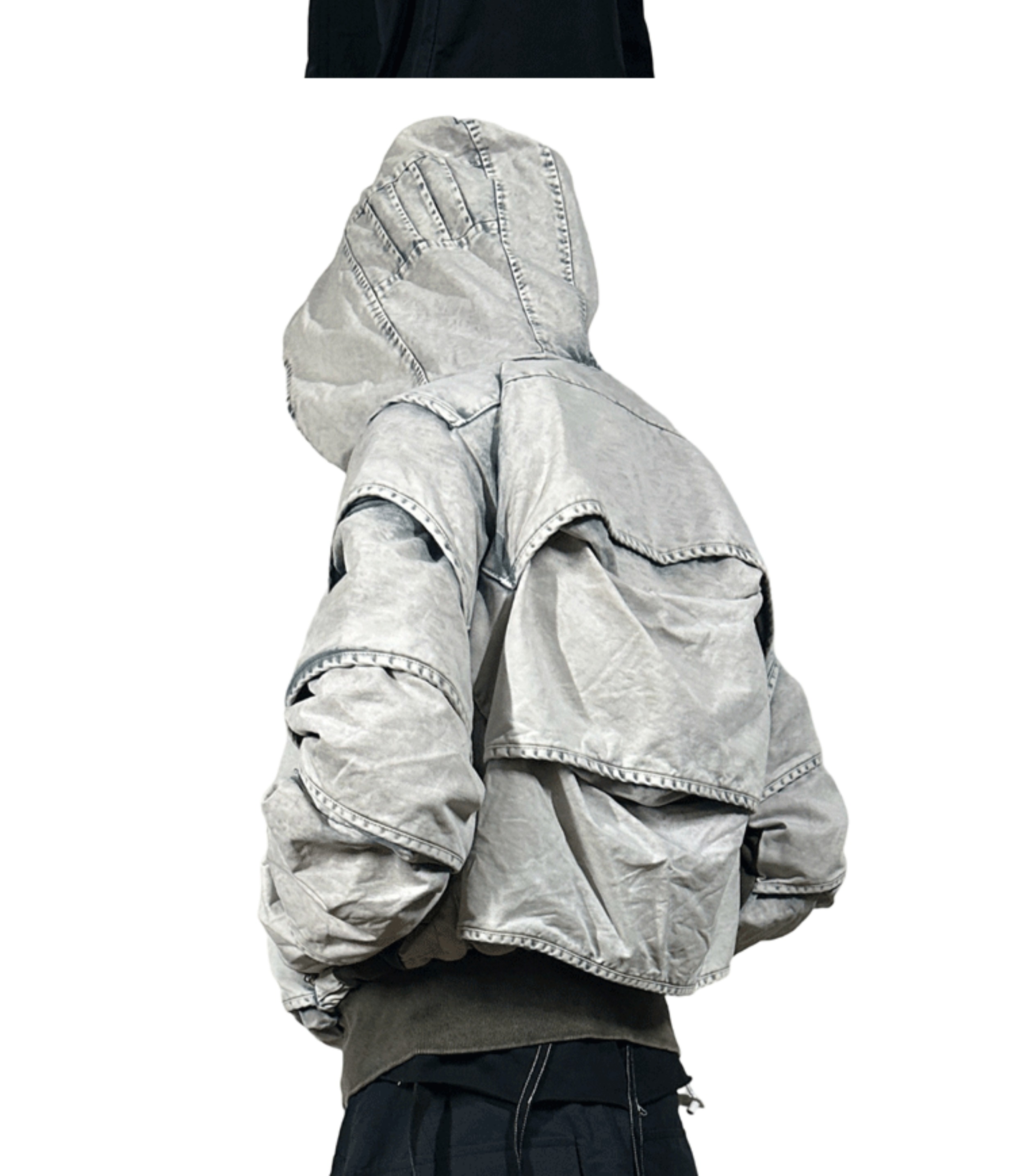 Faded Washed Pleats Structured Hooded Short Jacket WN21984