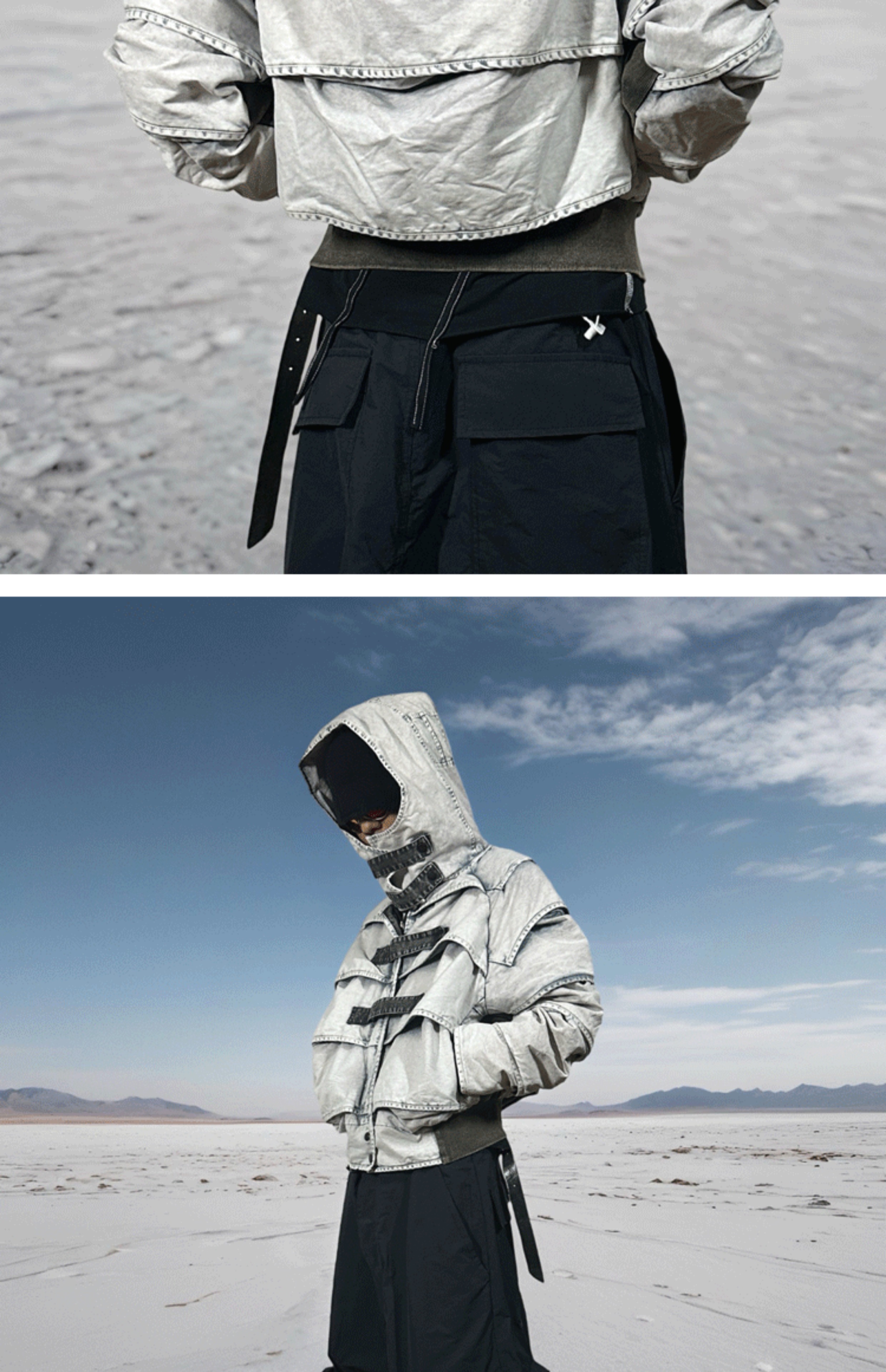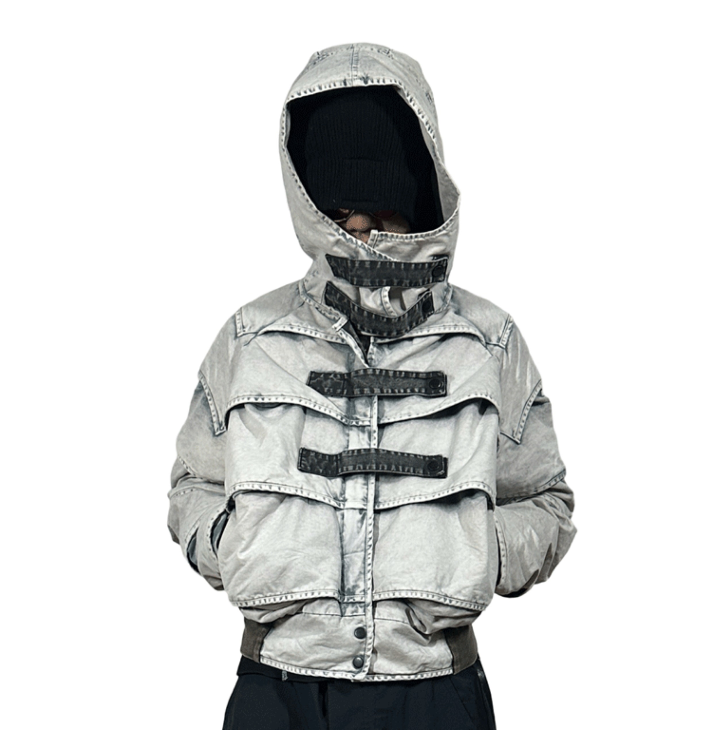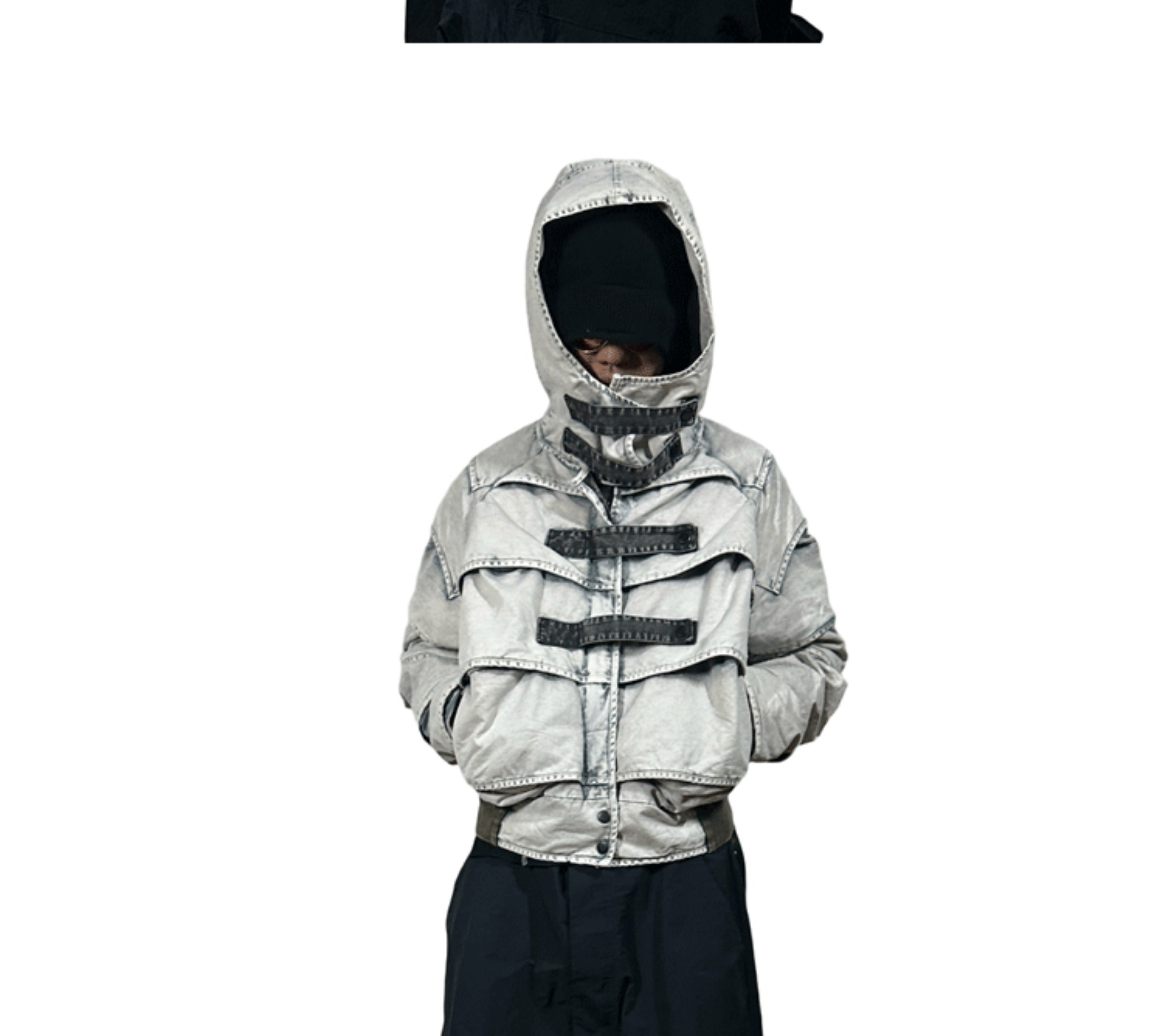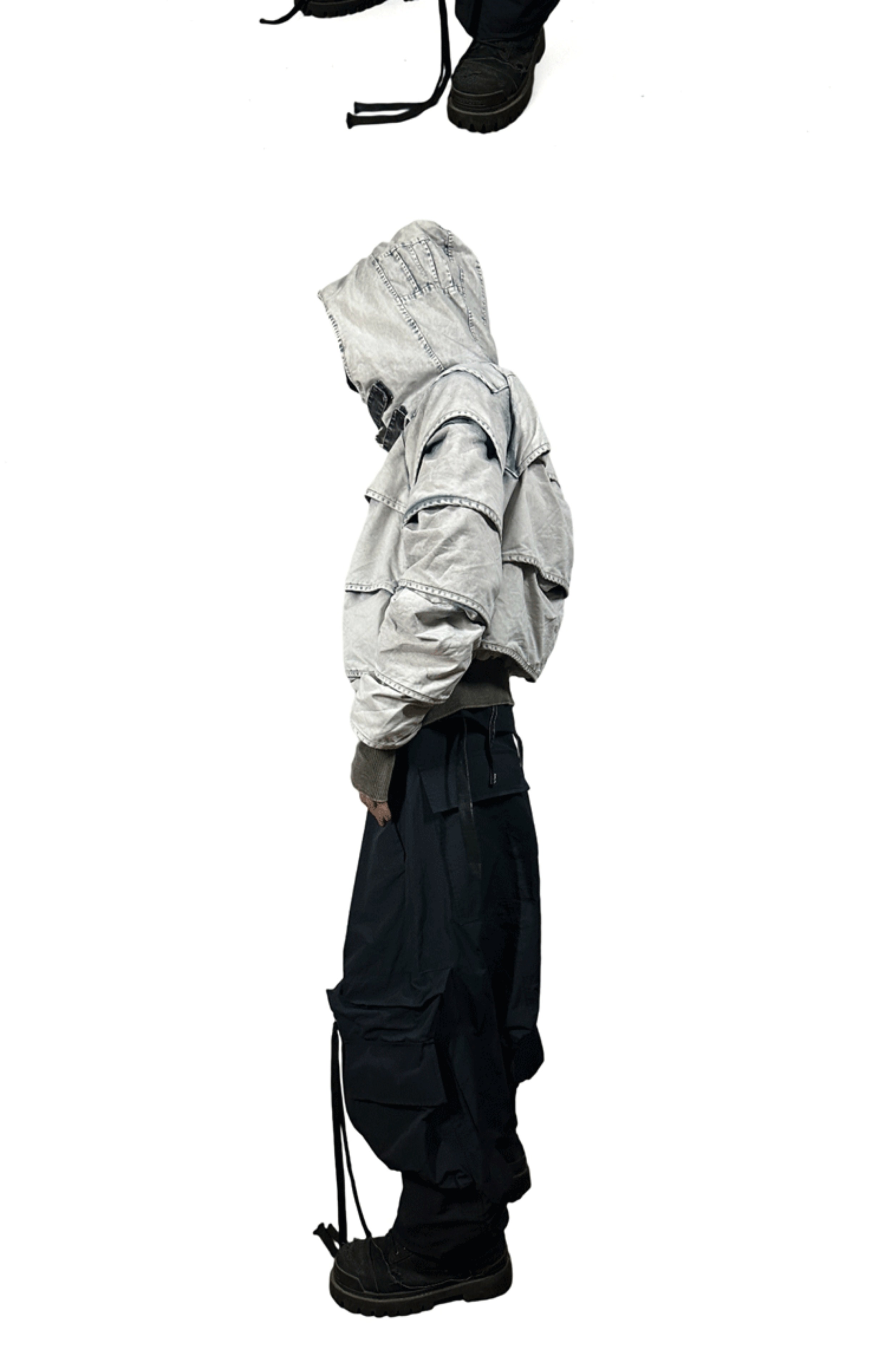 Faded Washed Pleats Structured Hooded Short Jacket WN21984