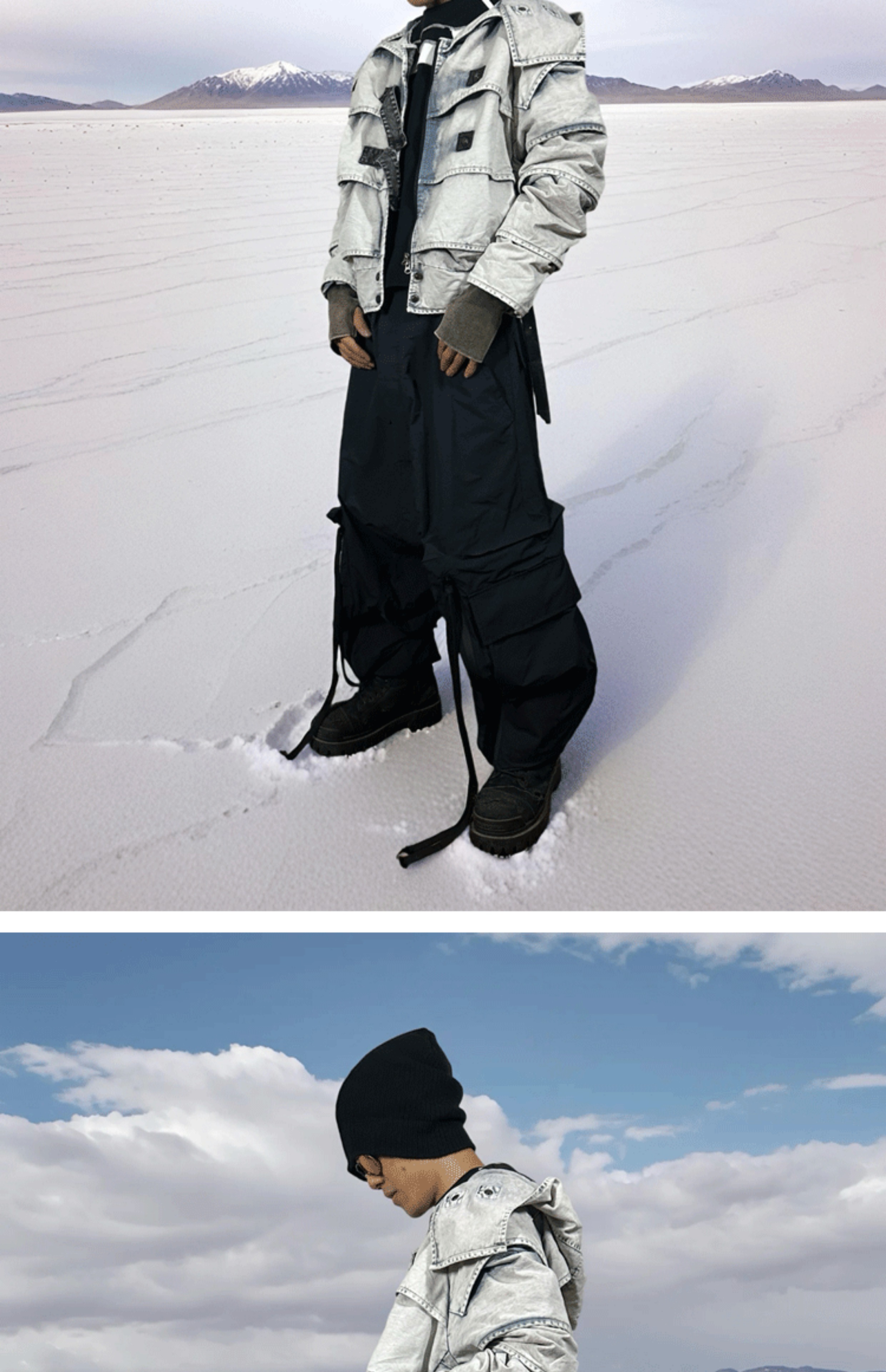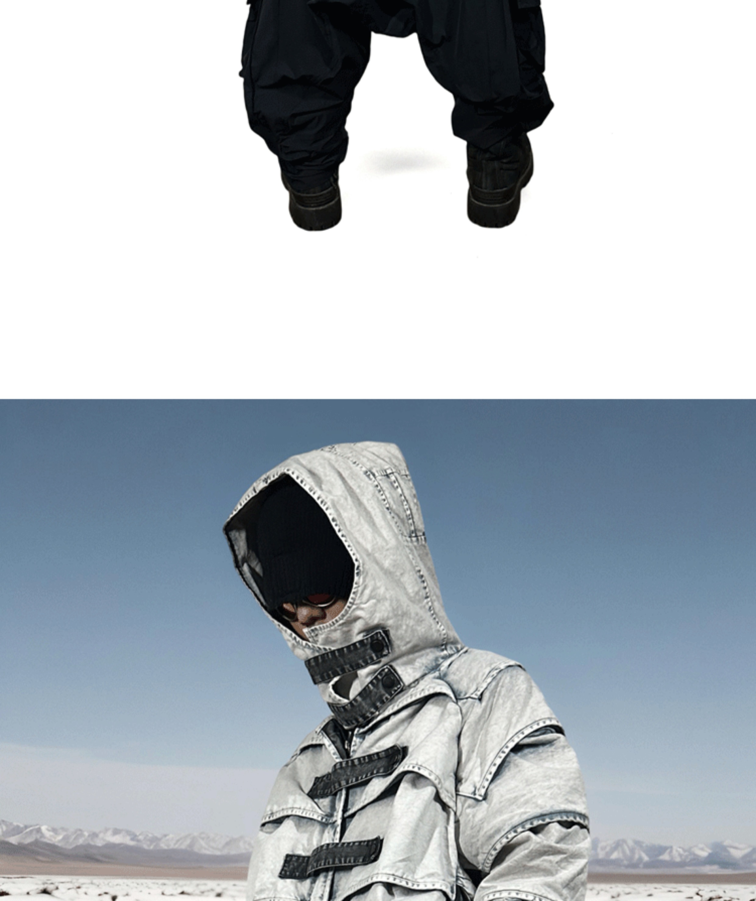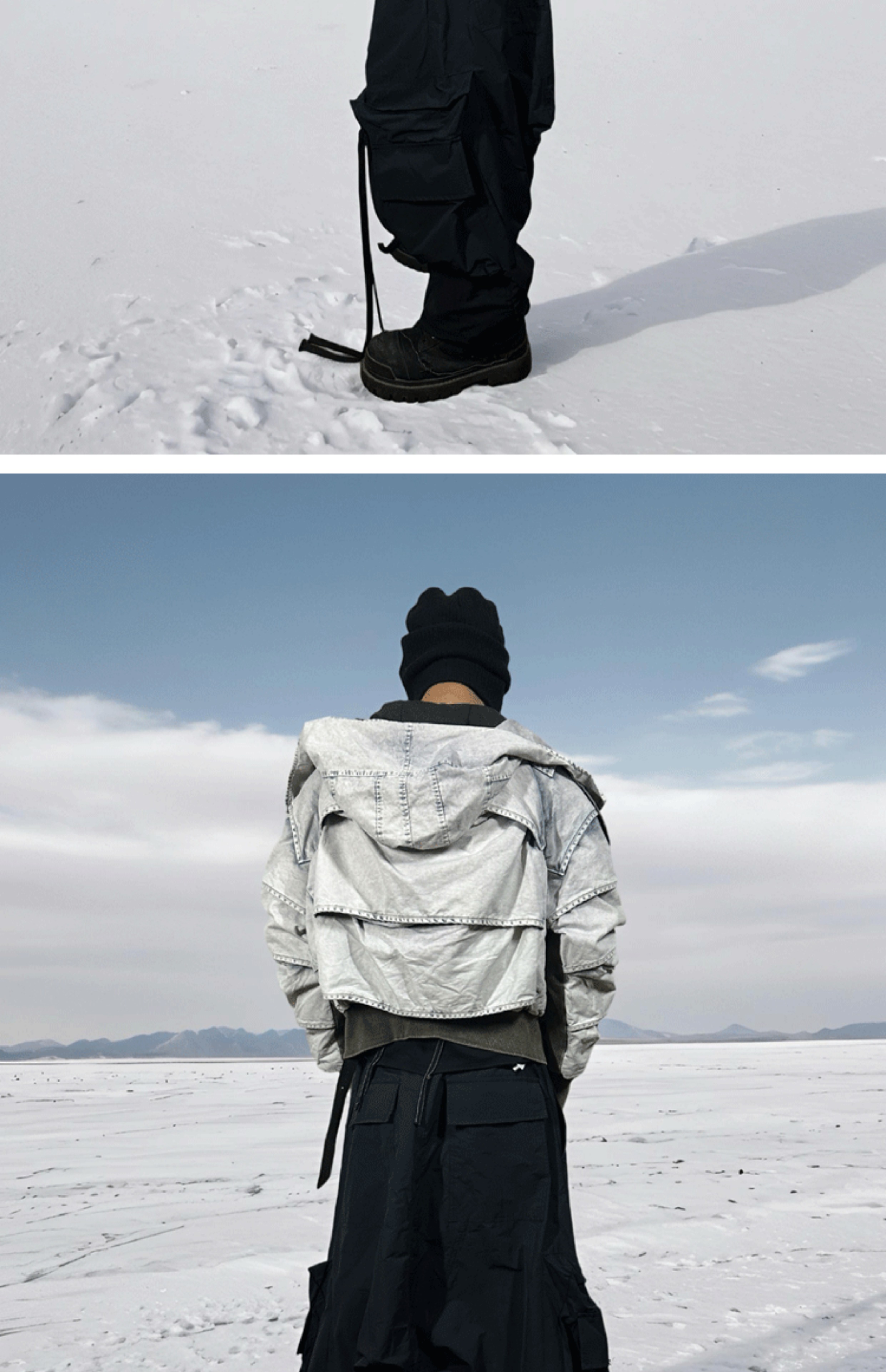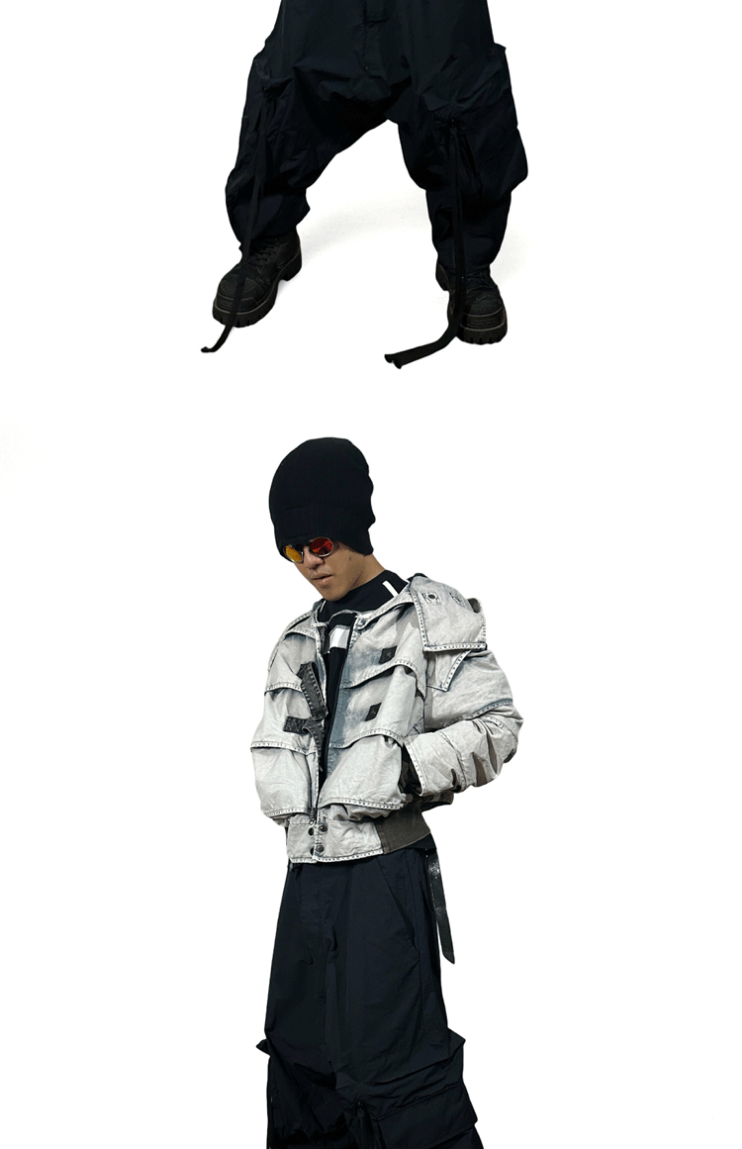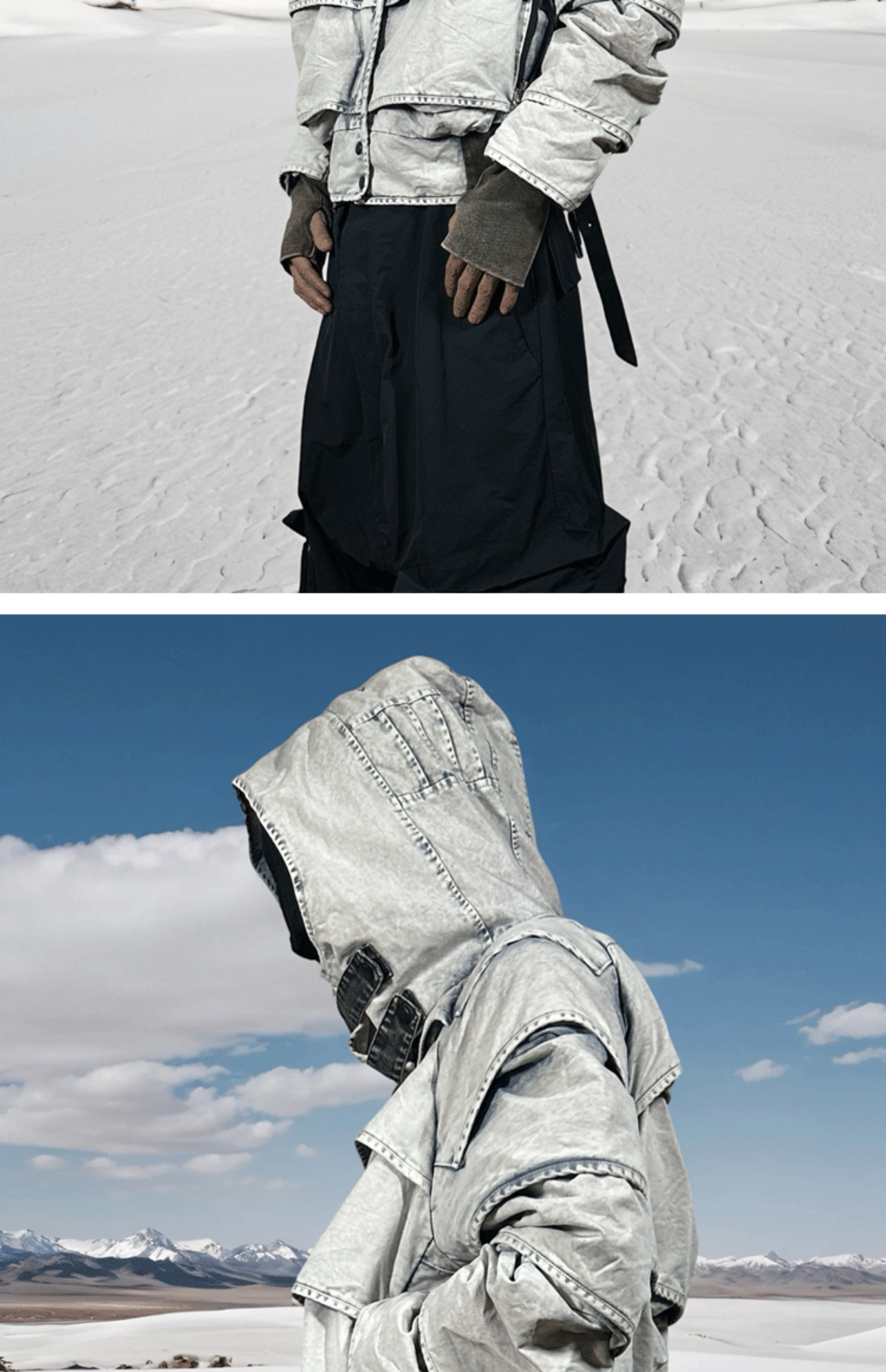 Faded Washed Pleats Structured Hooded Short Jacket WN21984