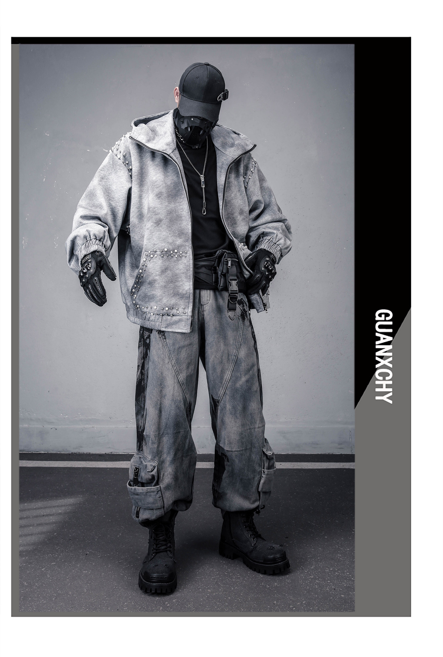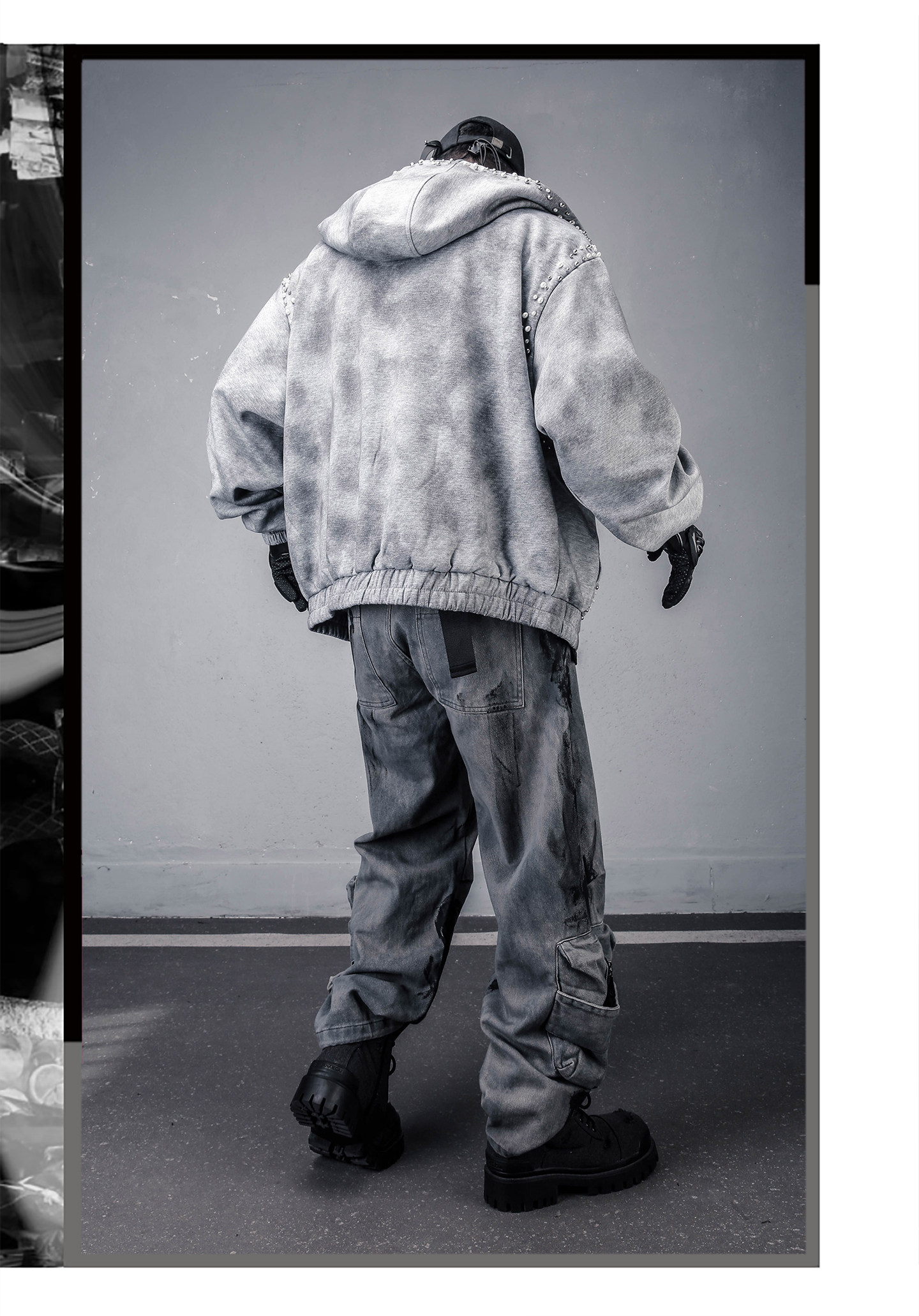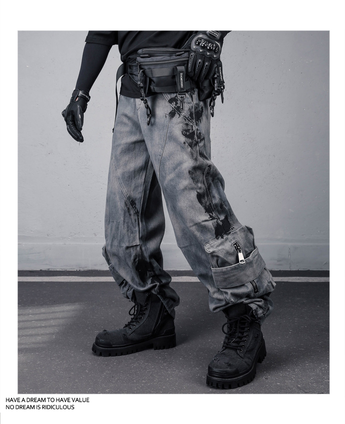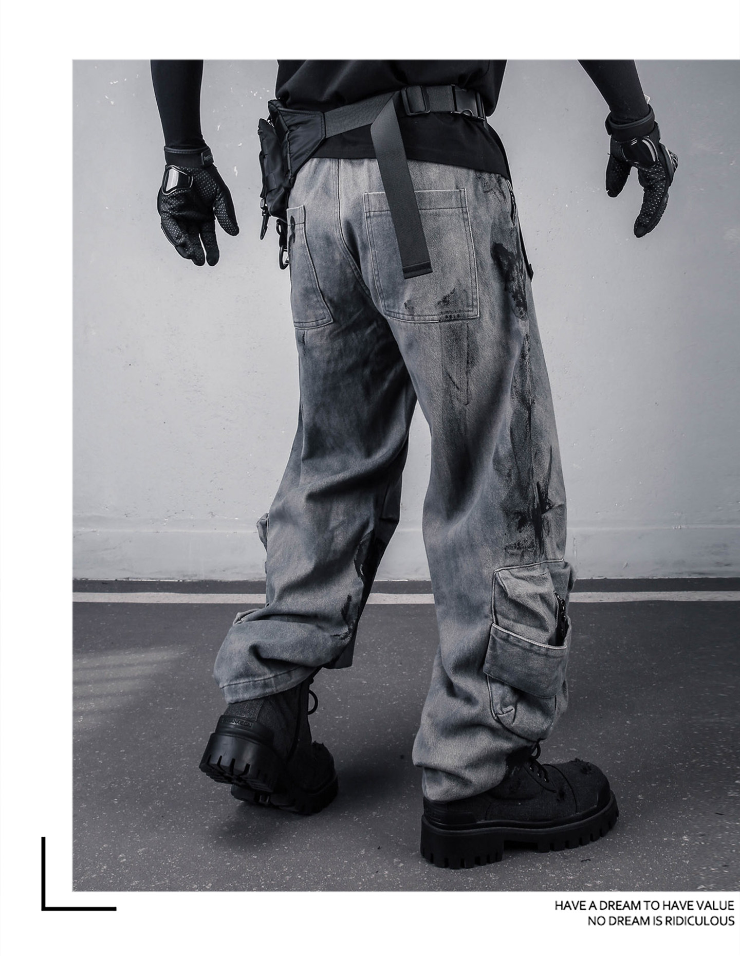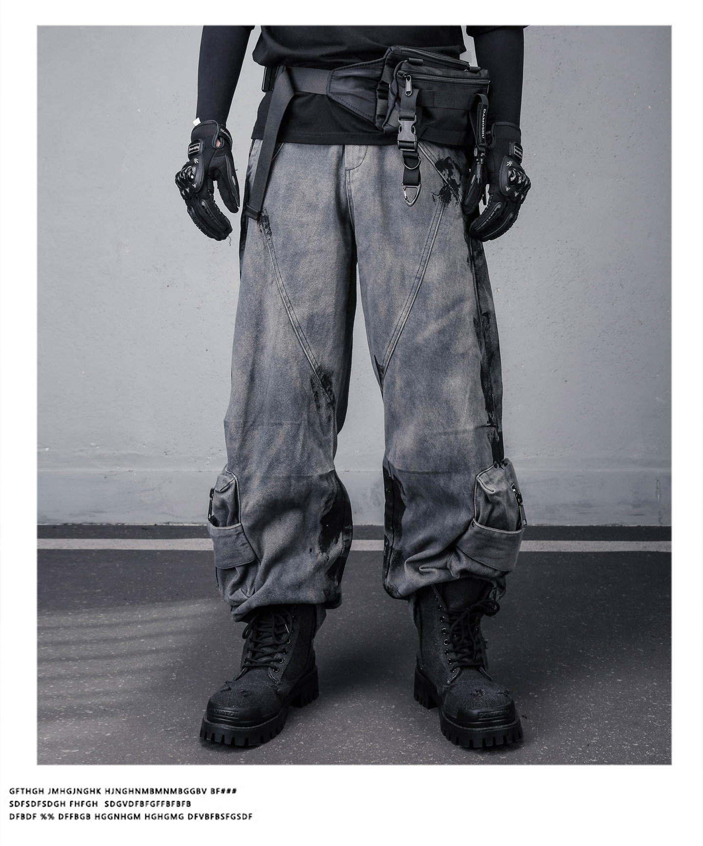 Graffiti Tie-Dye Fleece Lining Wide Leg Cargo Pants WN22463