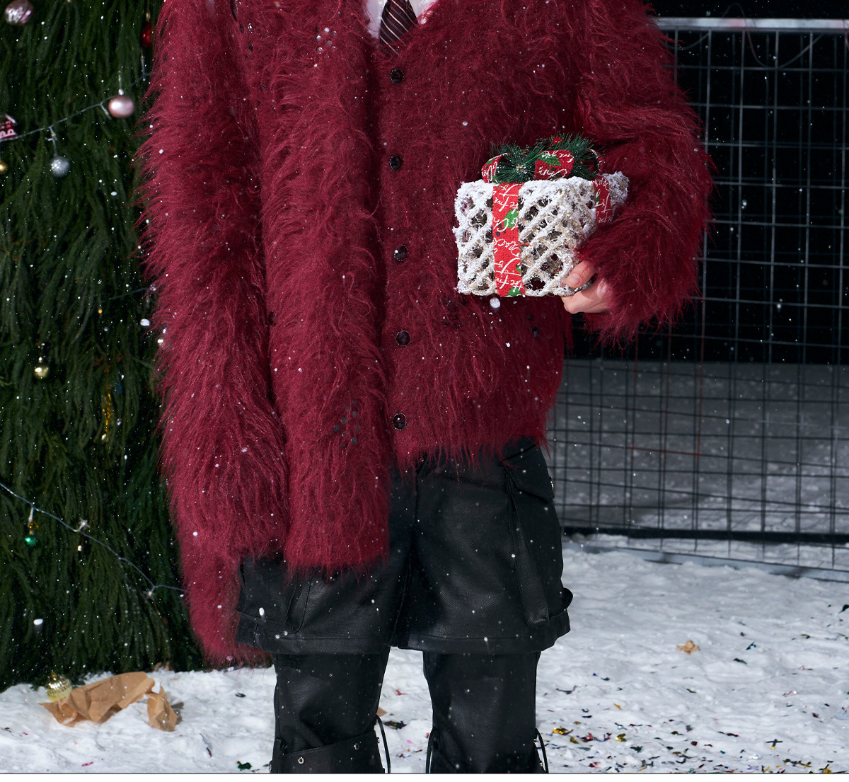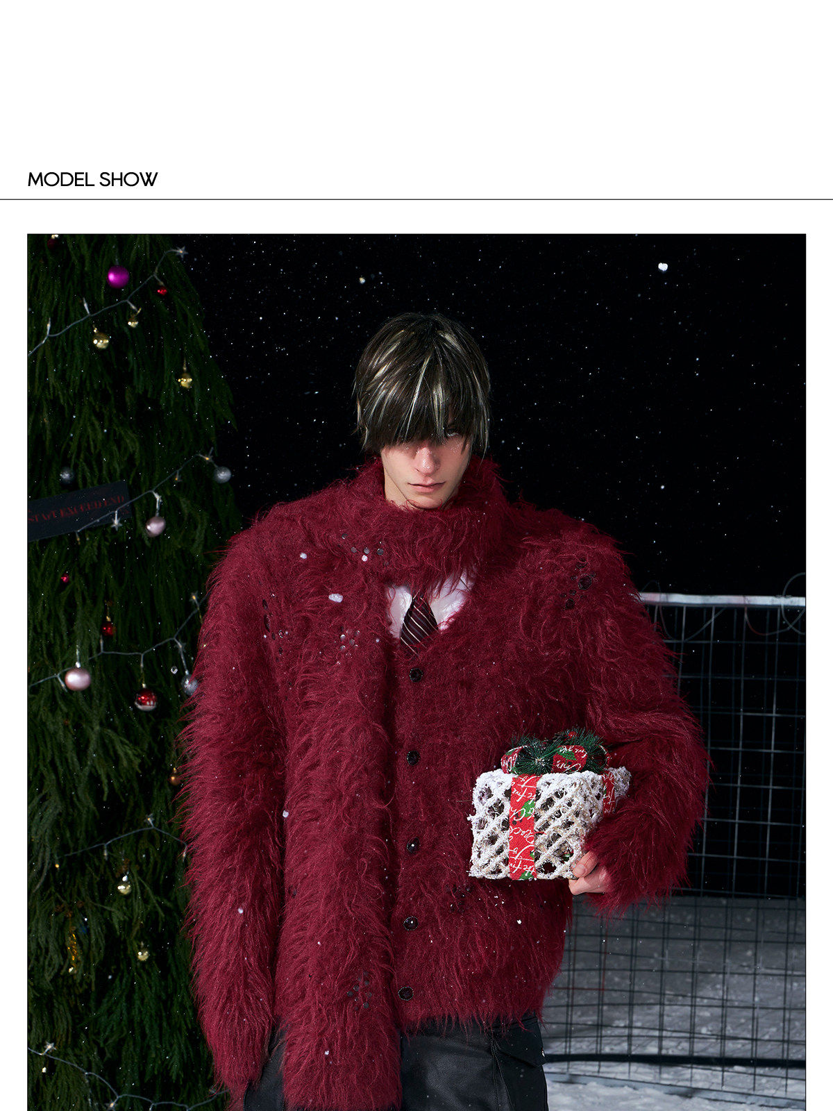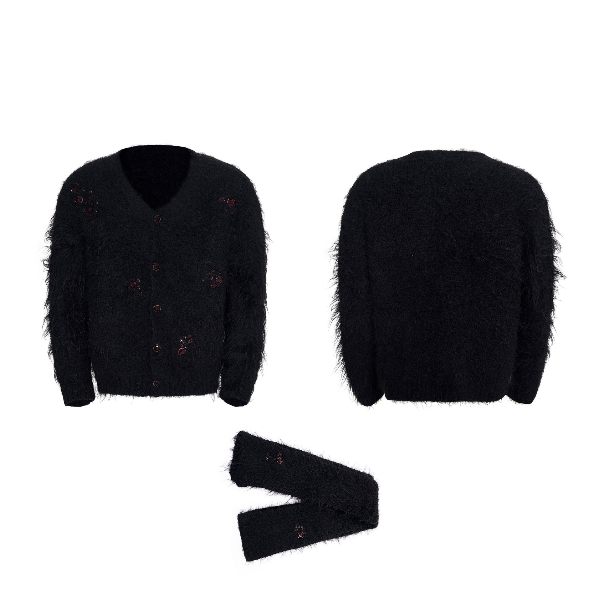 V-Neck Scarf Design Knit Cardigan & Fake Fur Scarf WN22708