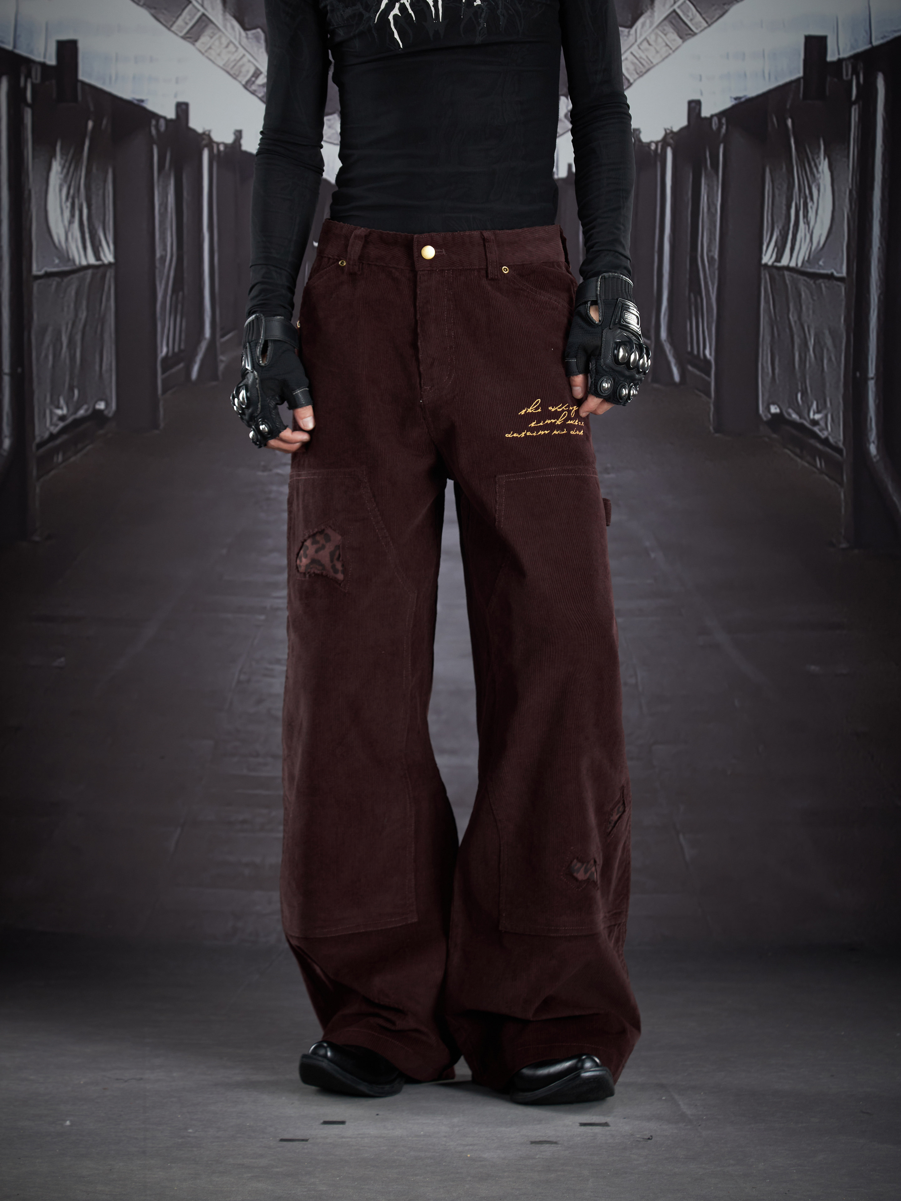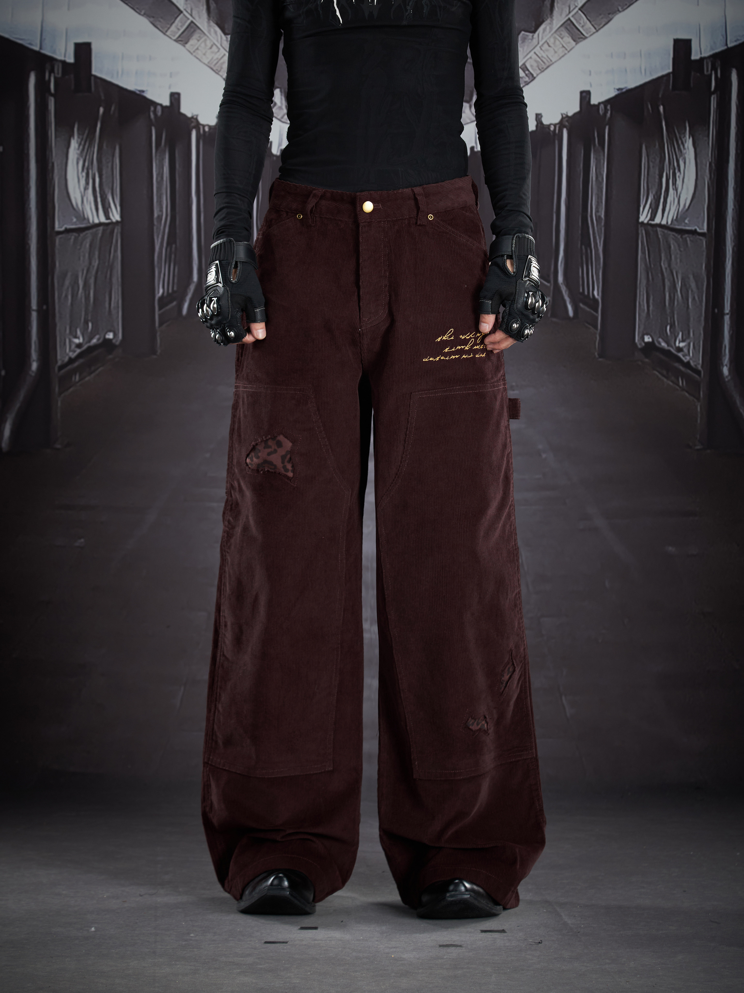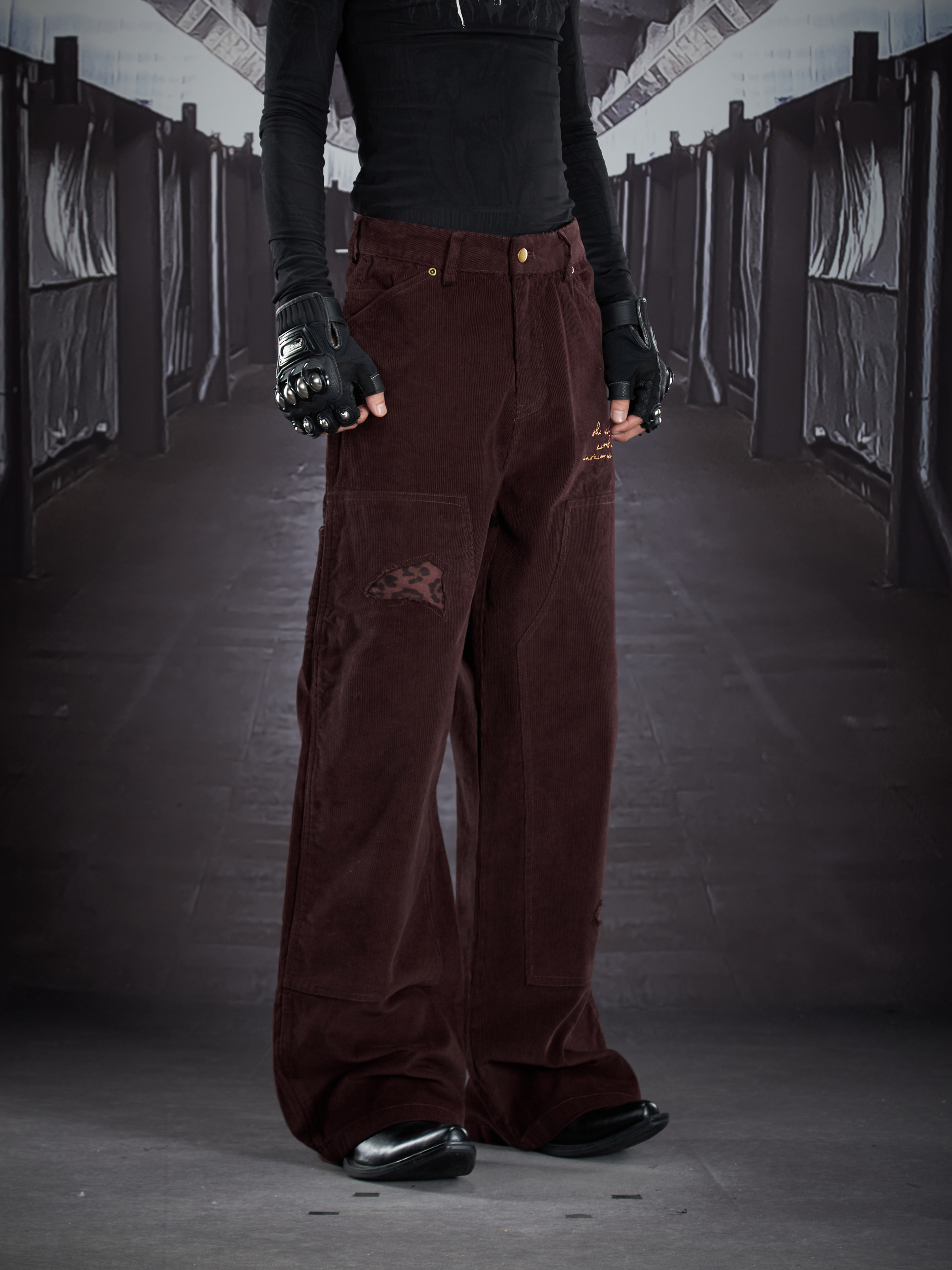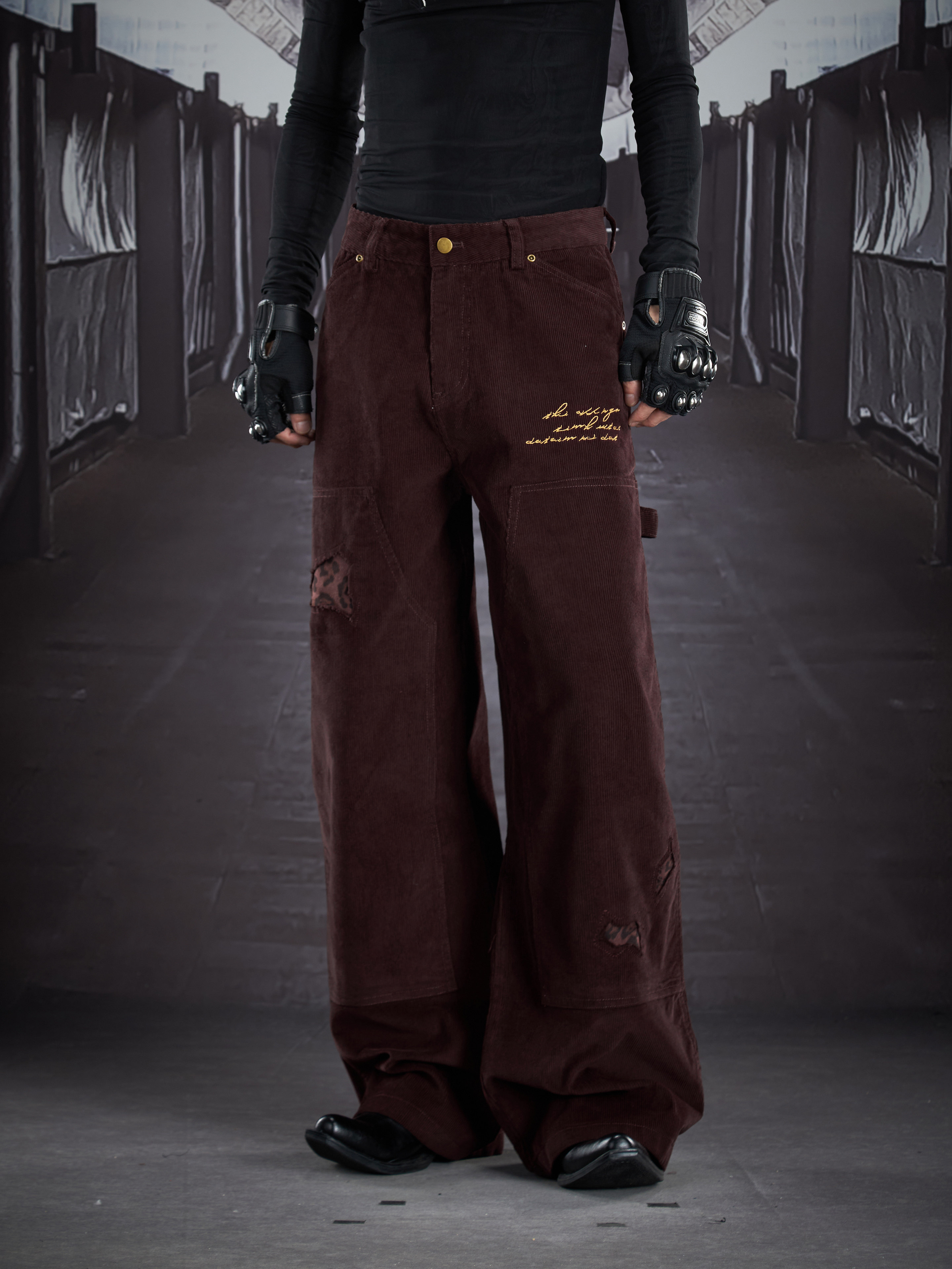 Corduroy Deconstruct Embroidery Straight Pants WN22899