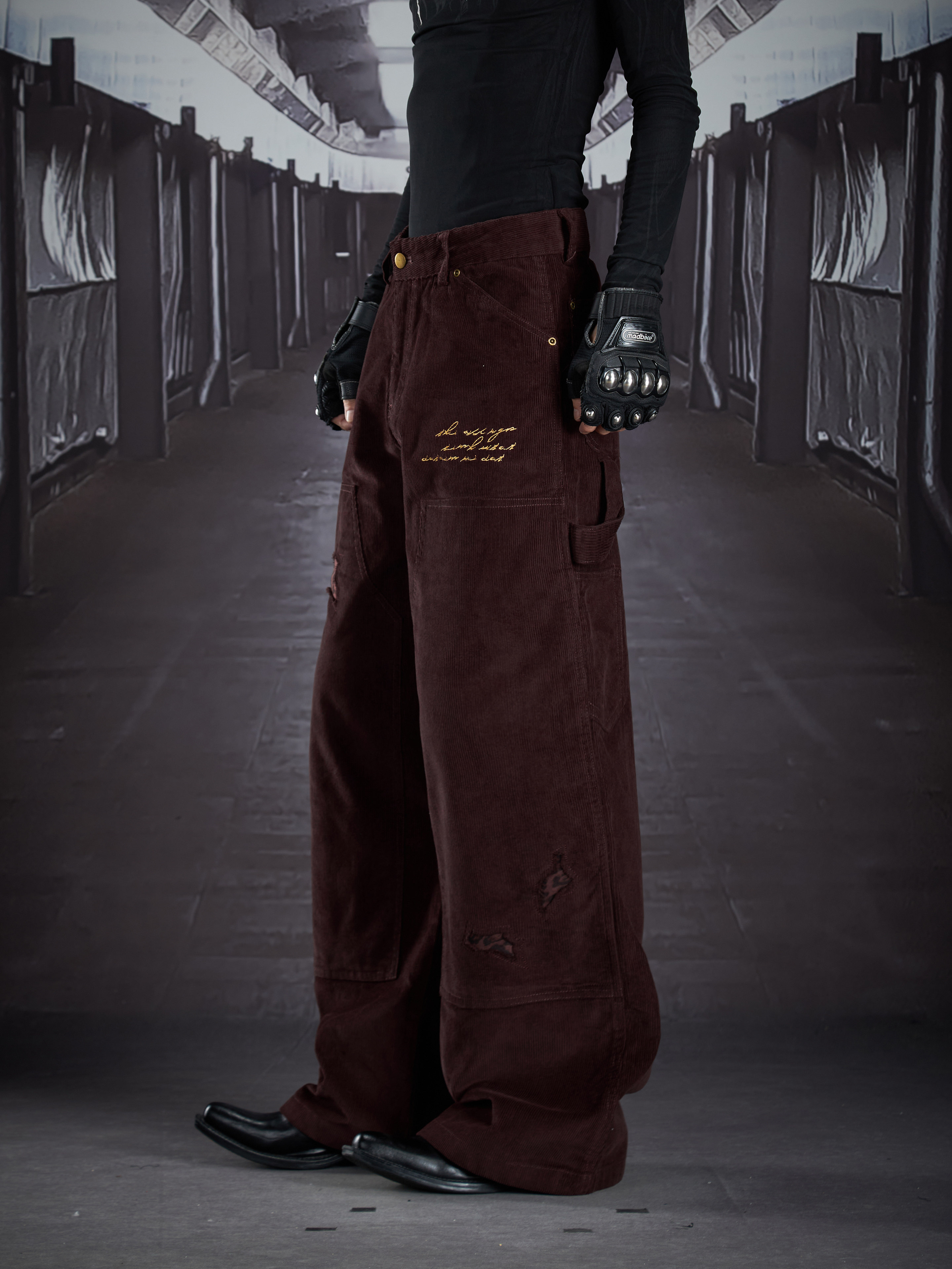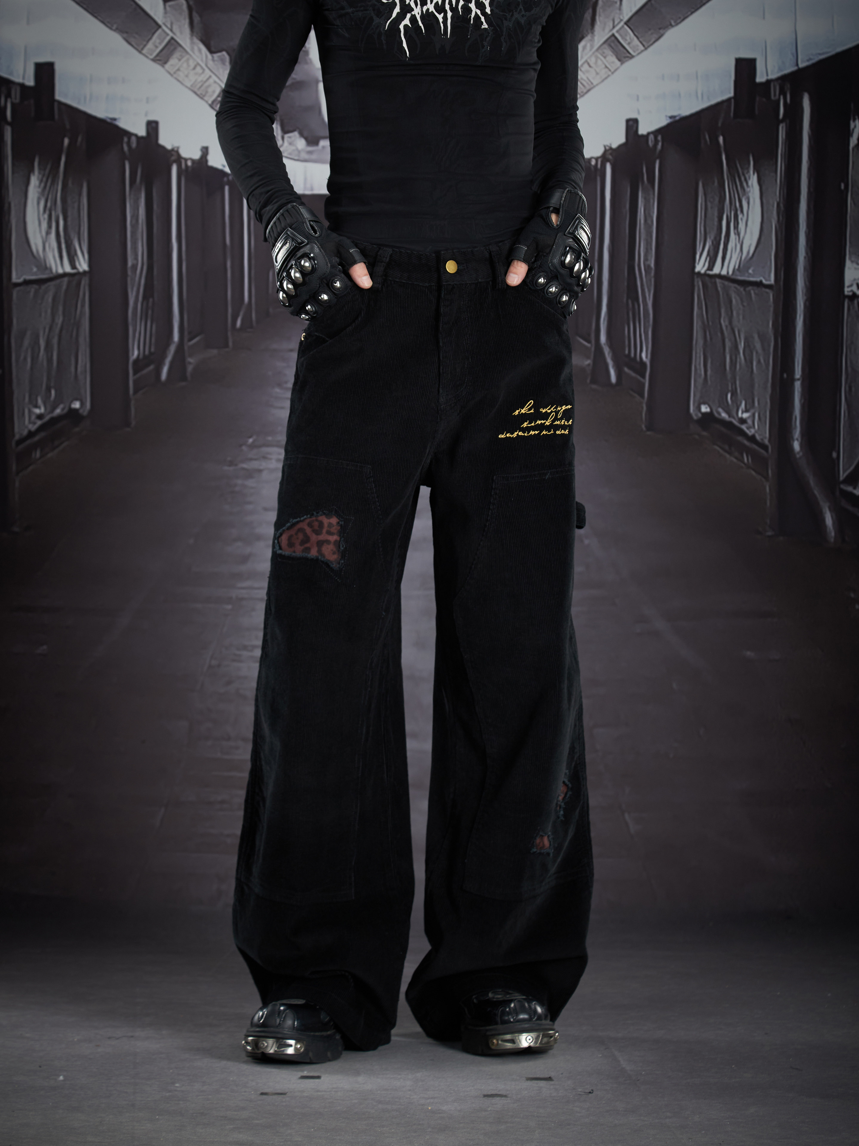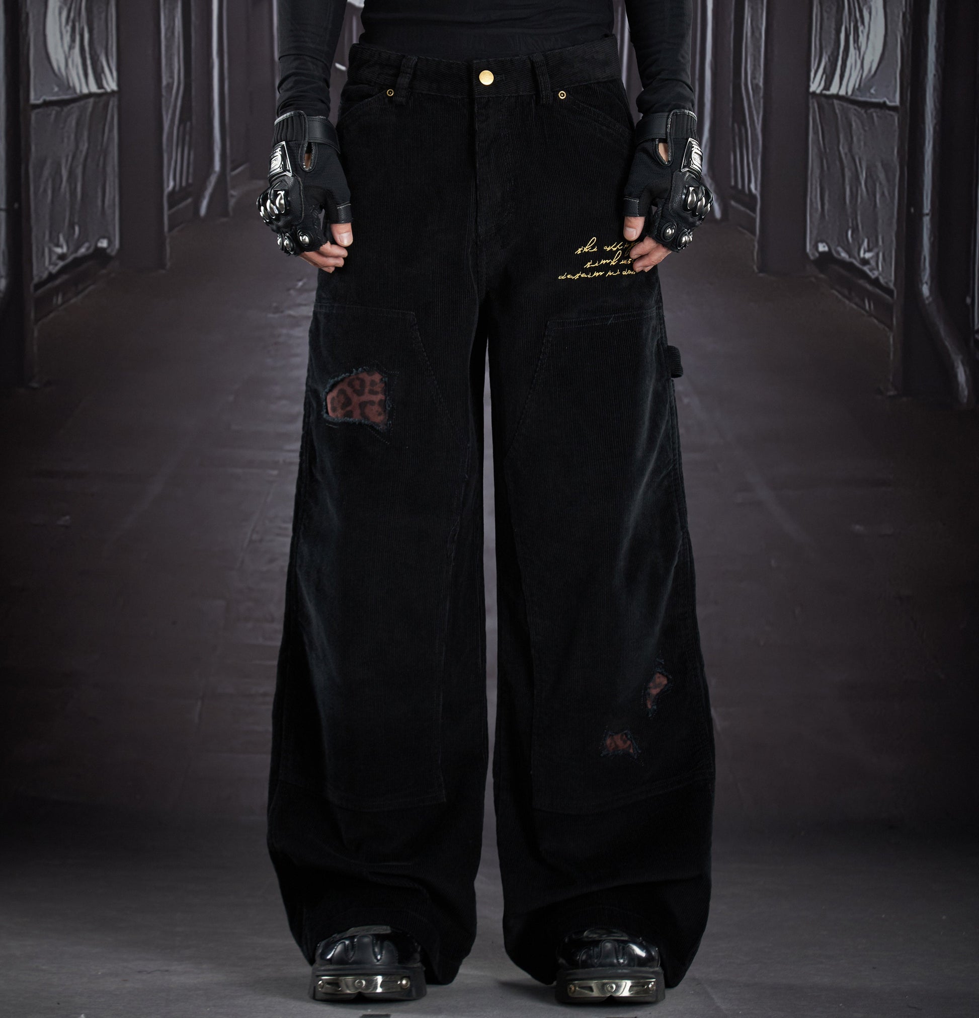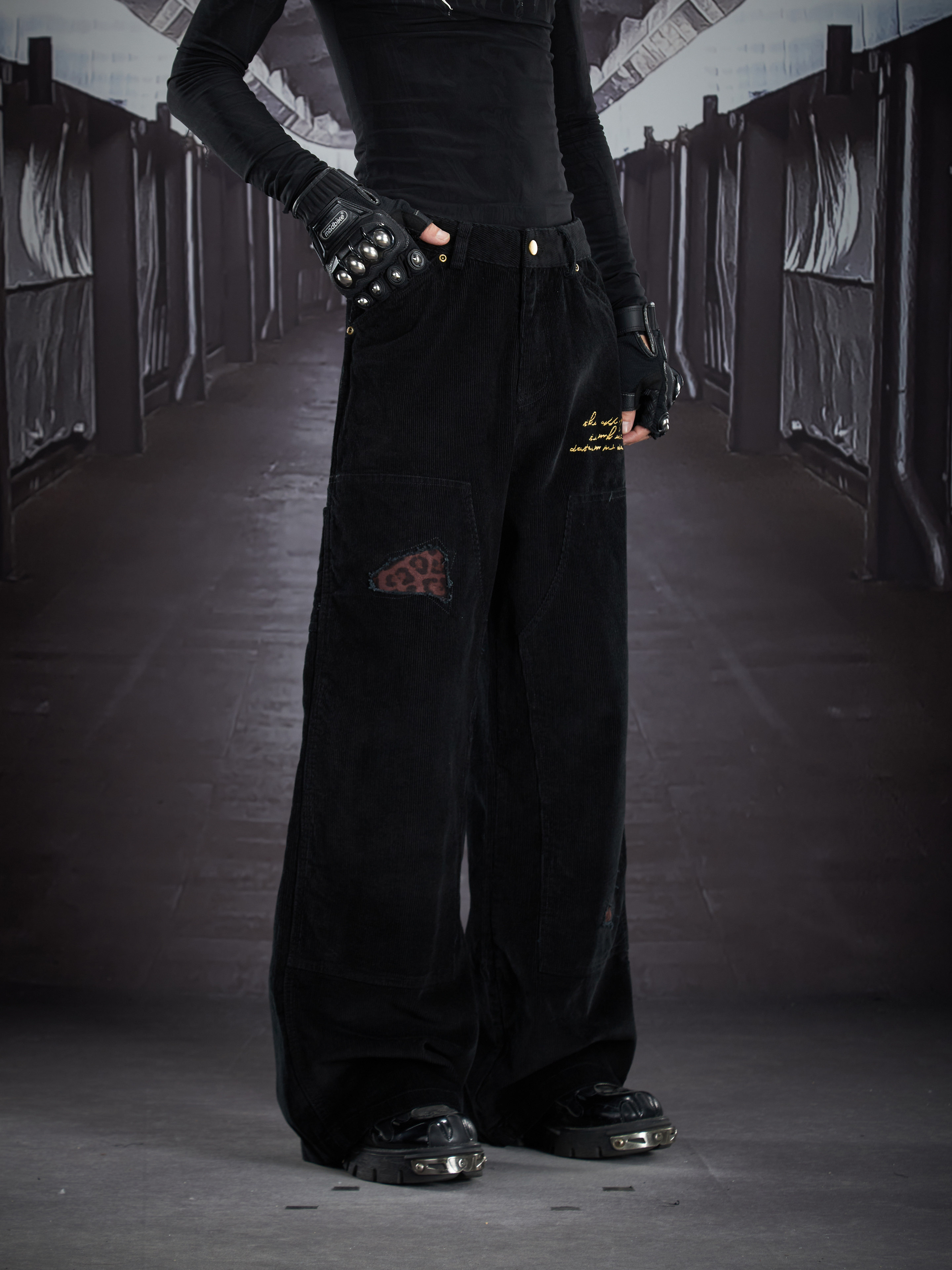 Corduroy Deconstruct Embroidery Straight Pants WN22899