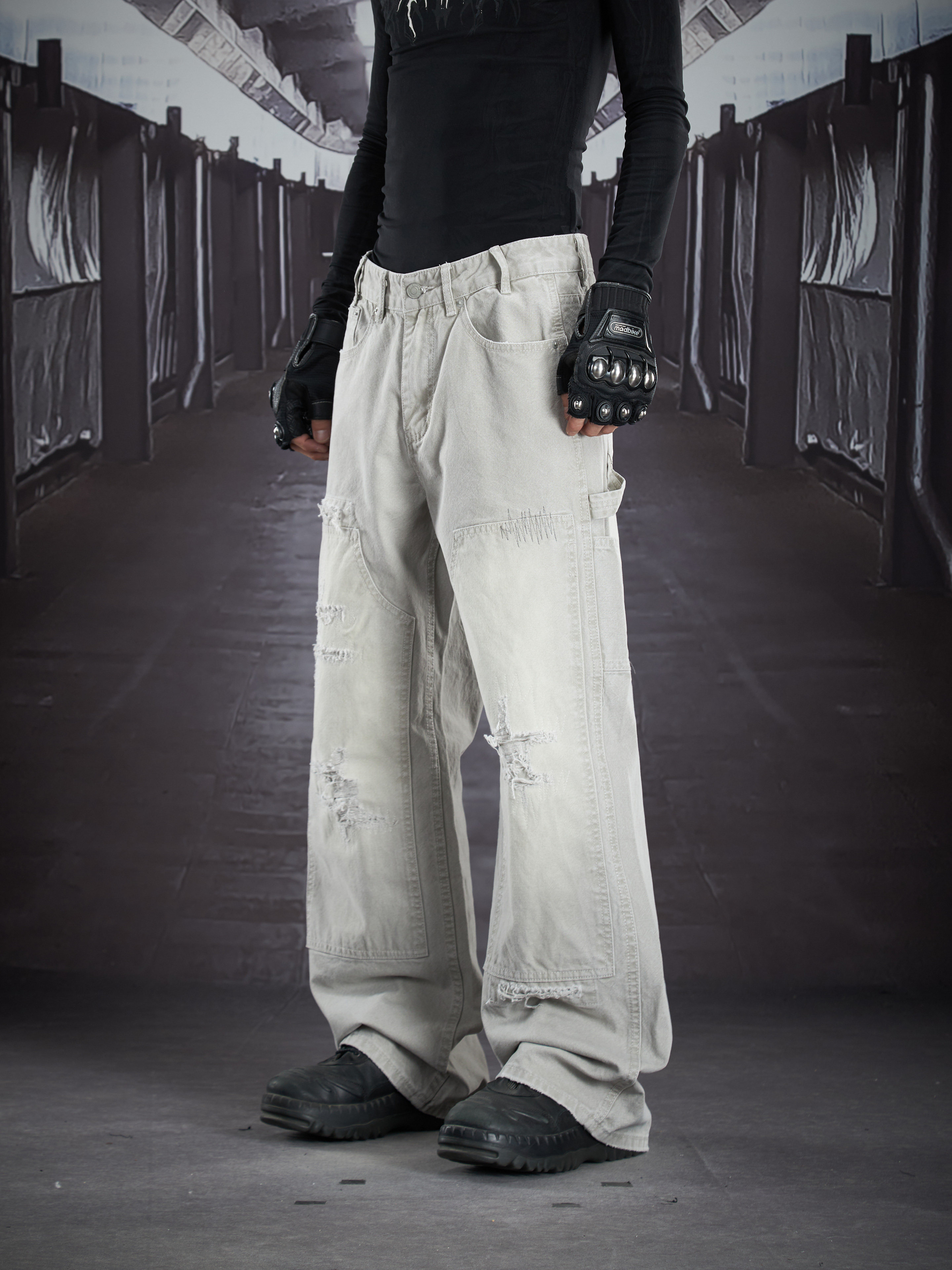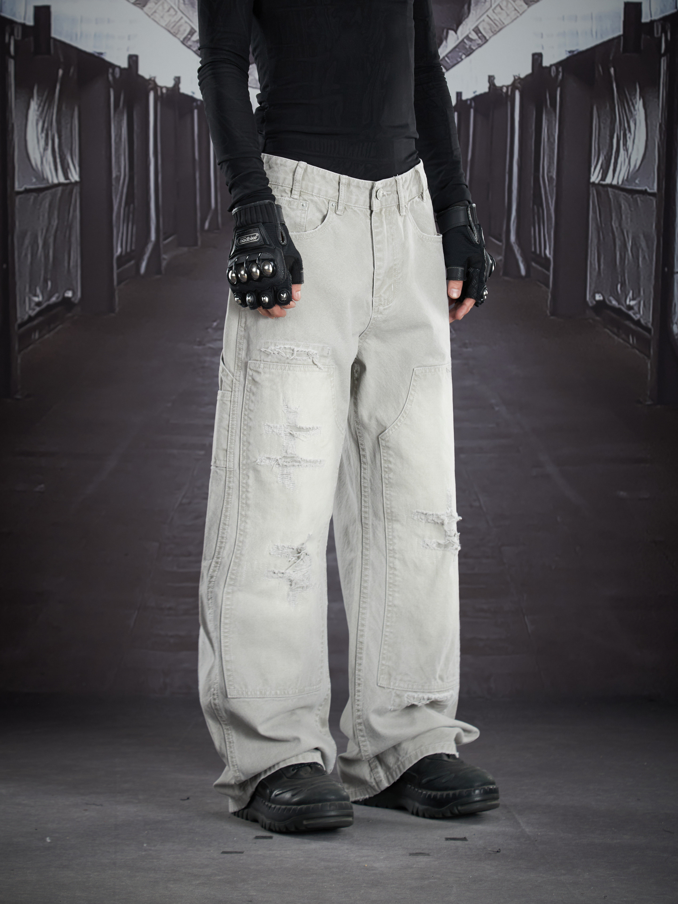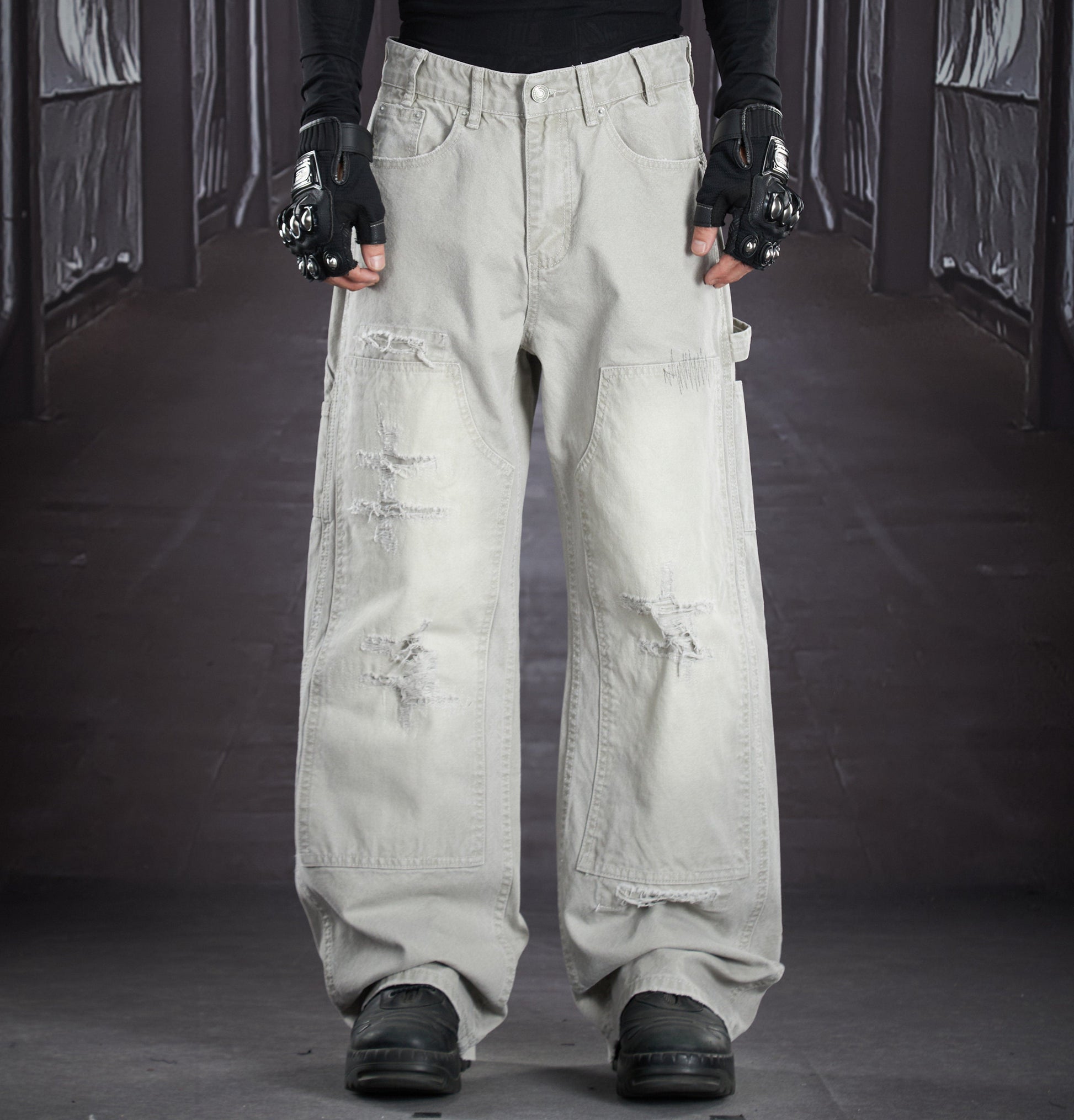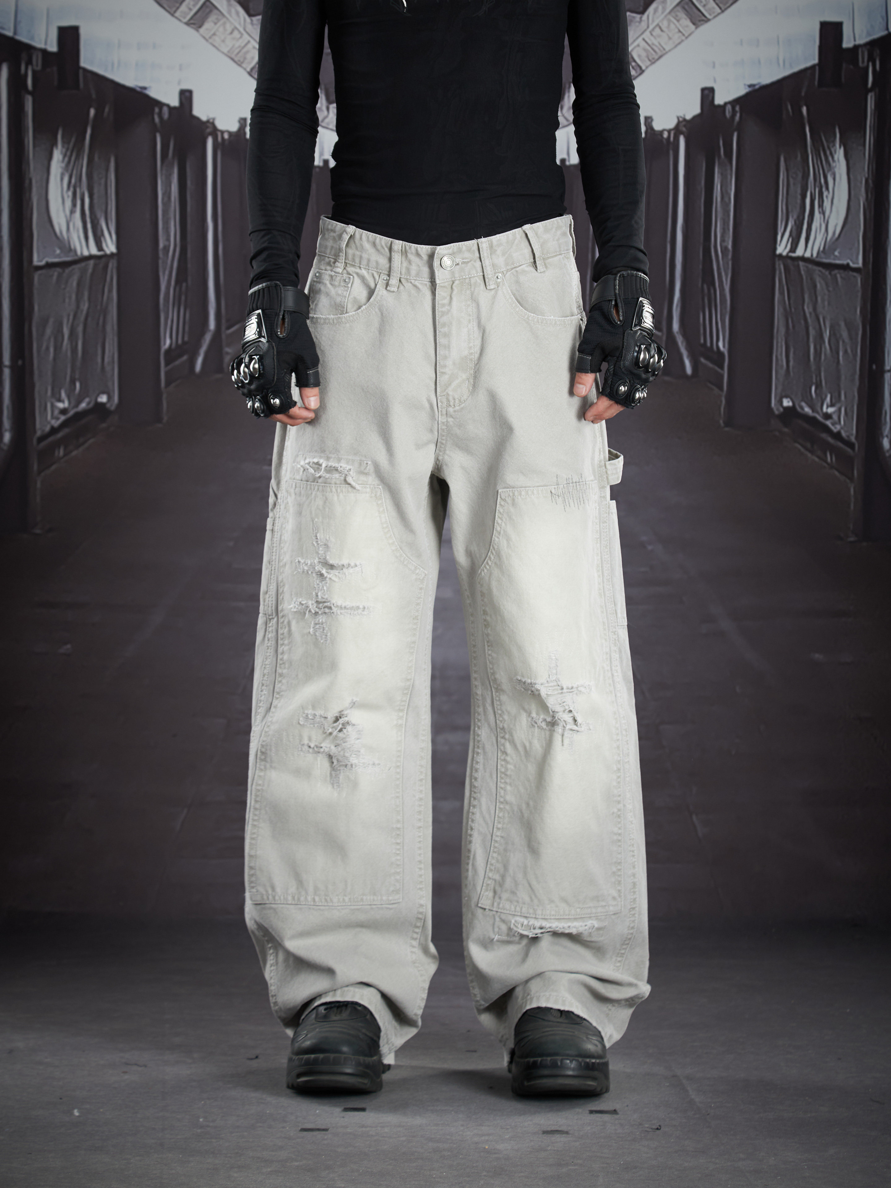 Heavy Wash Damage Ripped Cargo Pants WN22914