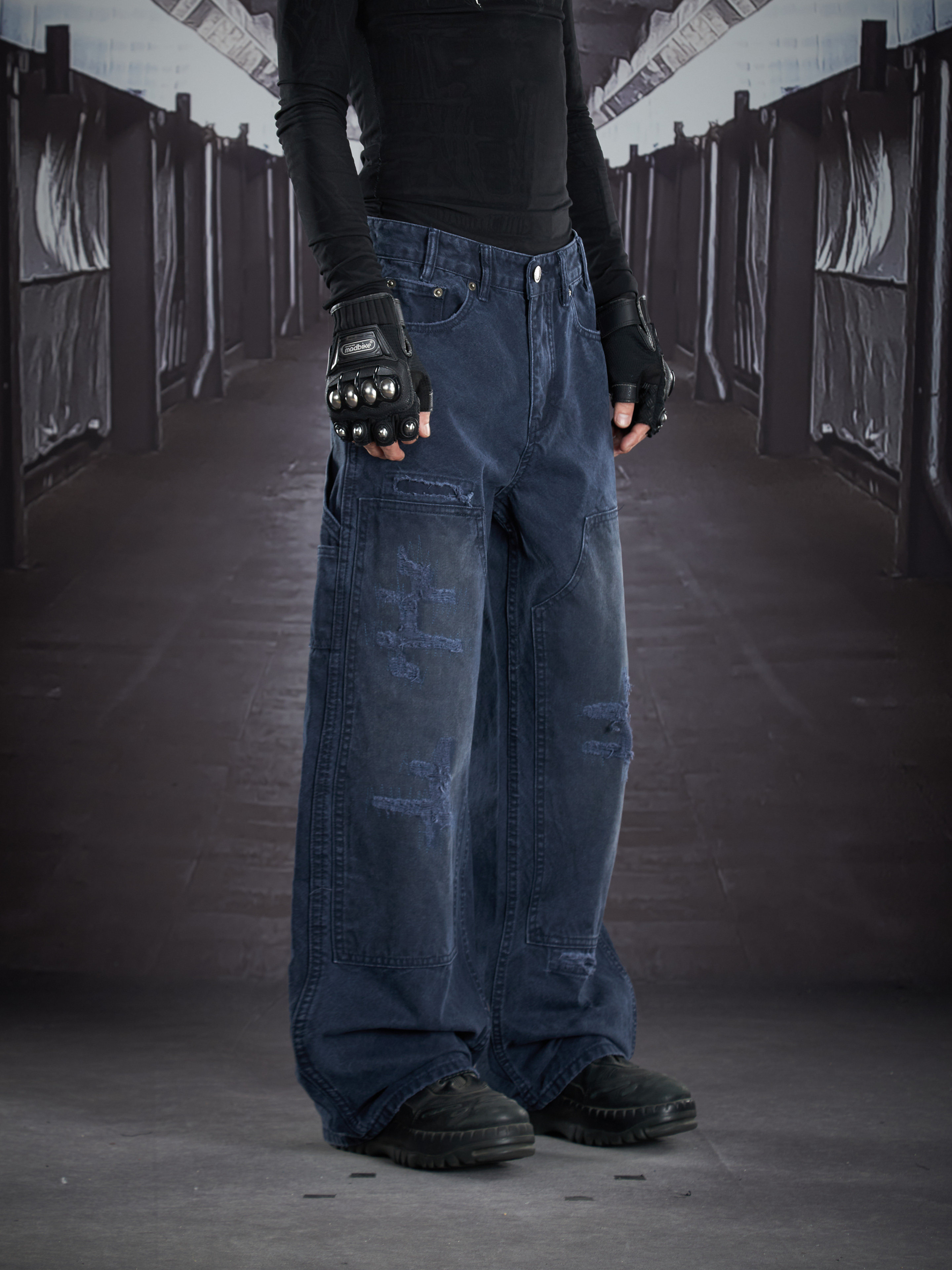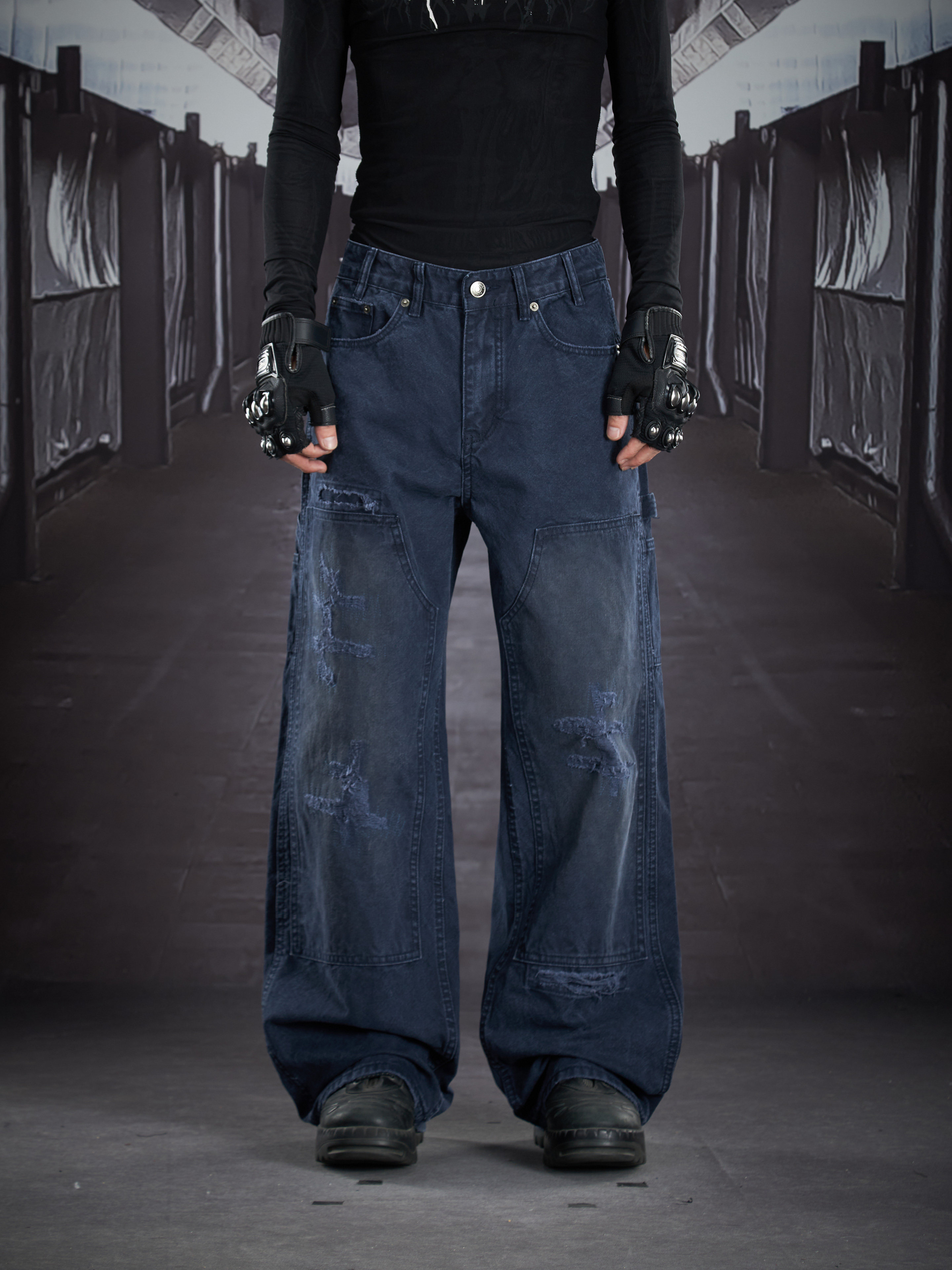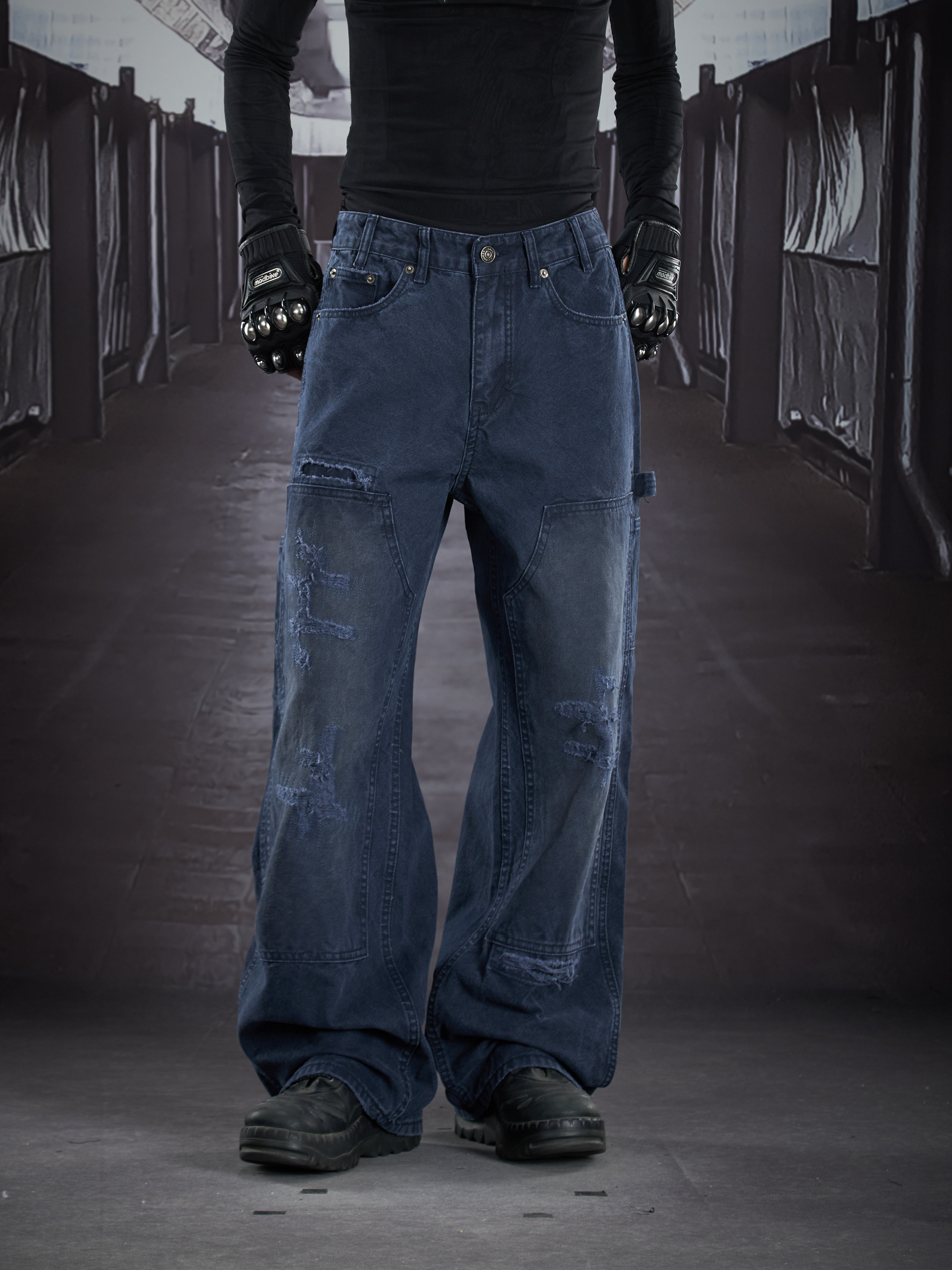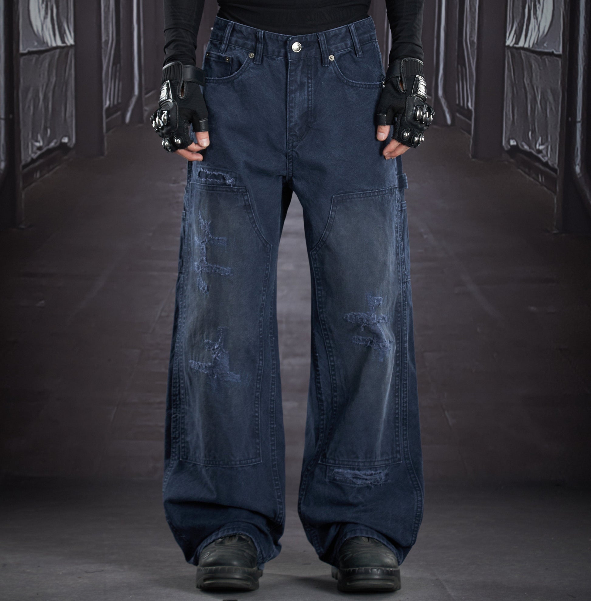 Heavy Wash Damage Ripped Cargo Pants WN22914