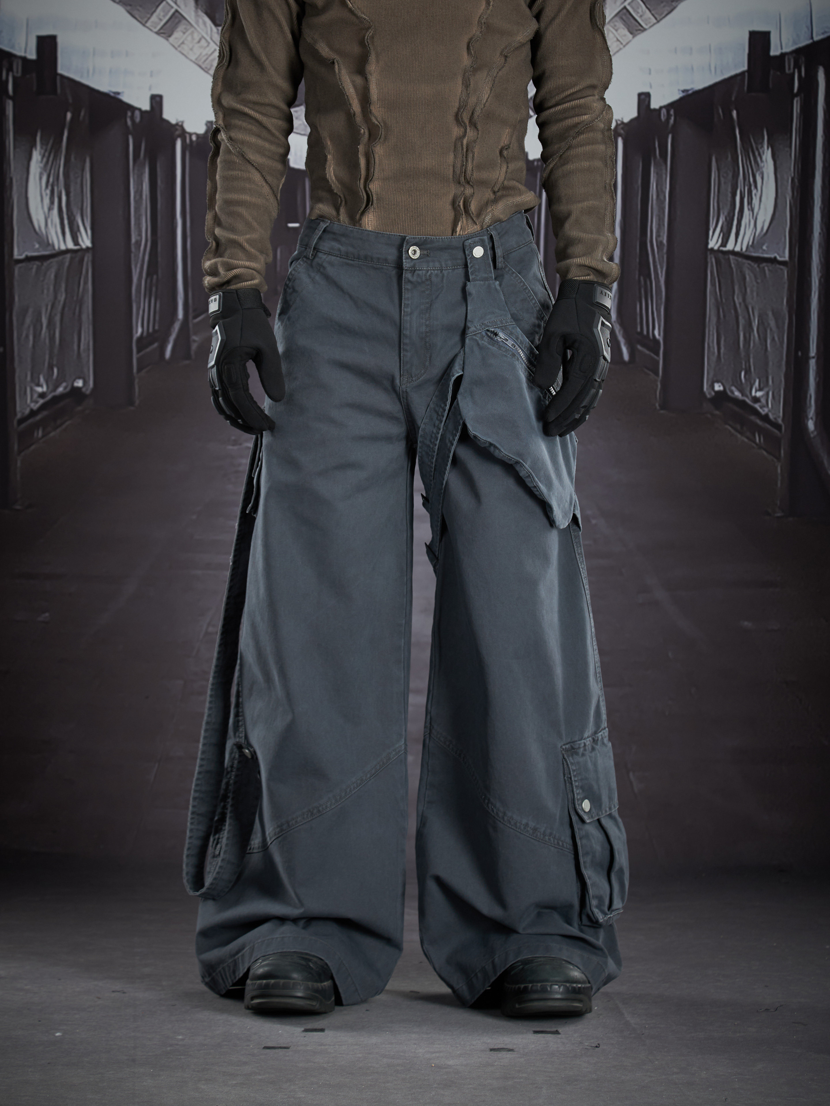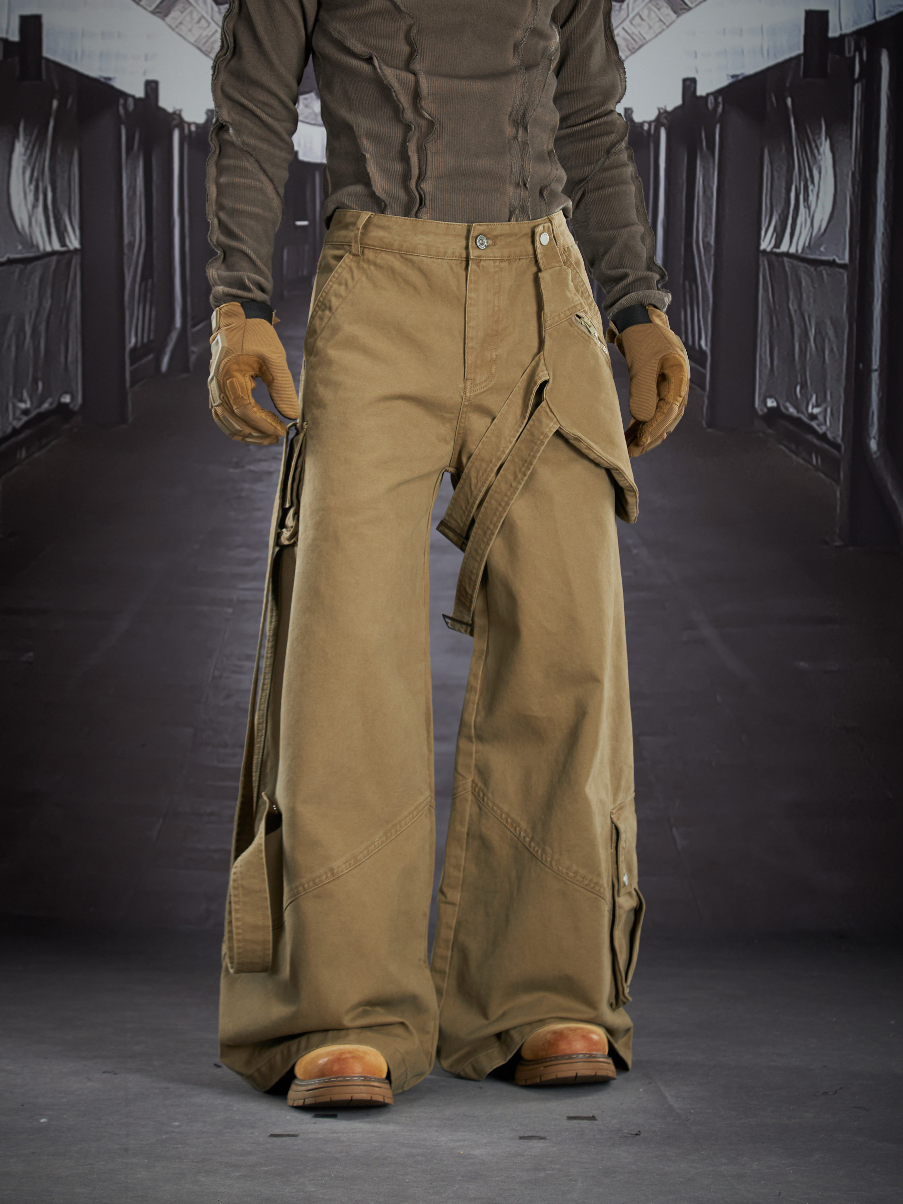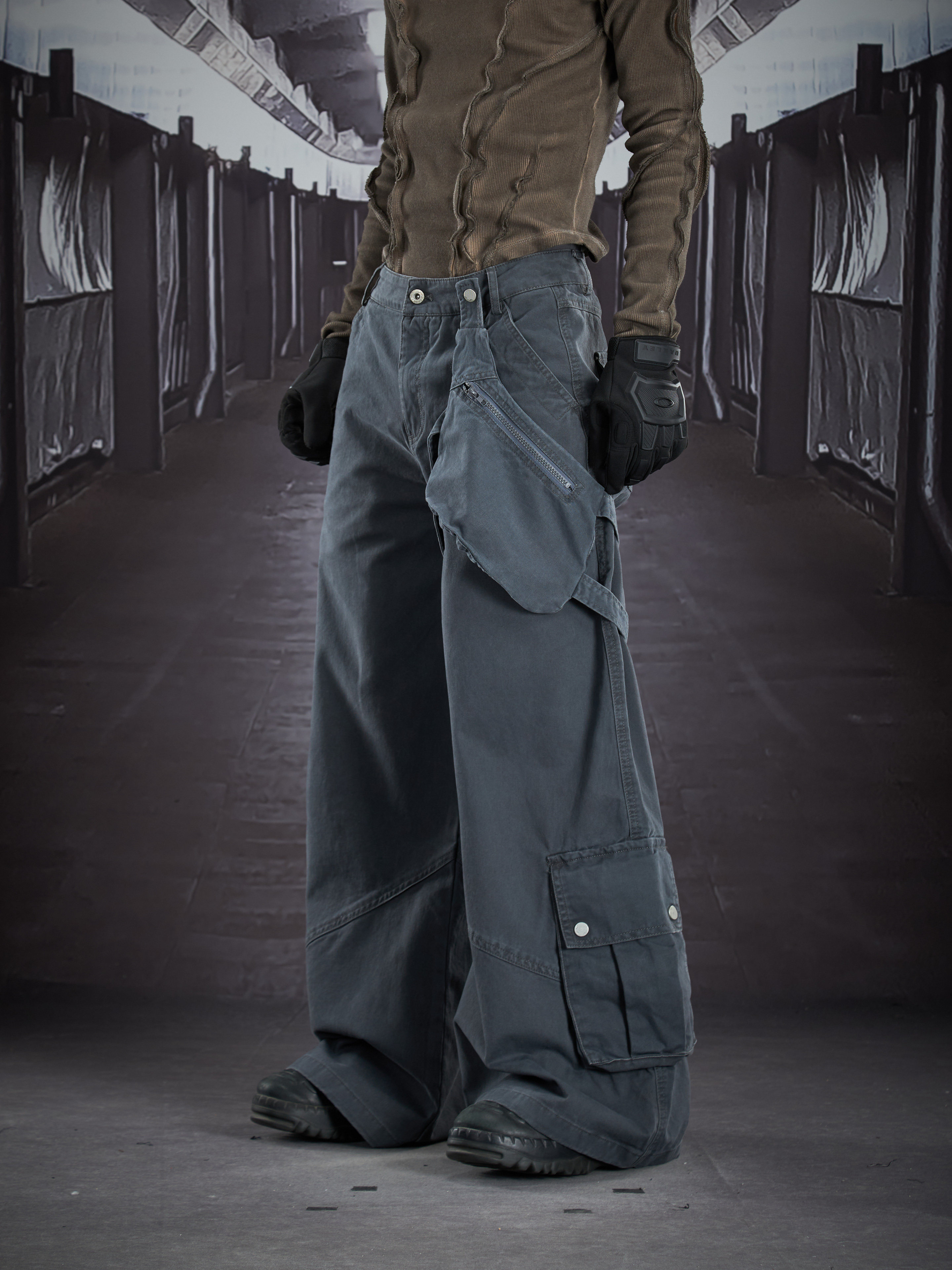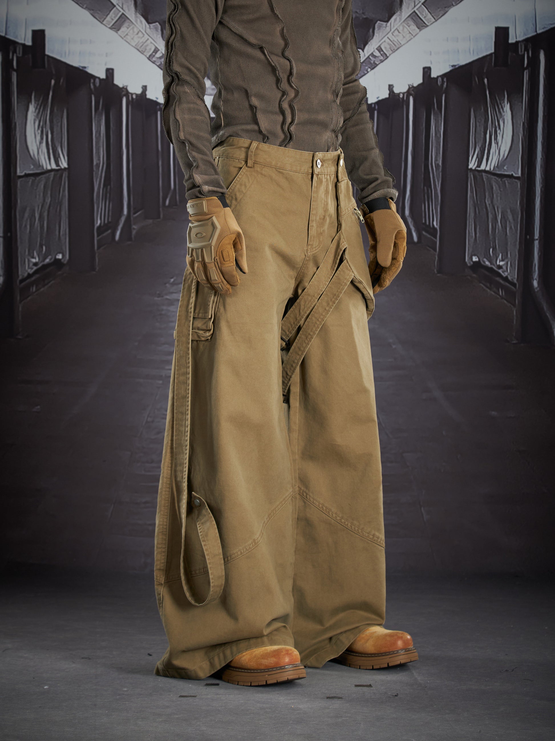 Detachable Hip Bag Ribbon Patchwork Multi Pocket Straight Cargo Pants WN22915