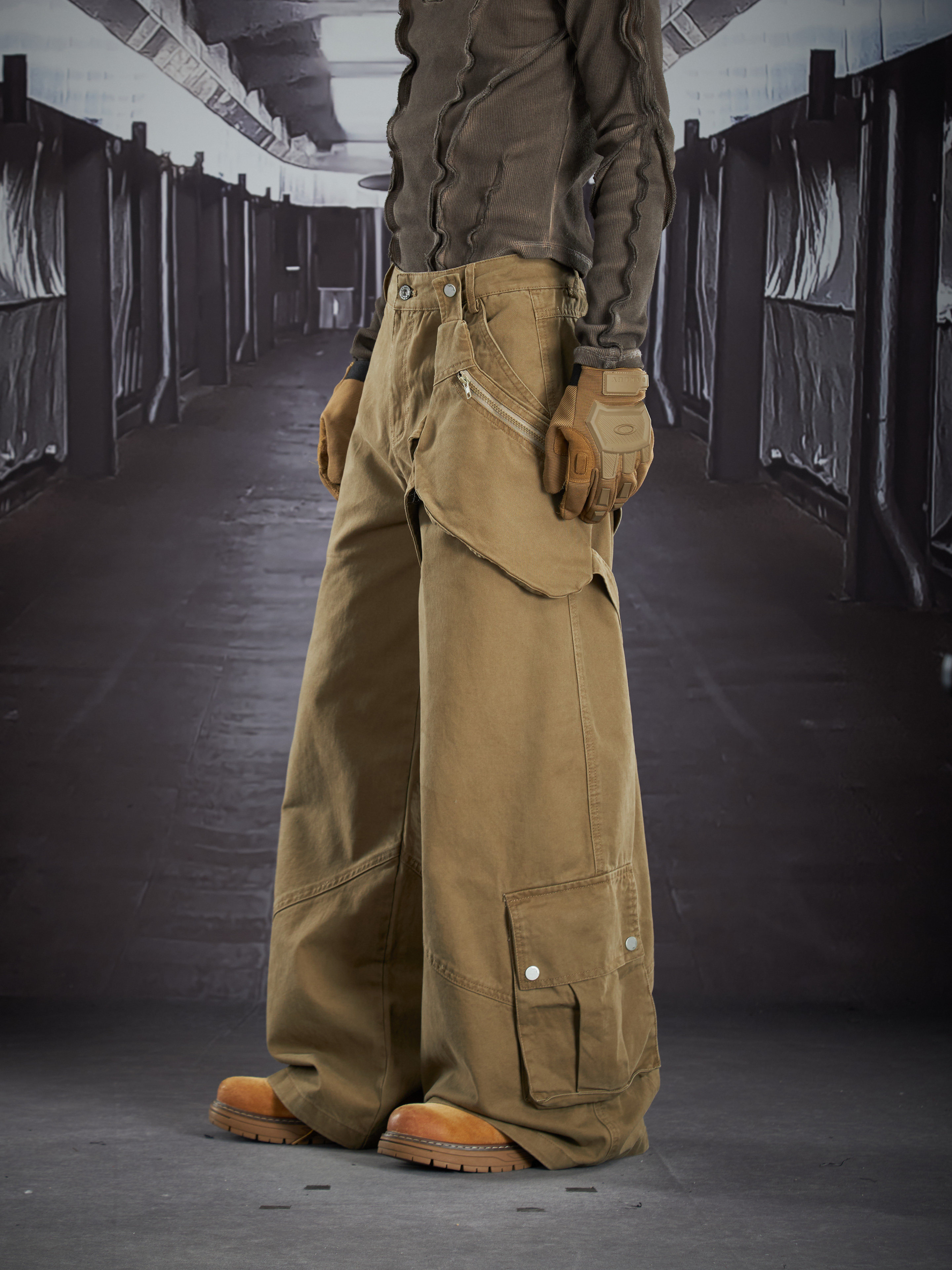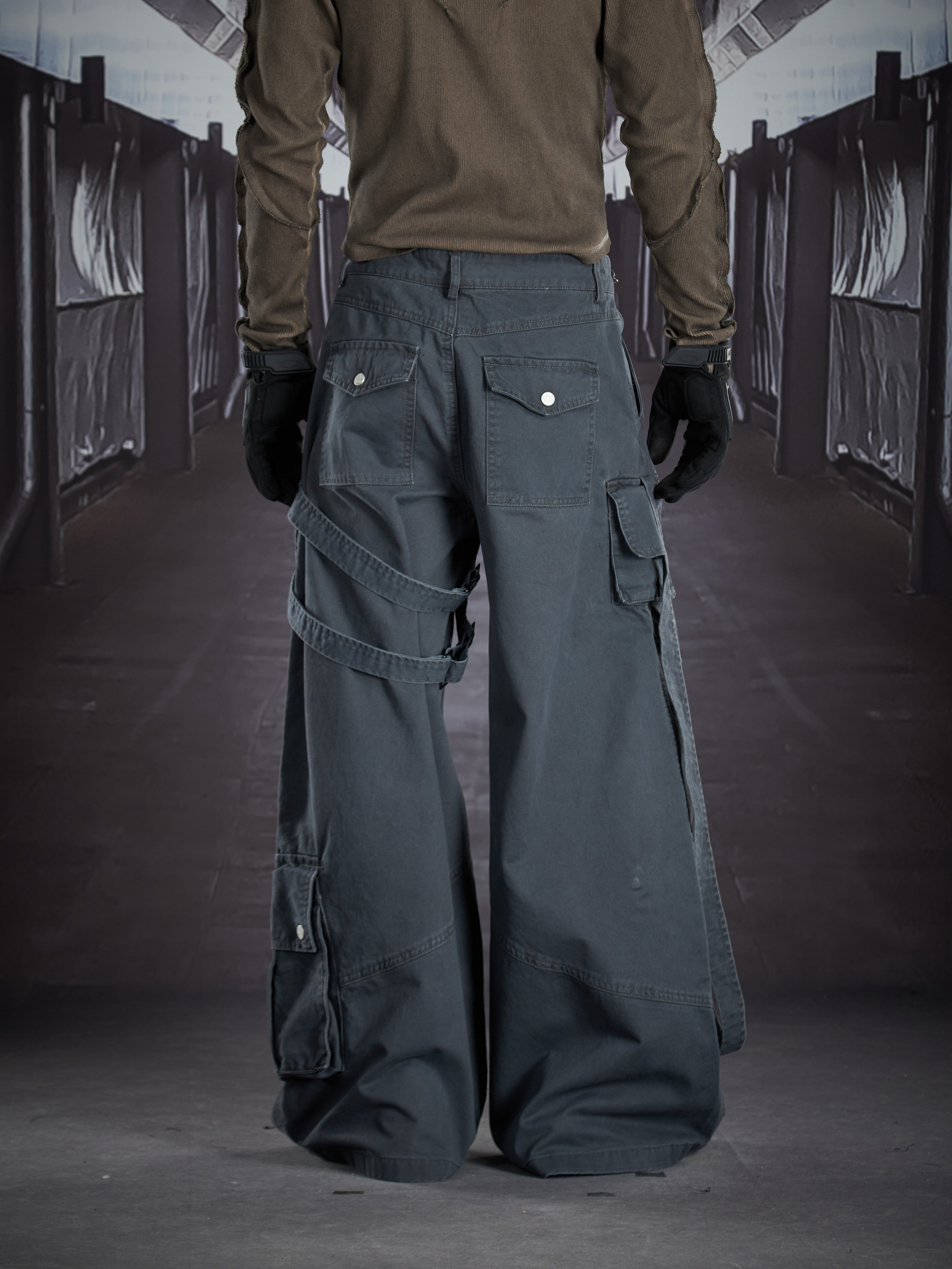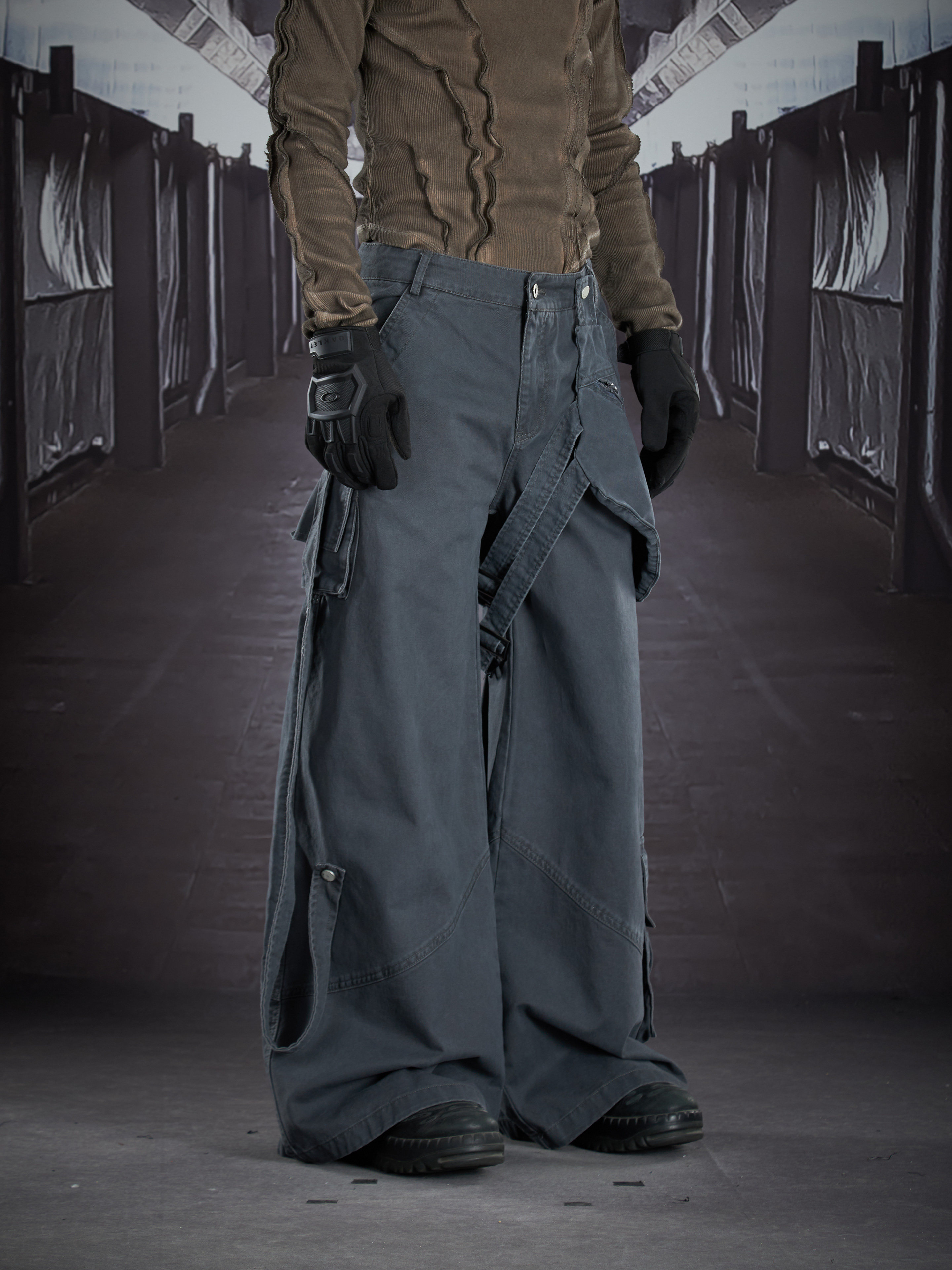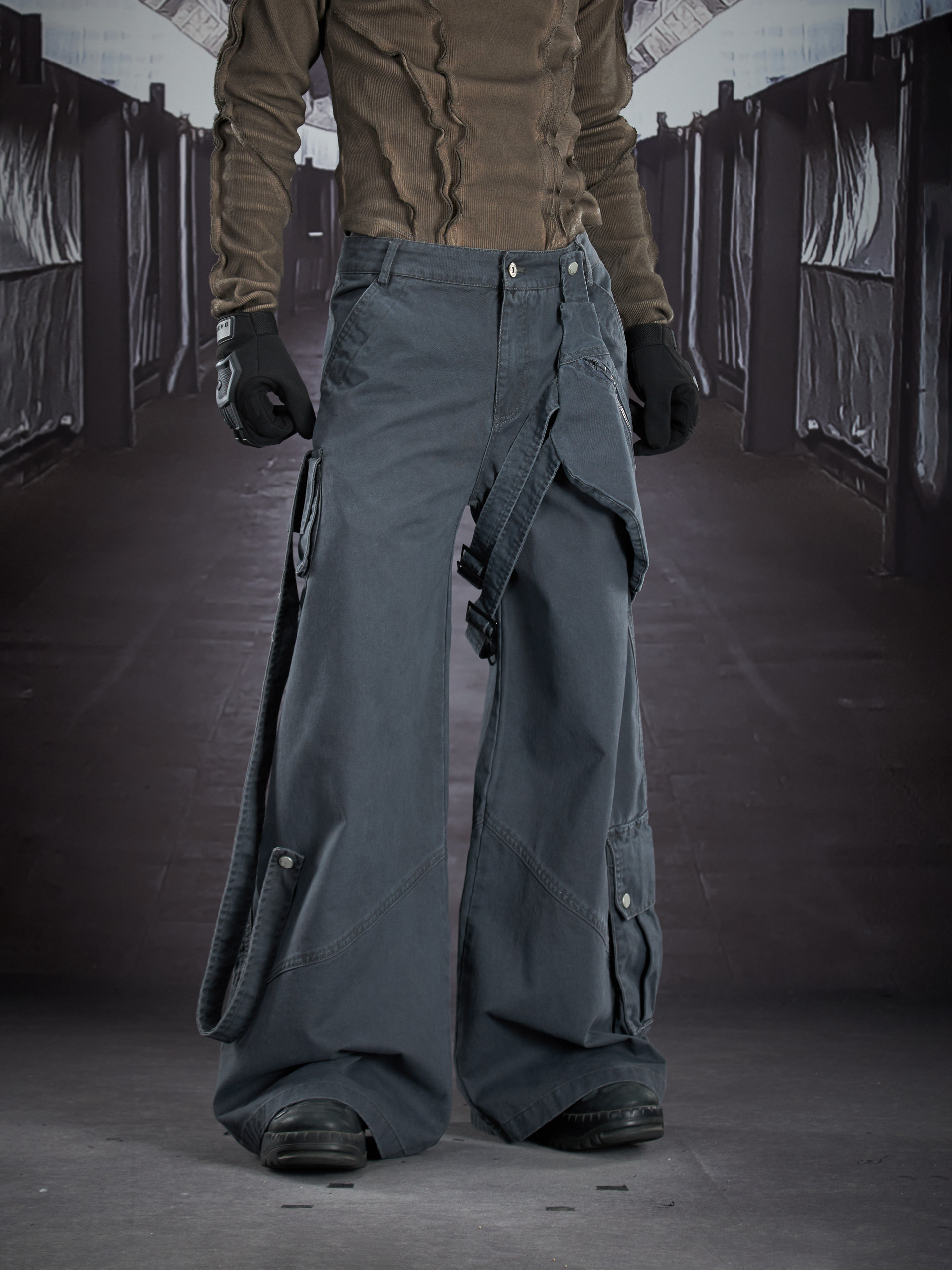 Detachable Hip Bag Ribbon Patchwork Multi Pocket Straight Cargo Pants WN22915