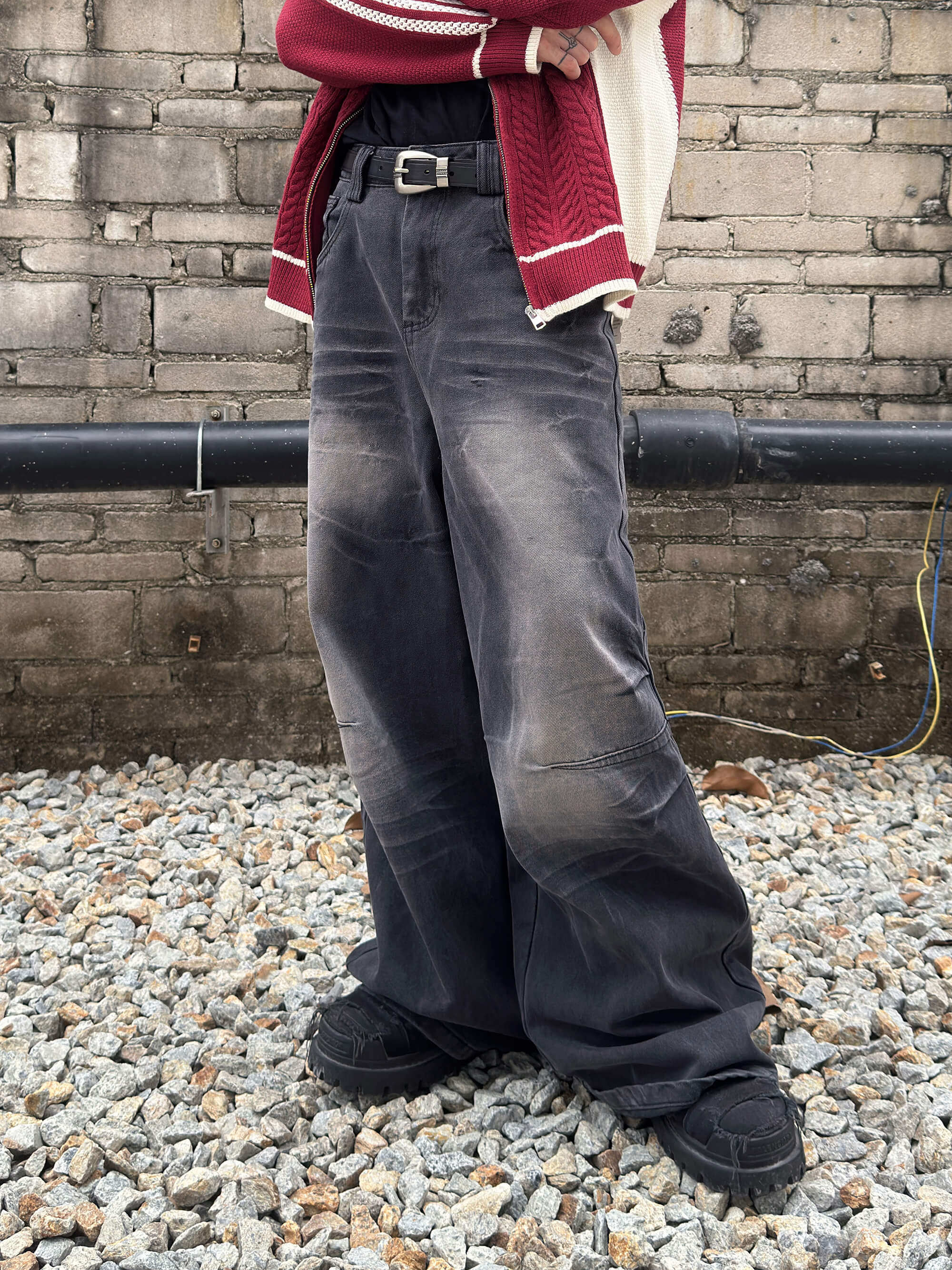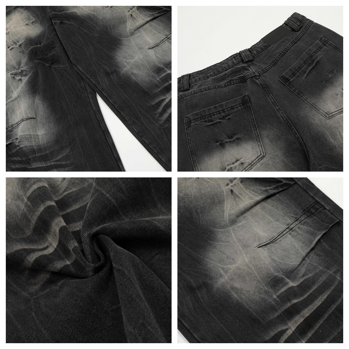 Heavyweight Wash Pleats Flare Denim Jeans WN22995