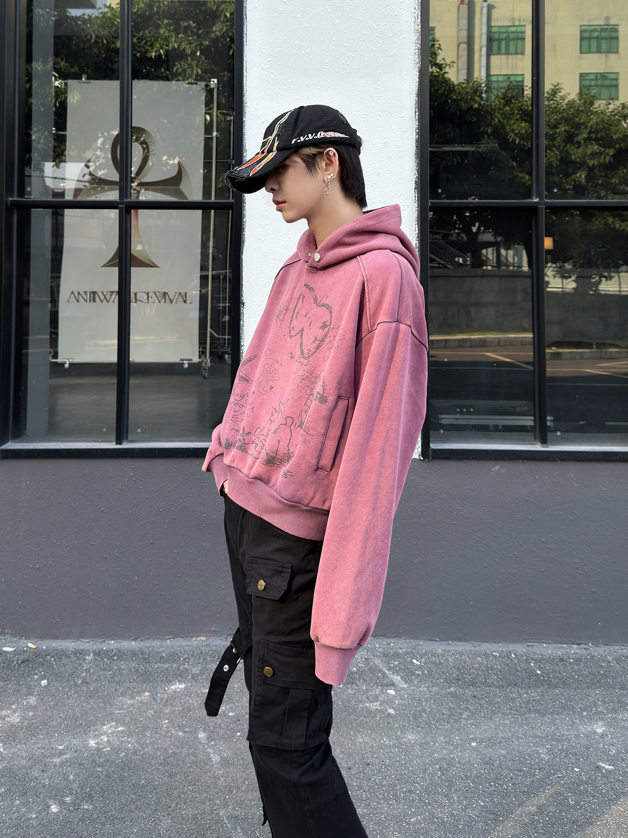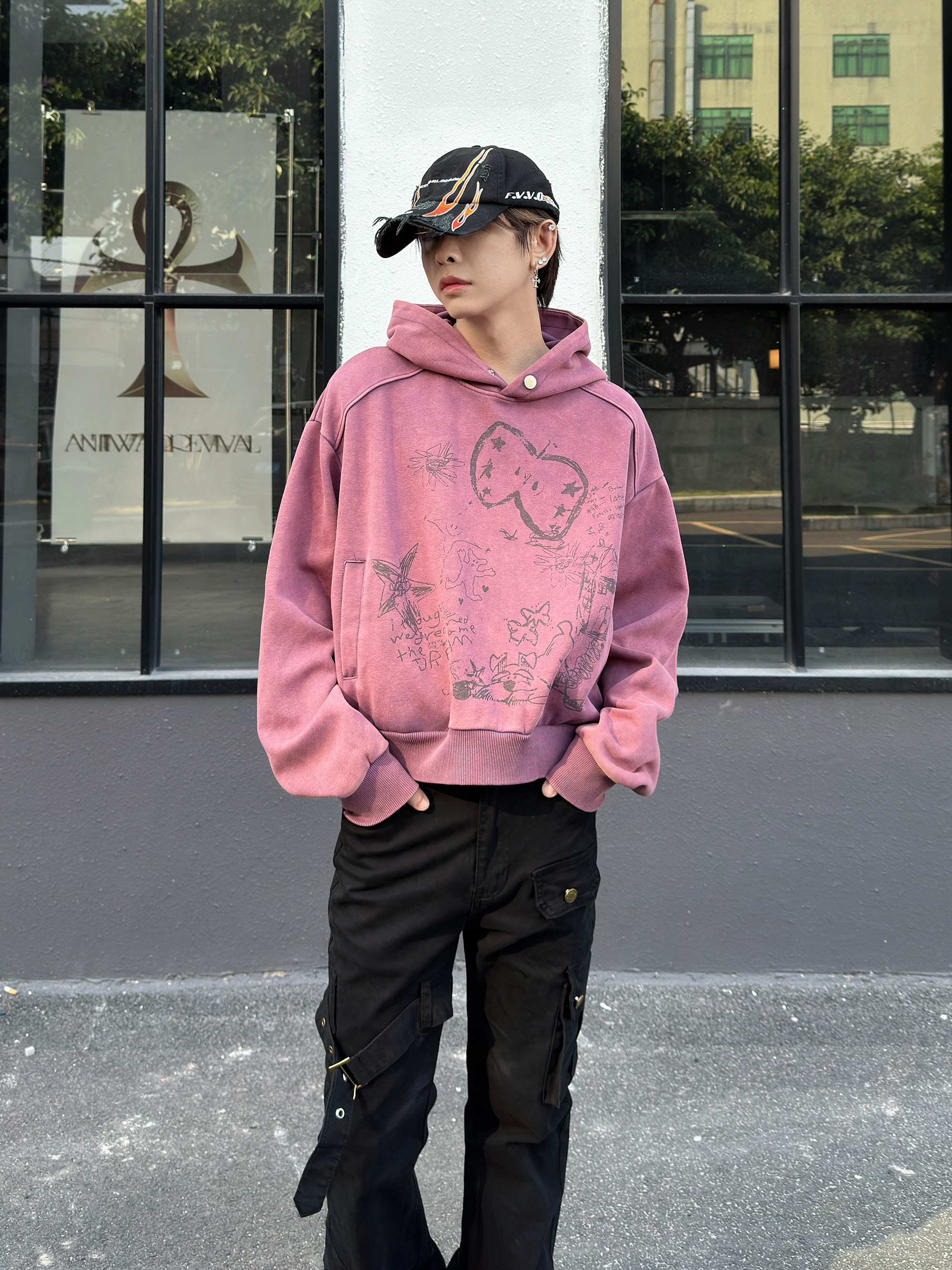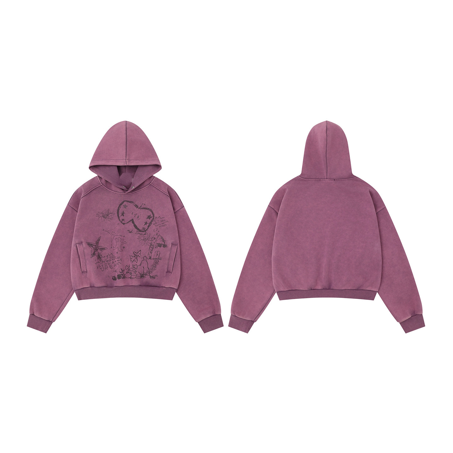 Graffiti Print Oversize Short Pullover Hoodie WN23012