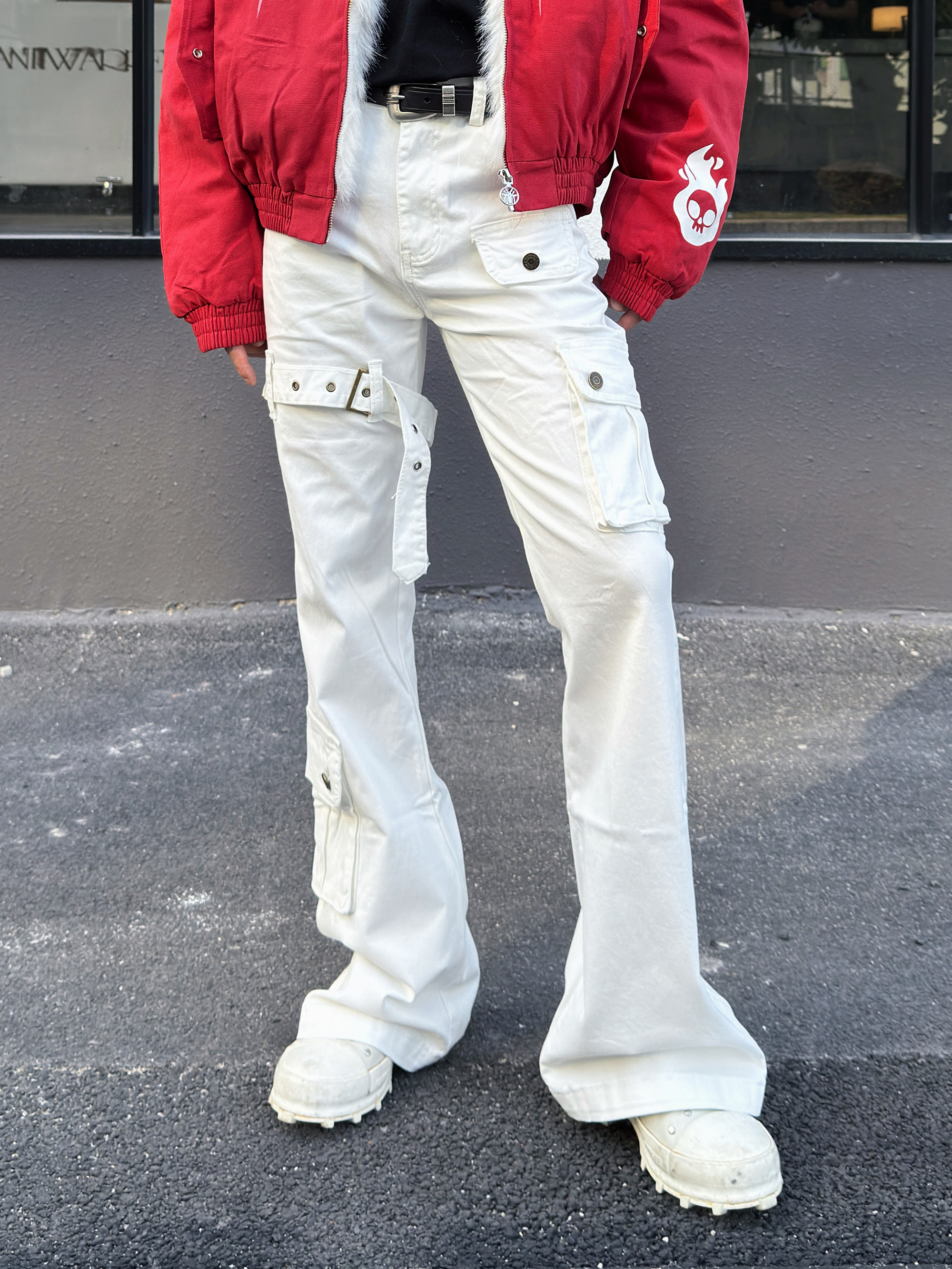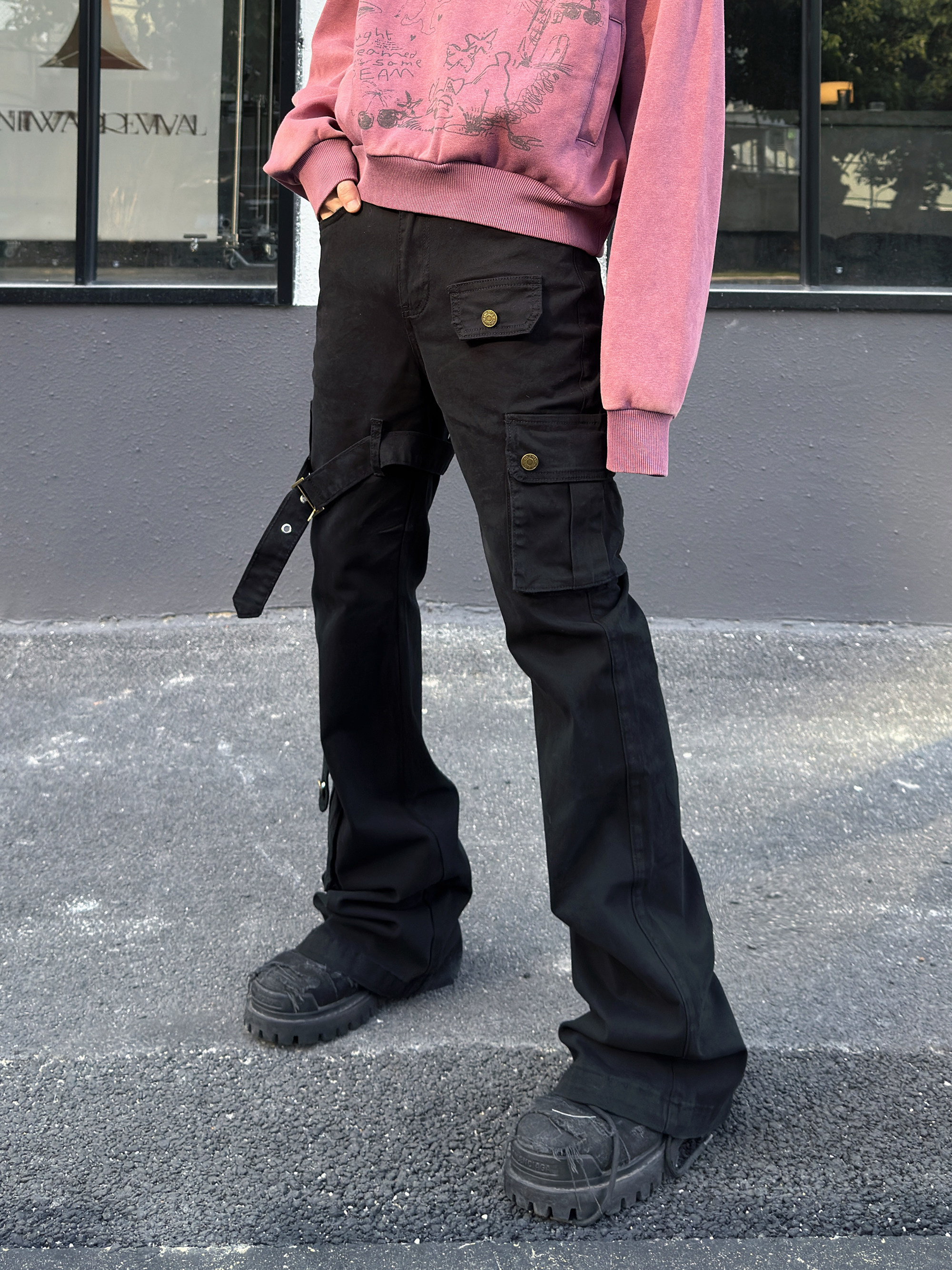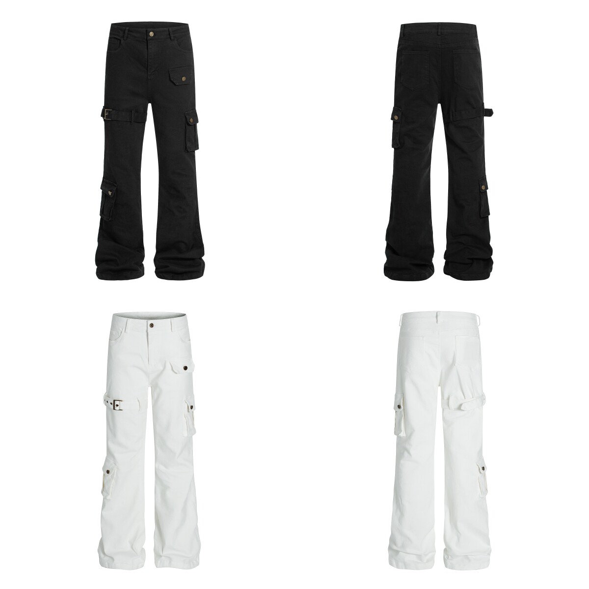Metal Strap Pleats Multi-Pocket Slim Straight Cargo Pants WN23016