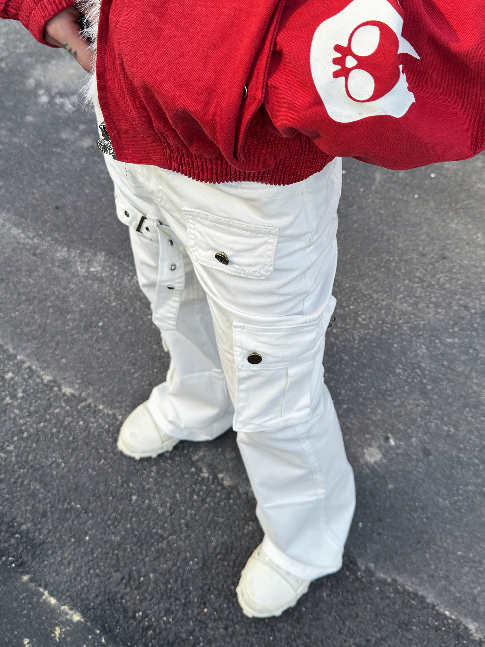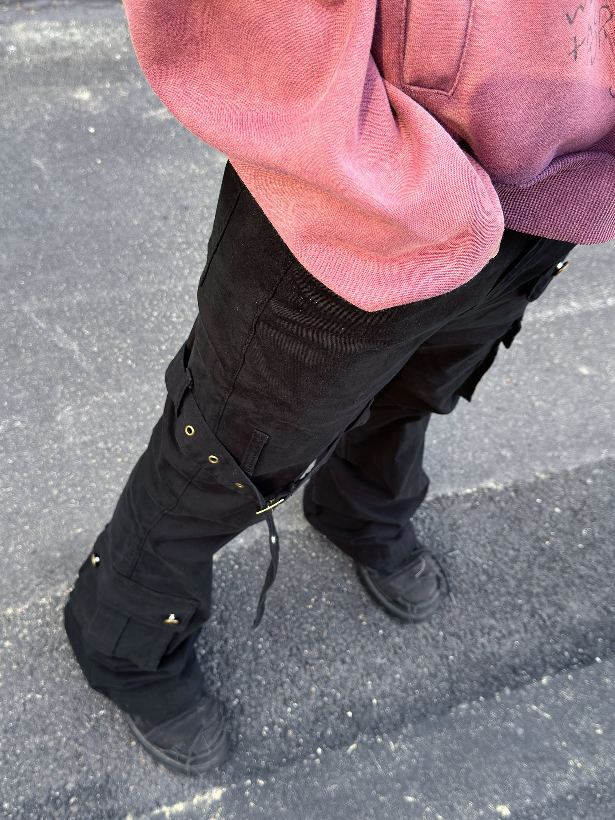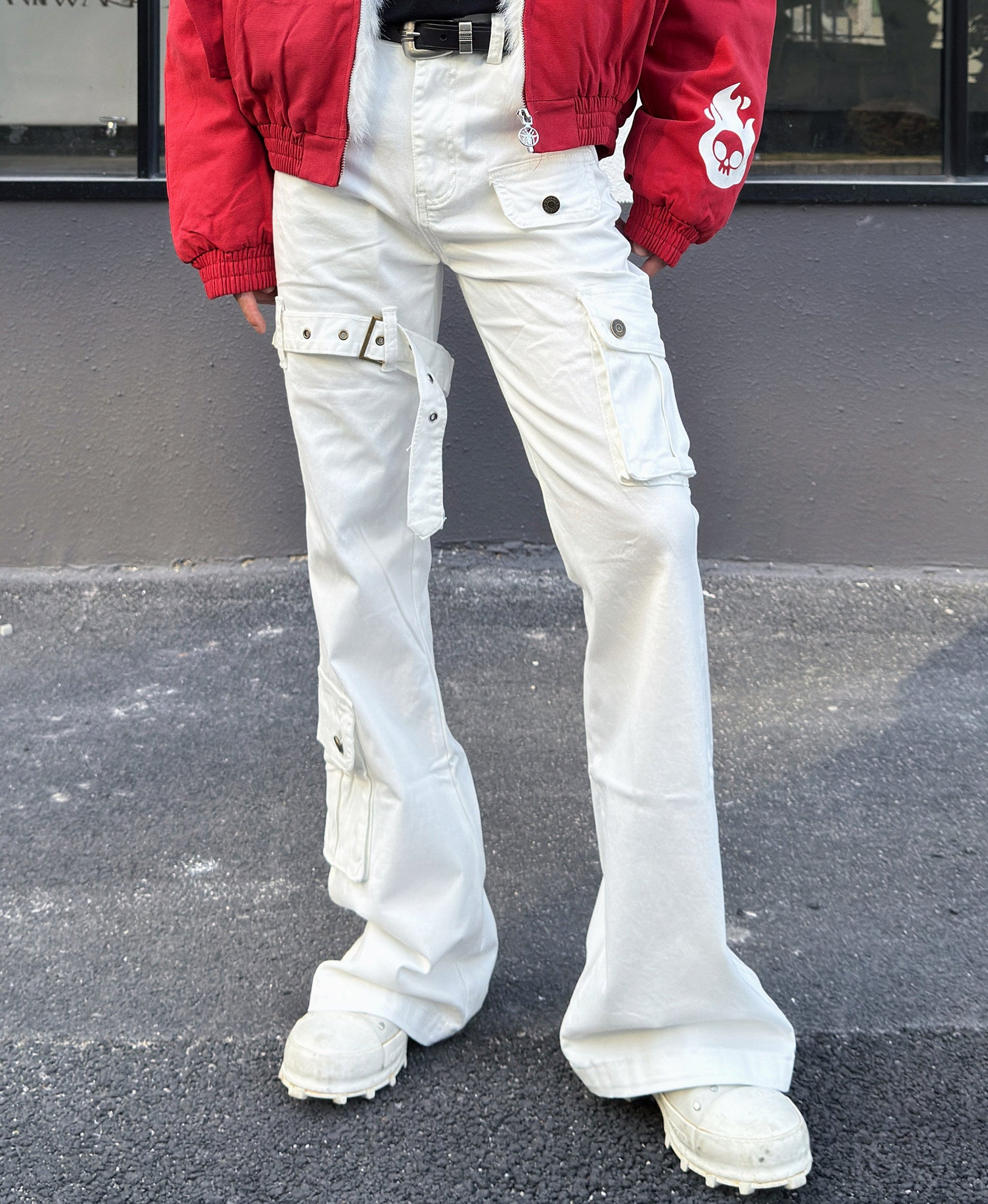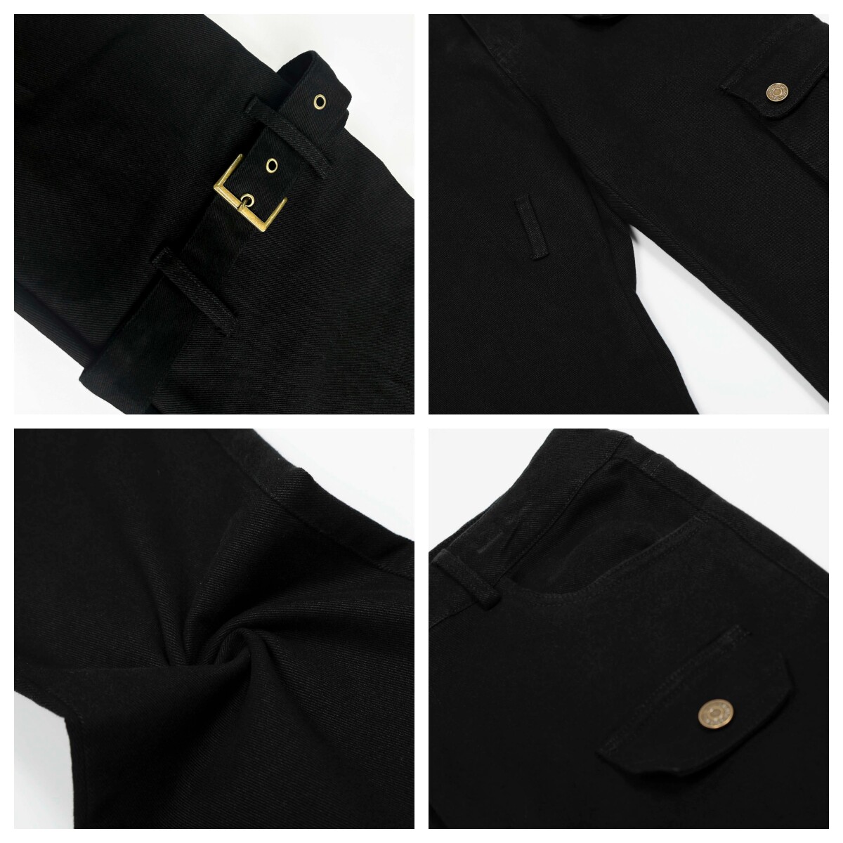Metal Strap Pleats Multi-Pocket Slim Straight Cargo Pants WN23016