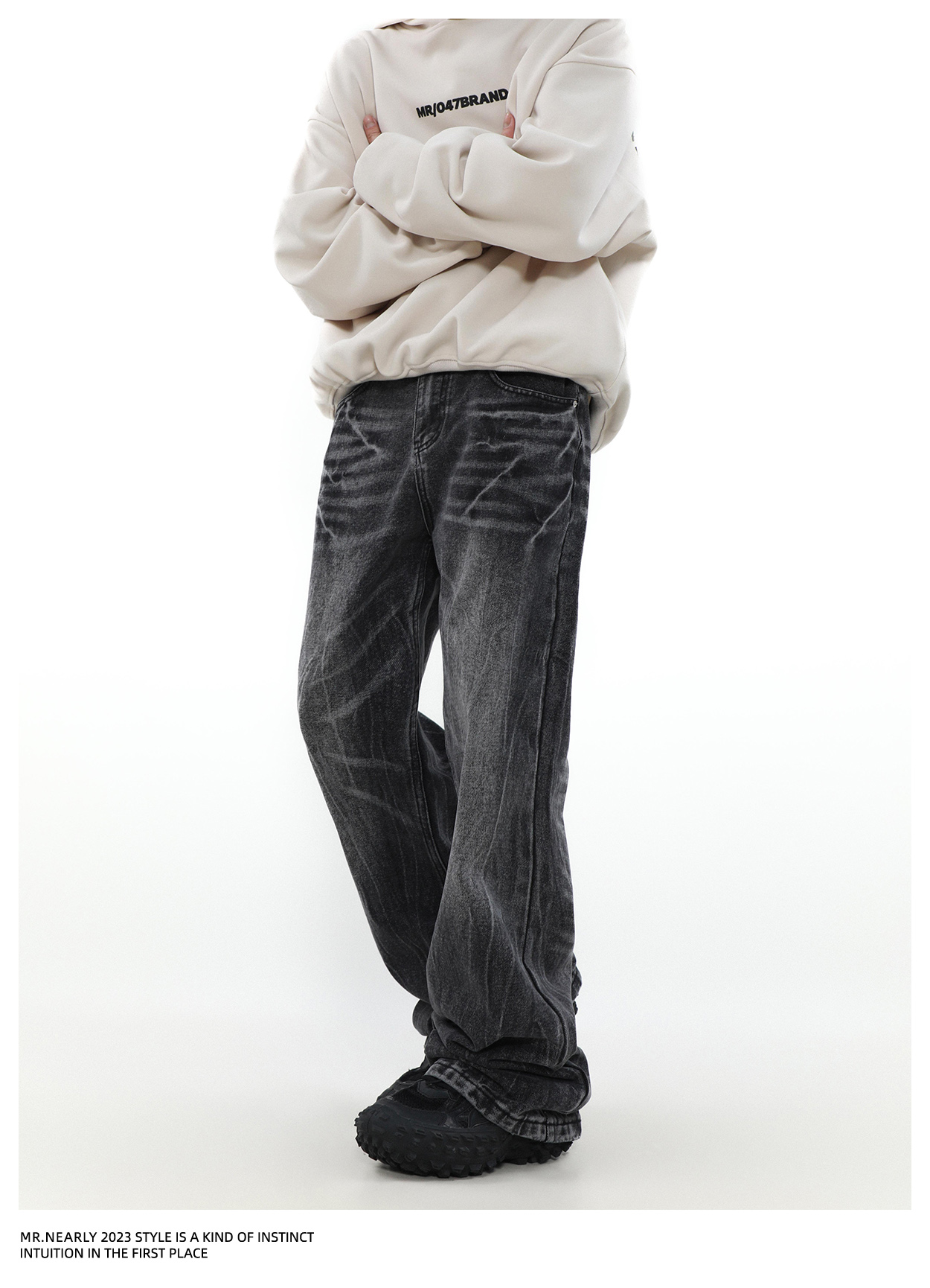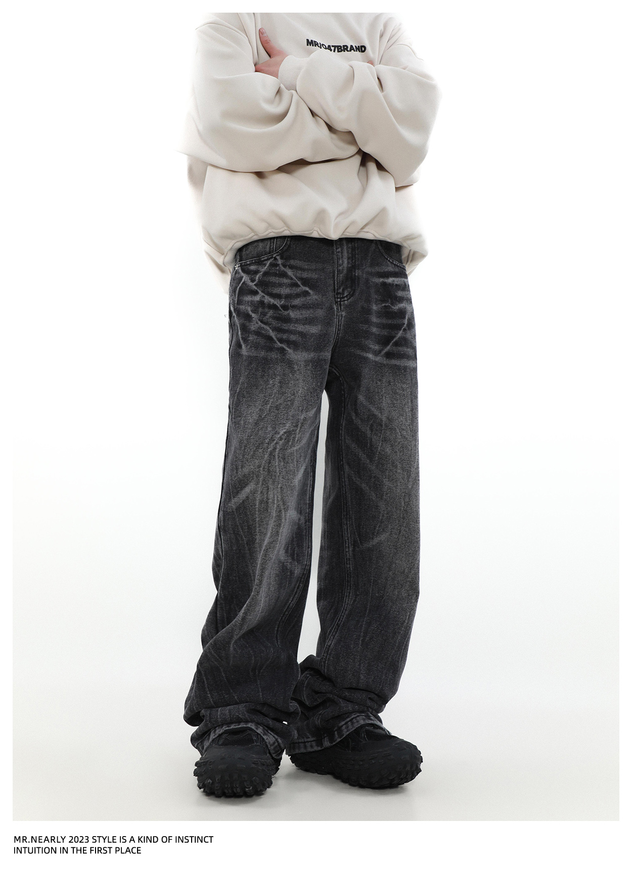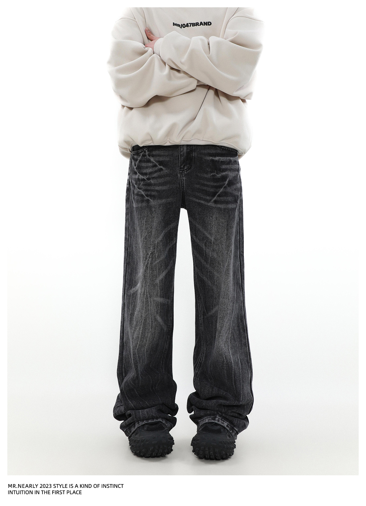 Retro Style Wash Straight Leg Denim Jeans WN4098