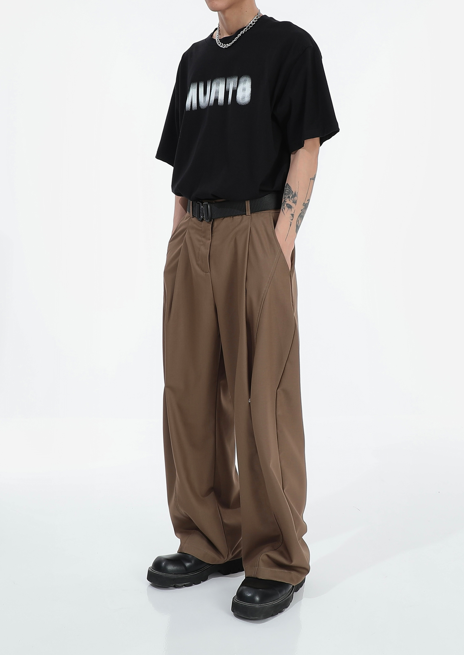 High Waist Wide-Leg Pleats Trousers WN5697