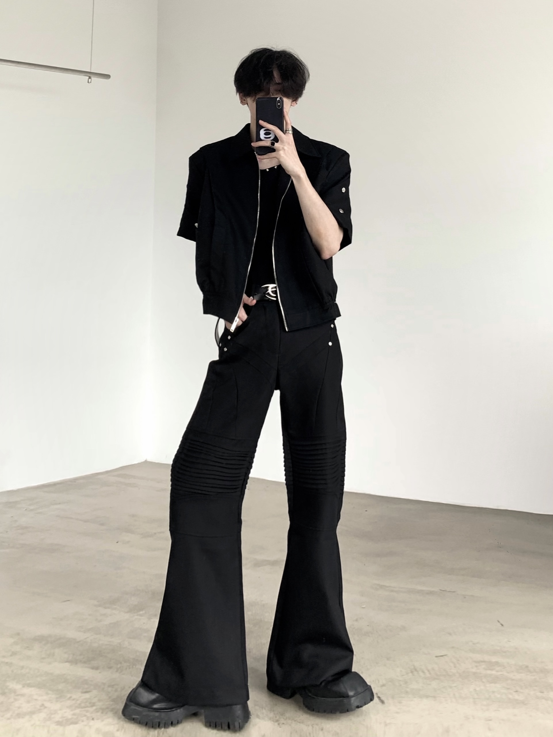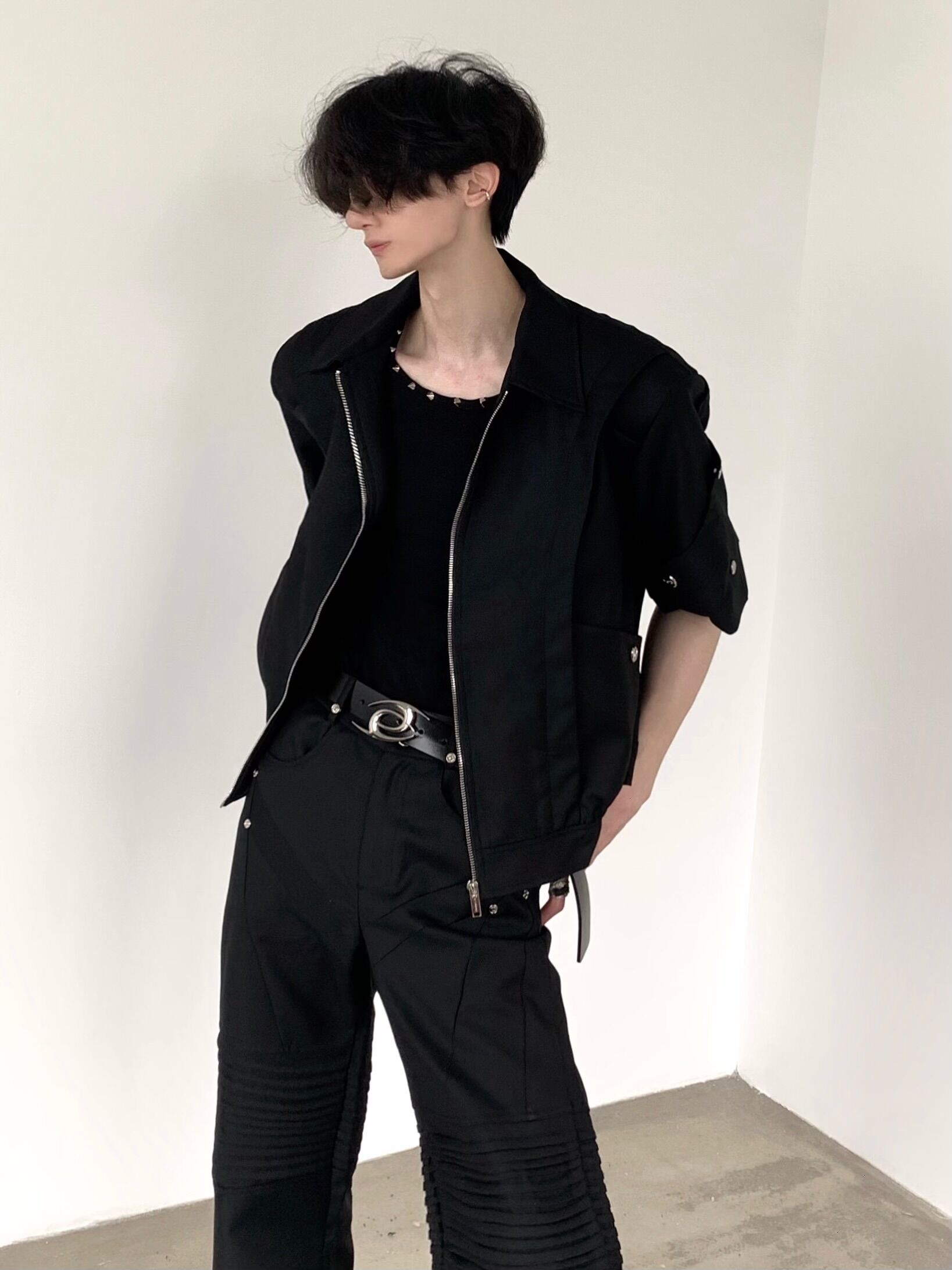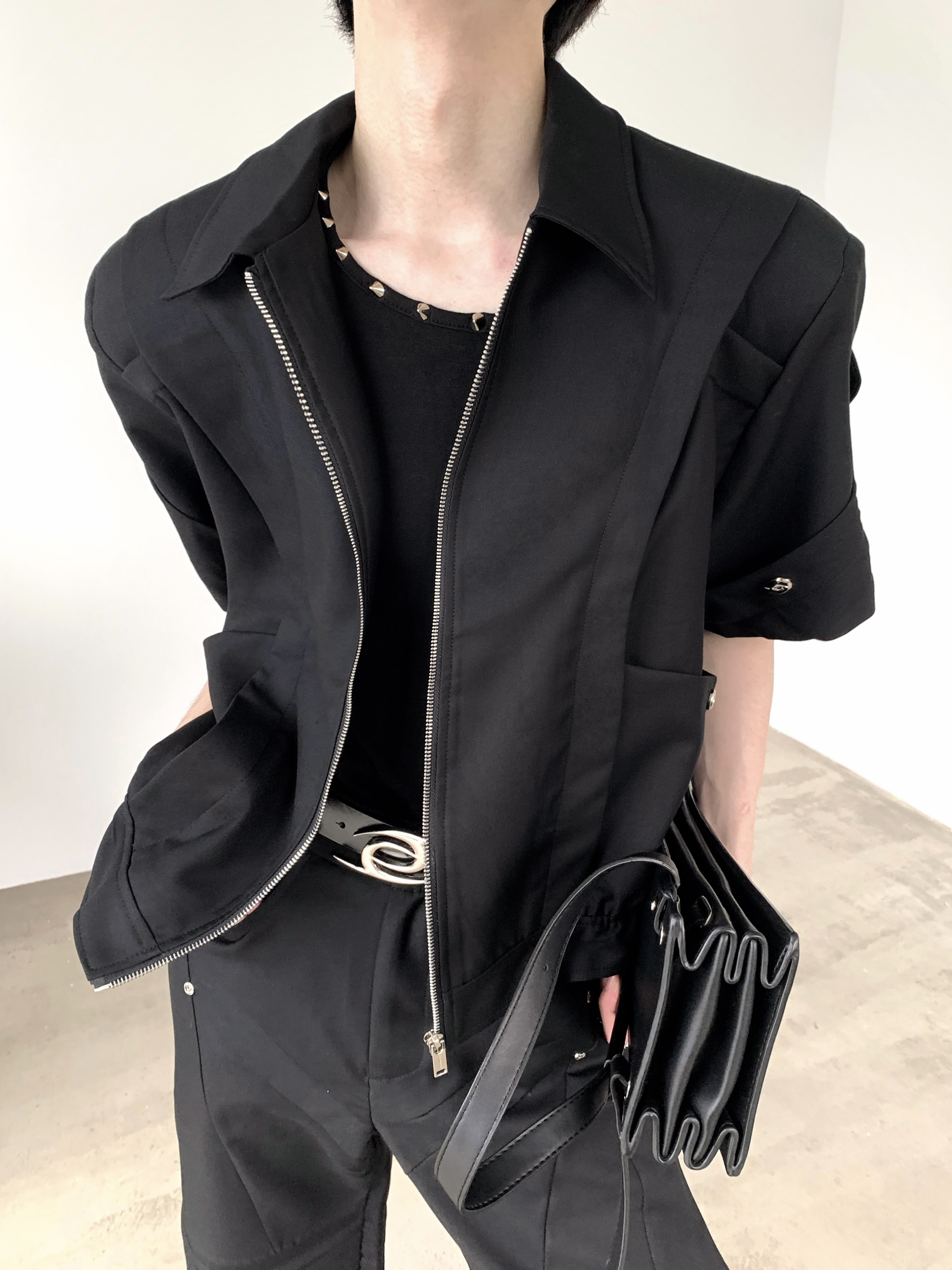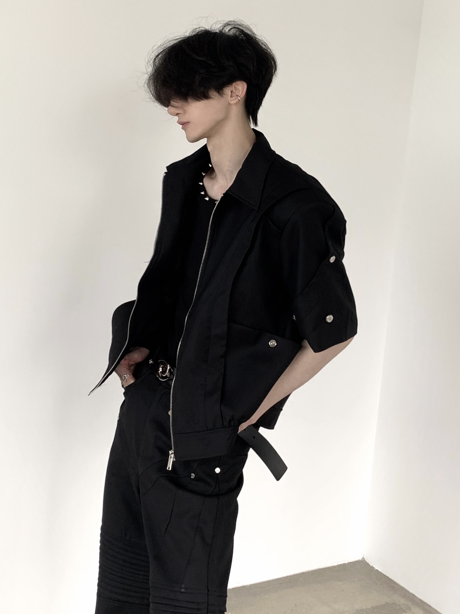 Stand Neck Short Sleeve Zipper Shoulder Pad Jacket WN7062