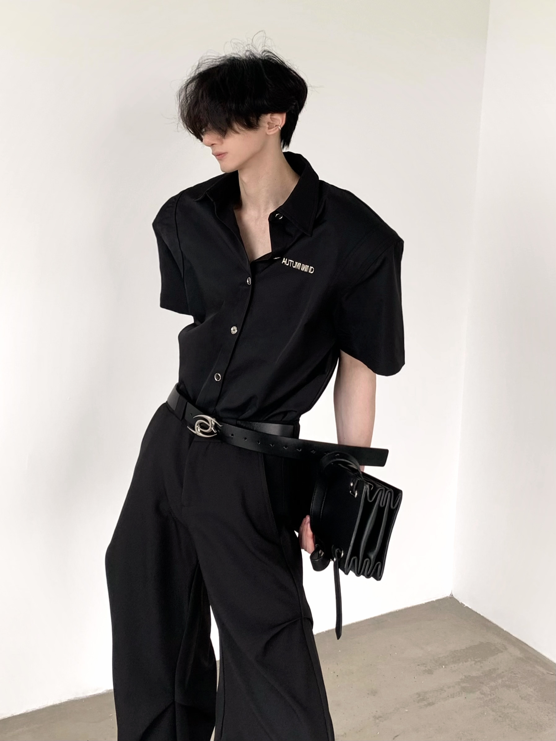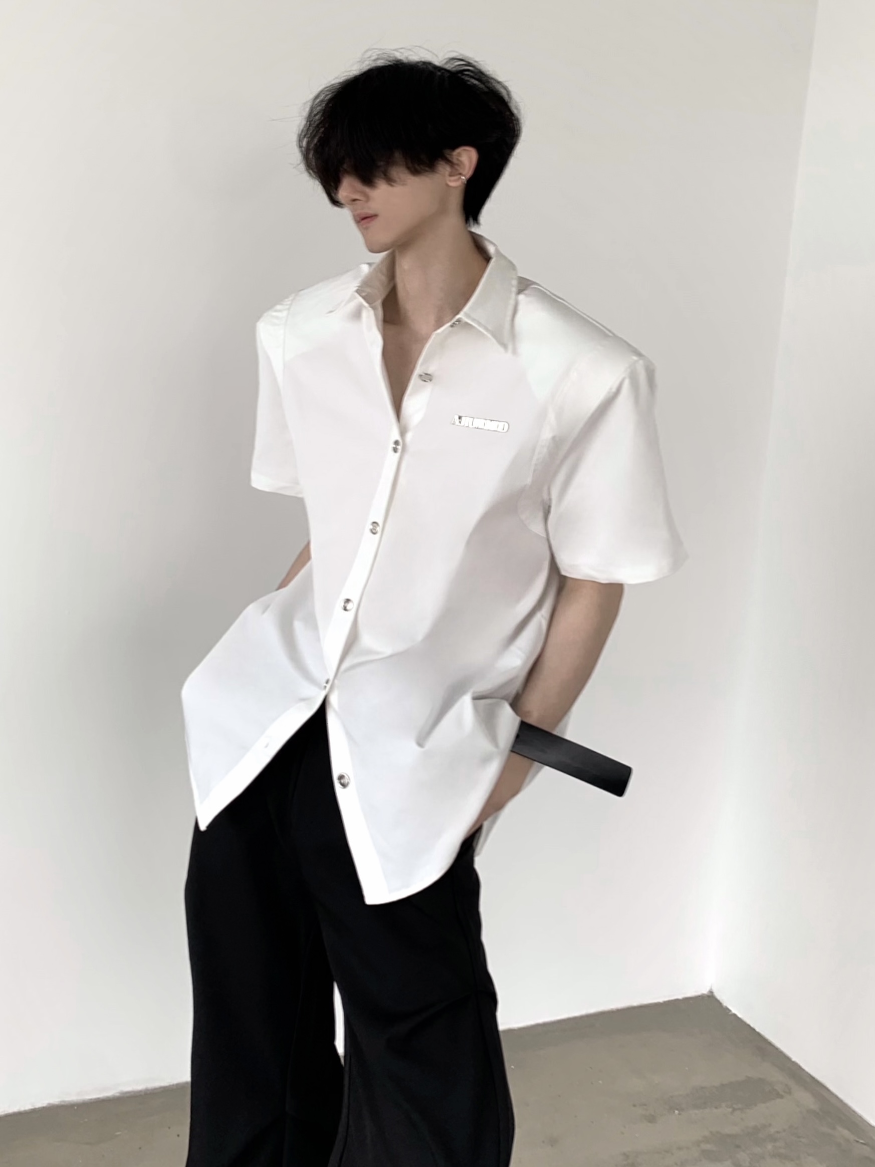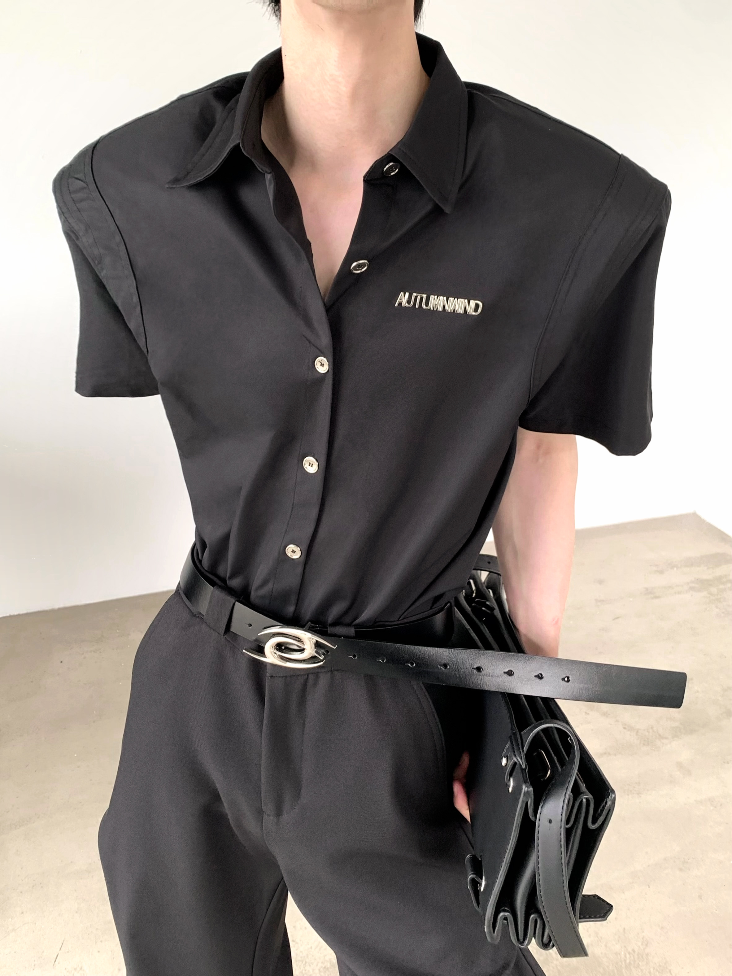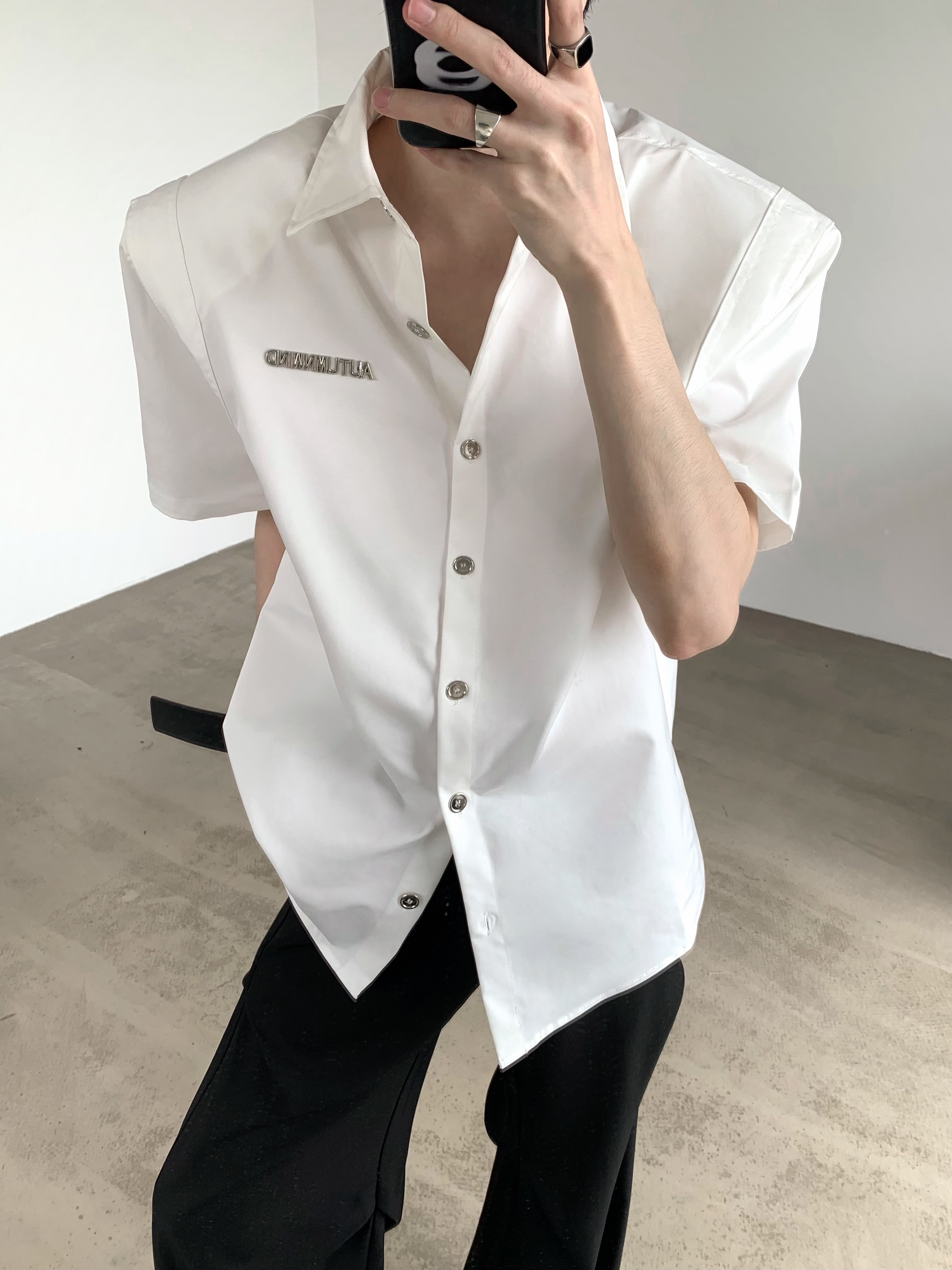 Metal Design Shoulder Pad Short Sleeve Shirt WN7069