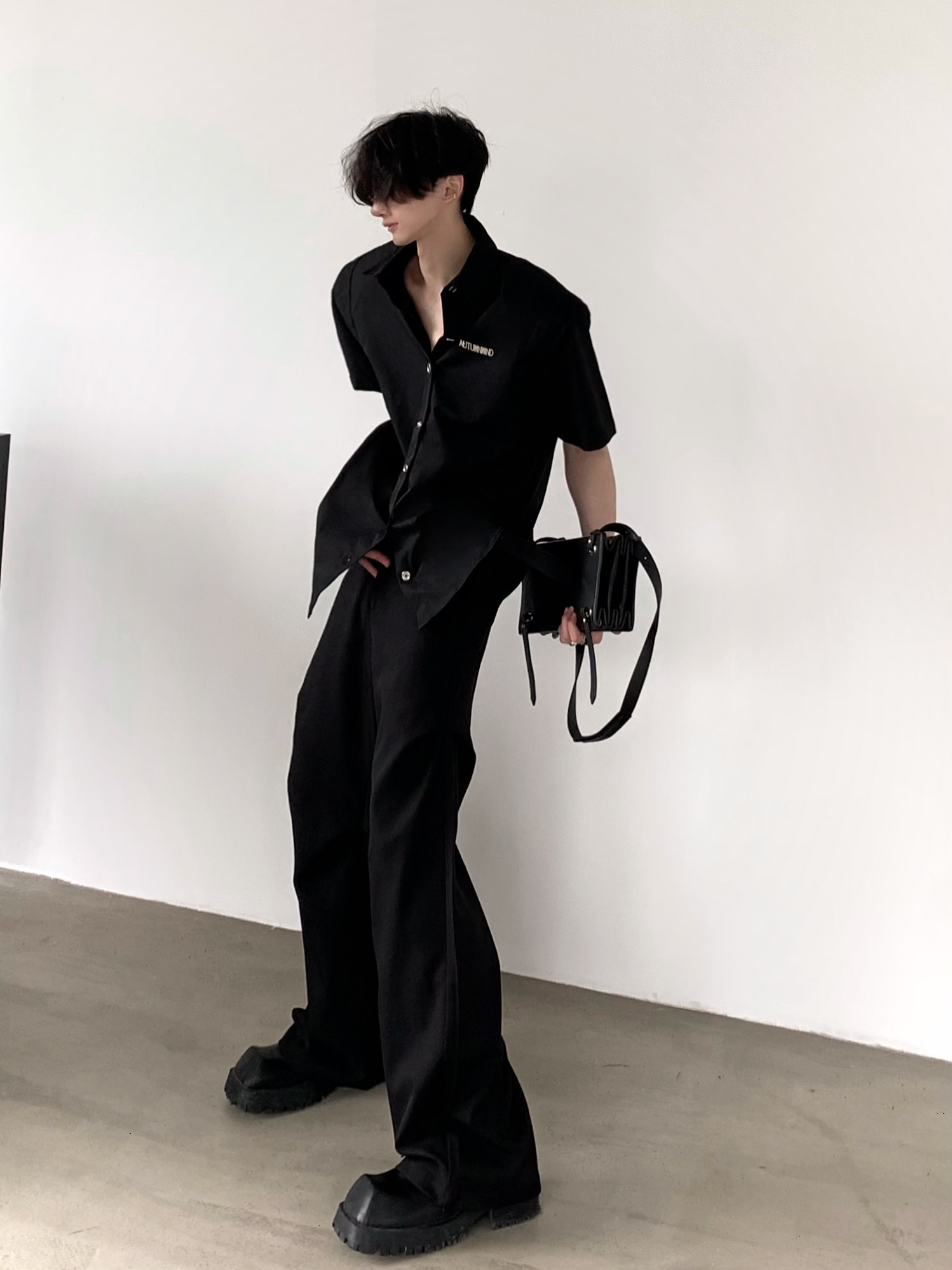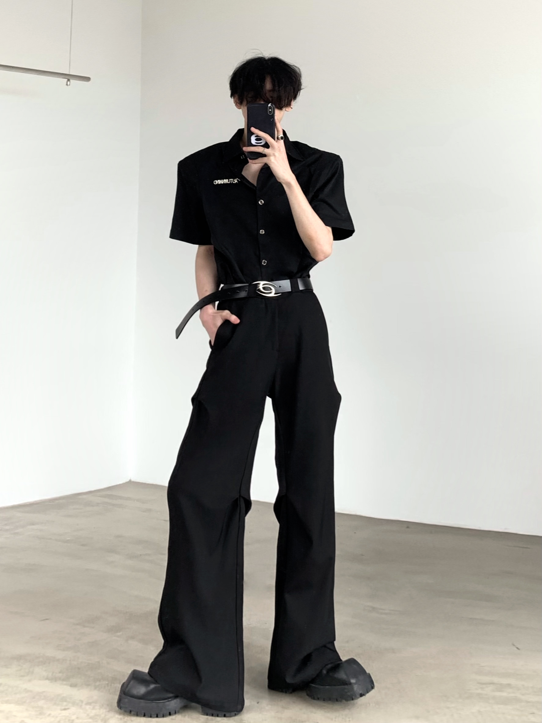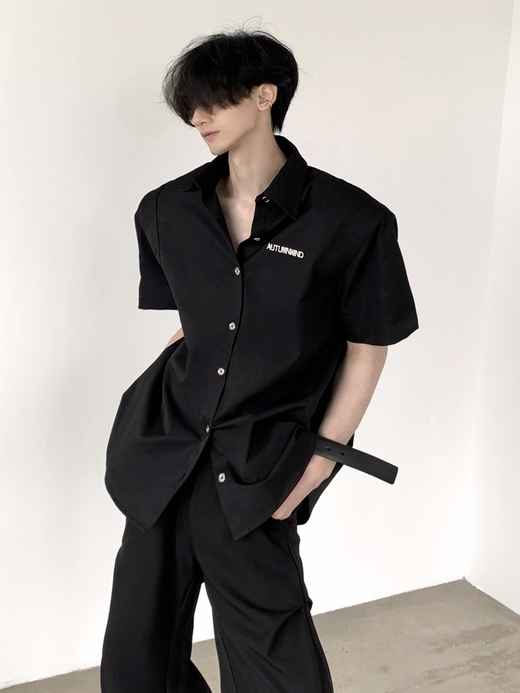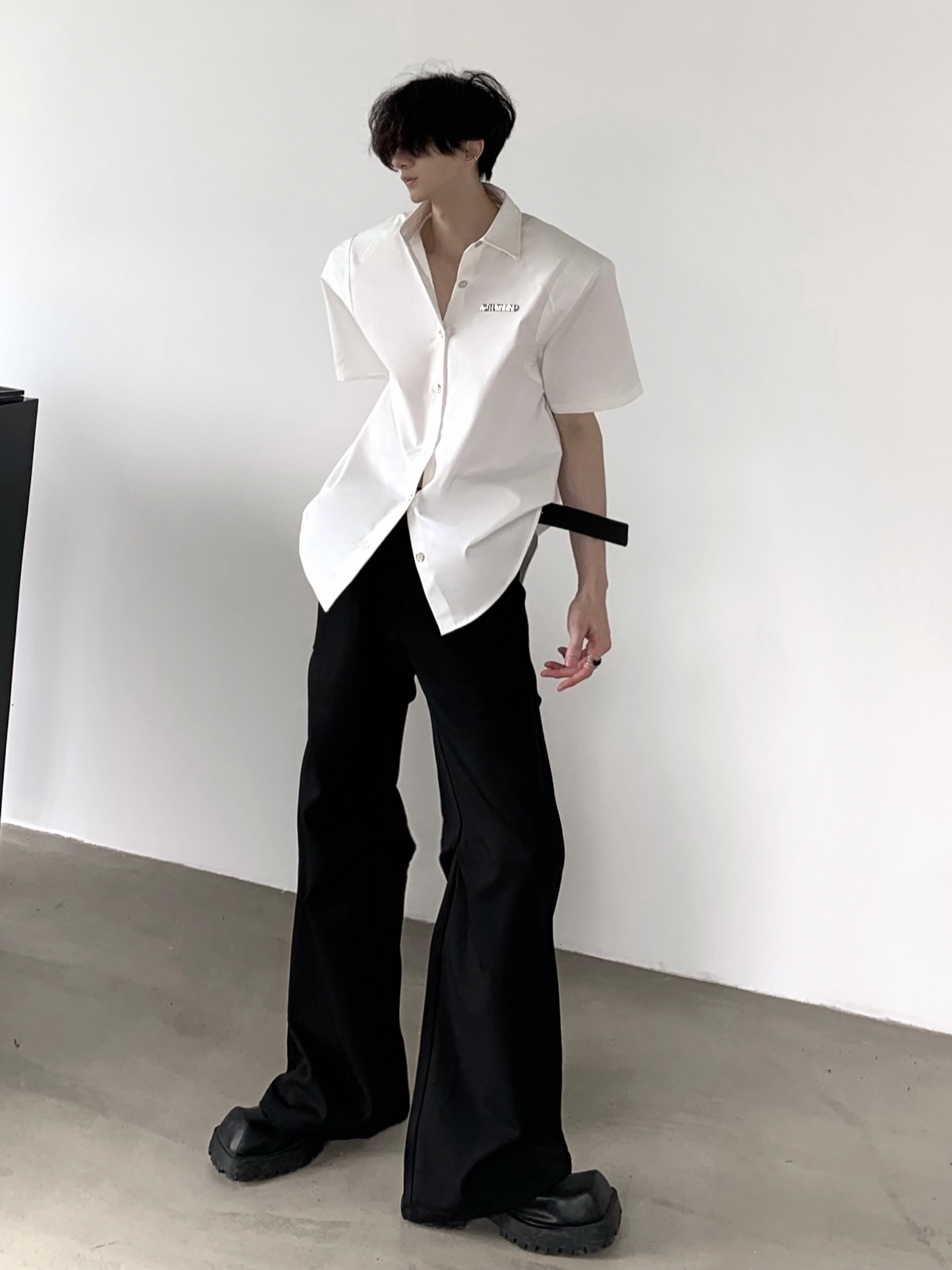 Metal Design Shoulder Pad Short Sleeve Shirt WN7069