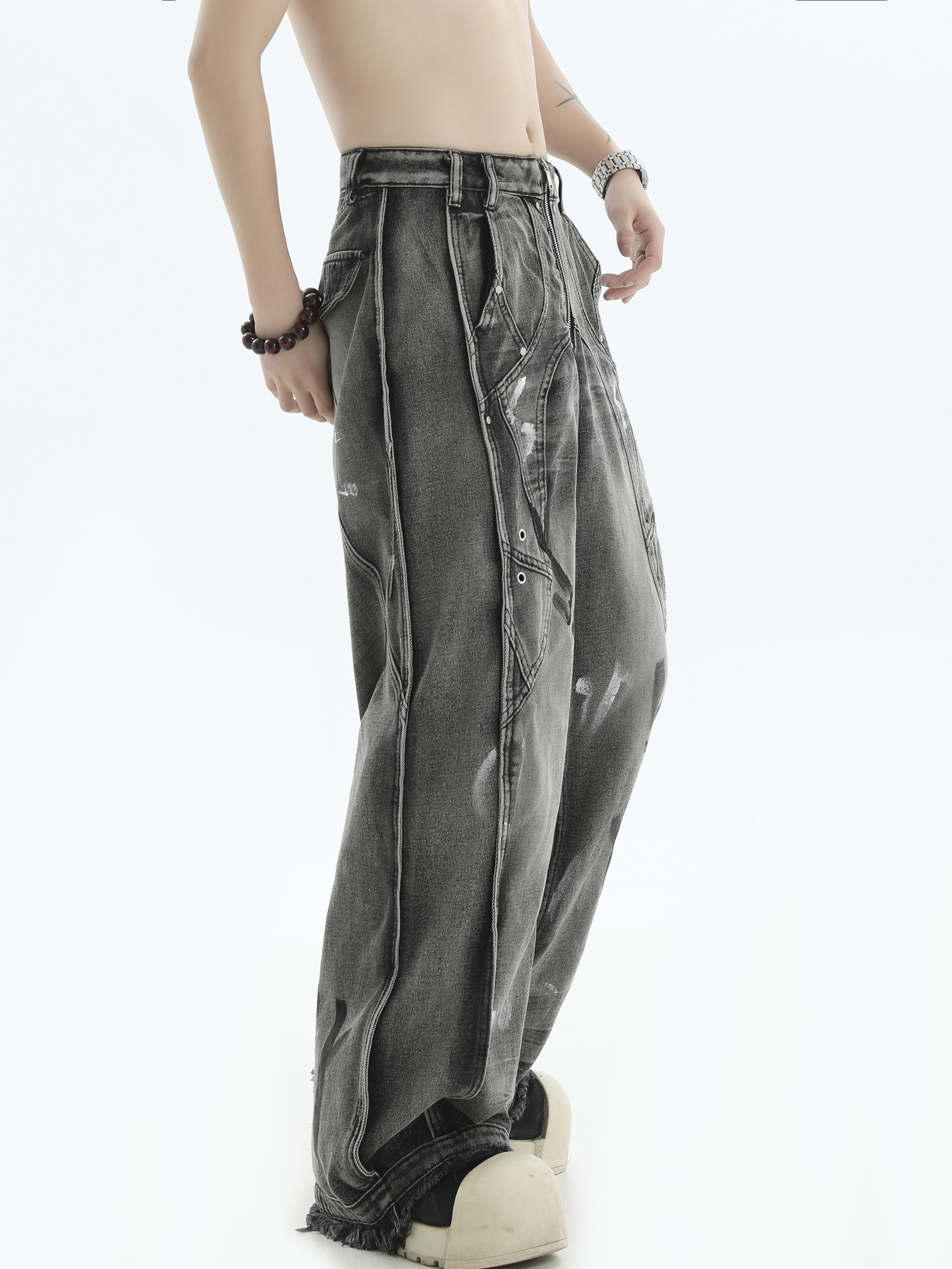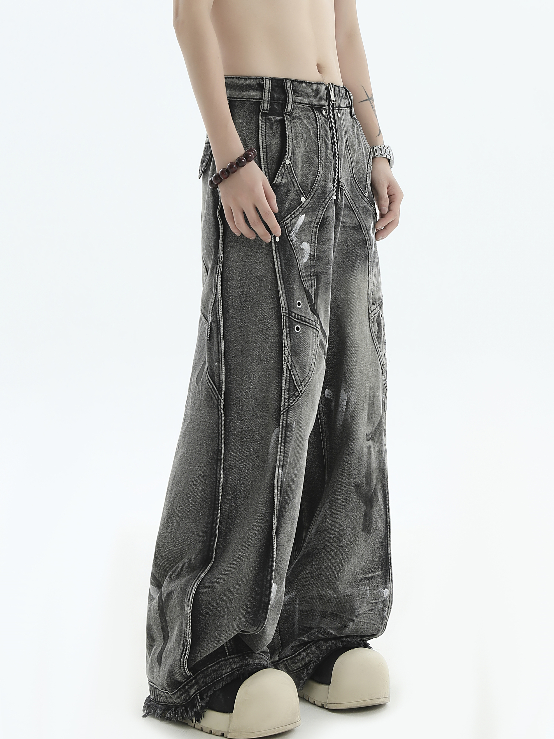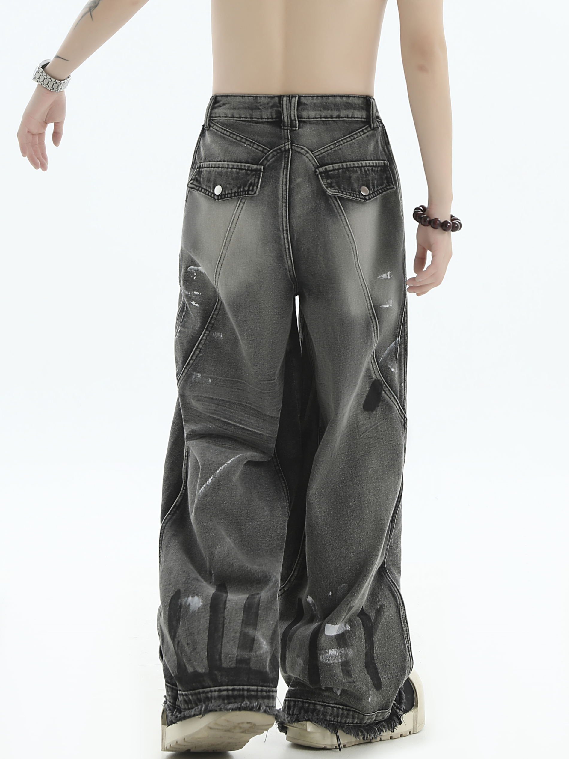 Patchwork Wide Leg Denim Jeans WN7201