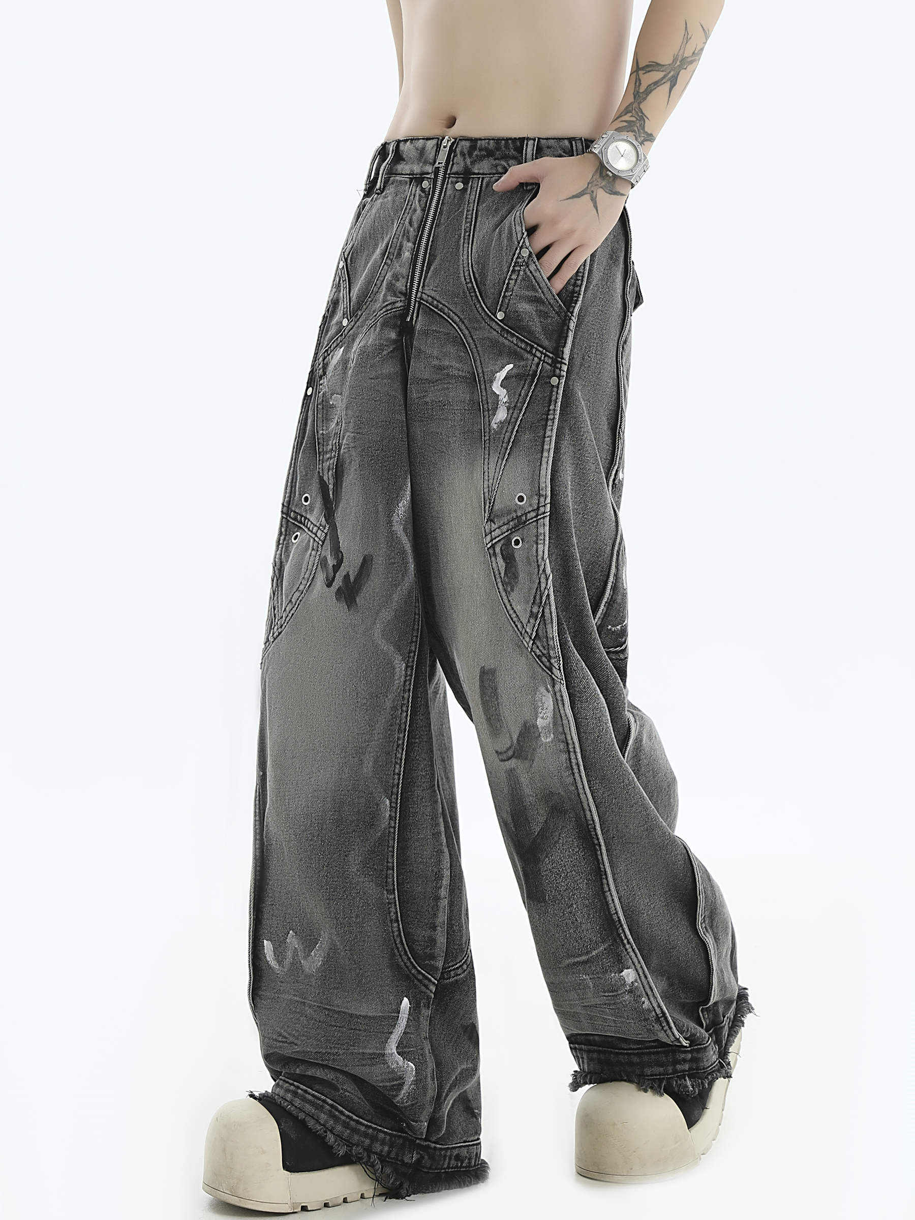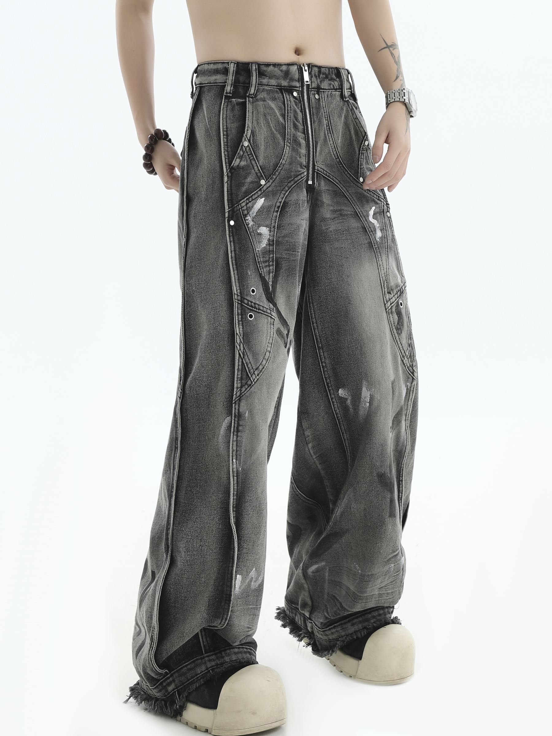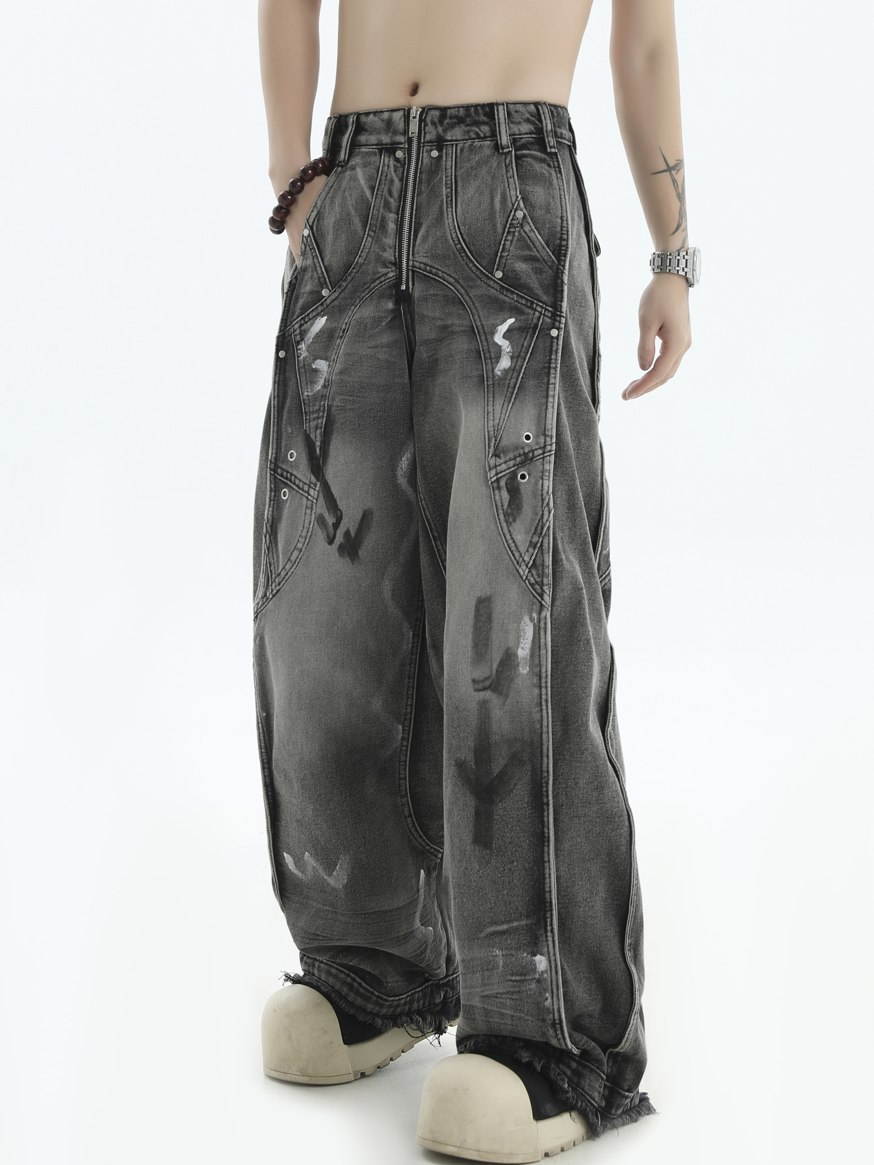 Patchwork Wide Leg Denim Jeans WN7201