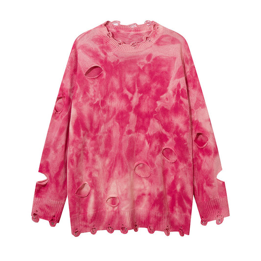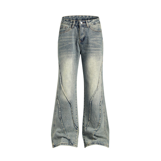 Washed Damage Metal Stud Wide Leg Denim Jeans WN22658