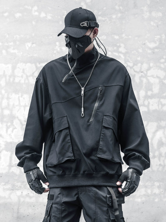 Zipper Large Pocket Oversize Long Sleeve T-shirt WN22350