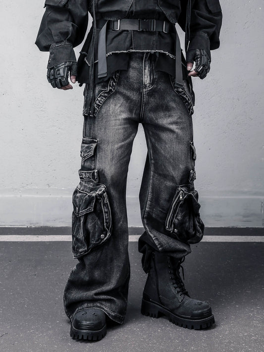 Wash Multi Pocket Flare Denim Jeans WN22306