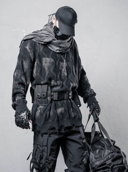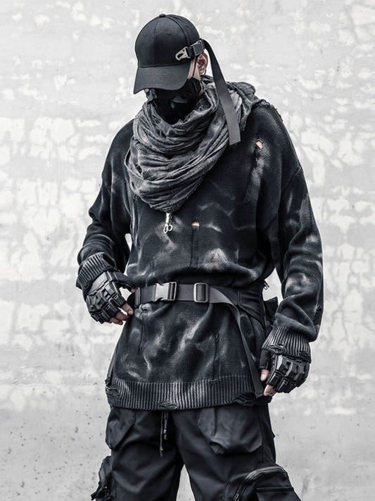 Wash Tie-Dye Damage Oversize Knit Sweater WN22349