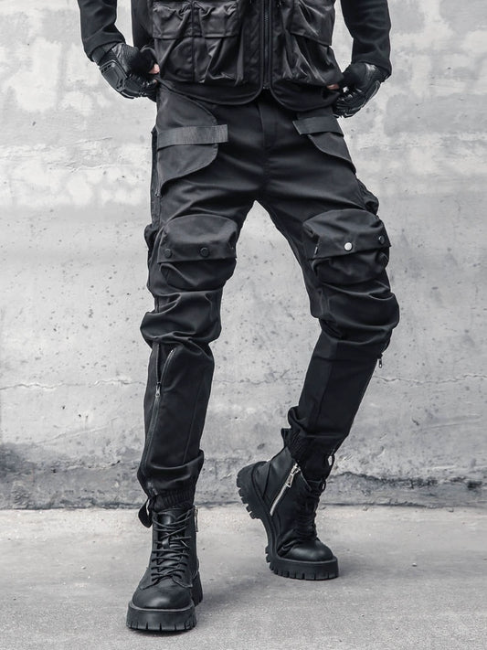 Zipper Large Pocket Mix Patch Cuffed Cargo Pants WN22361