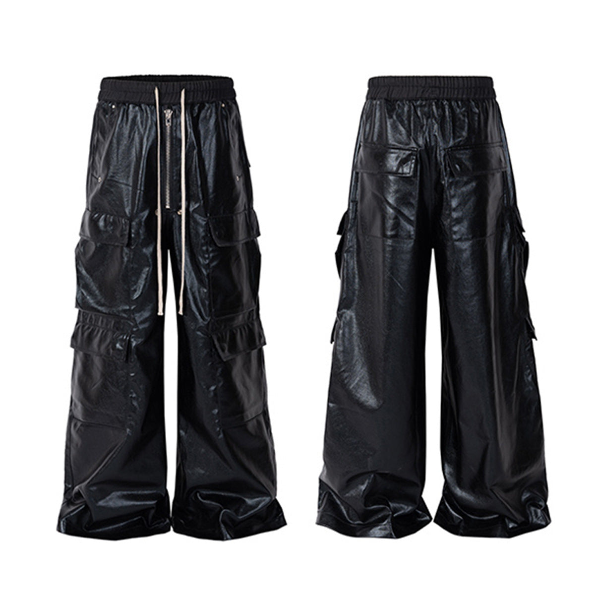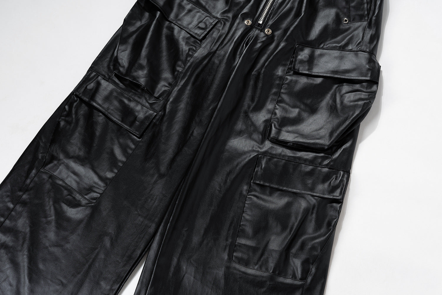 PU Coated Wide-Leg Cargo Pants WN11369