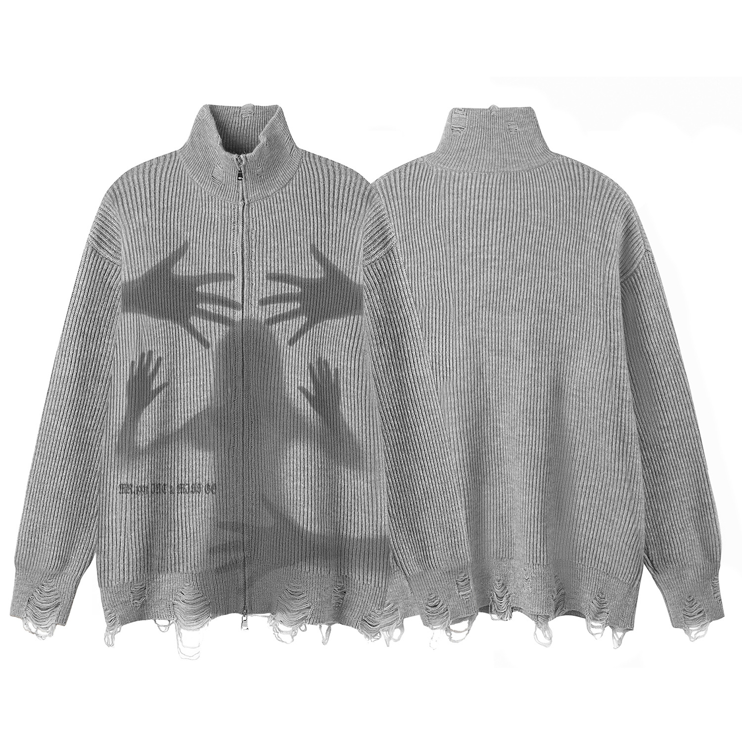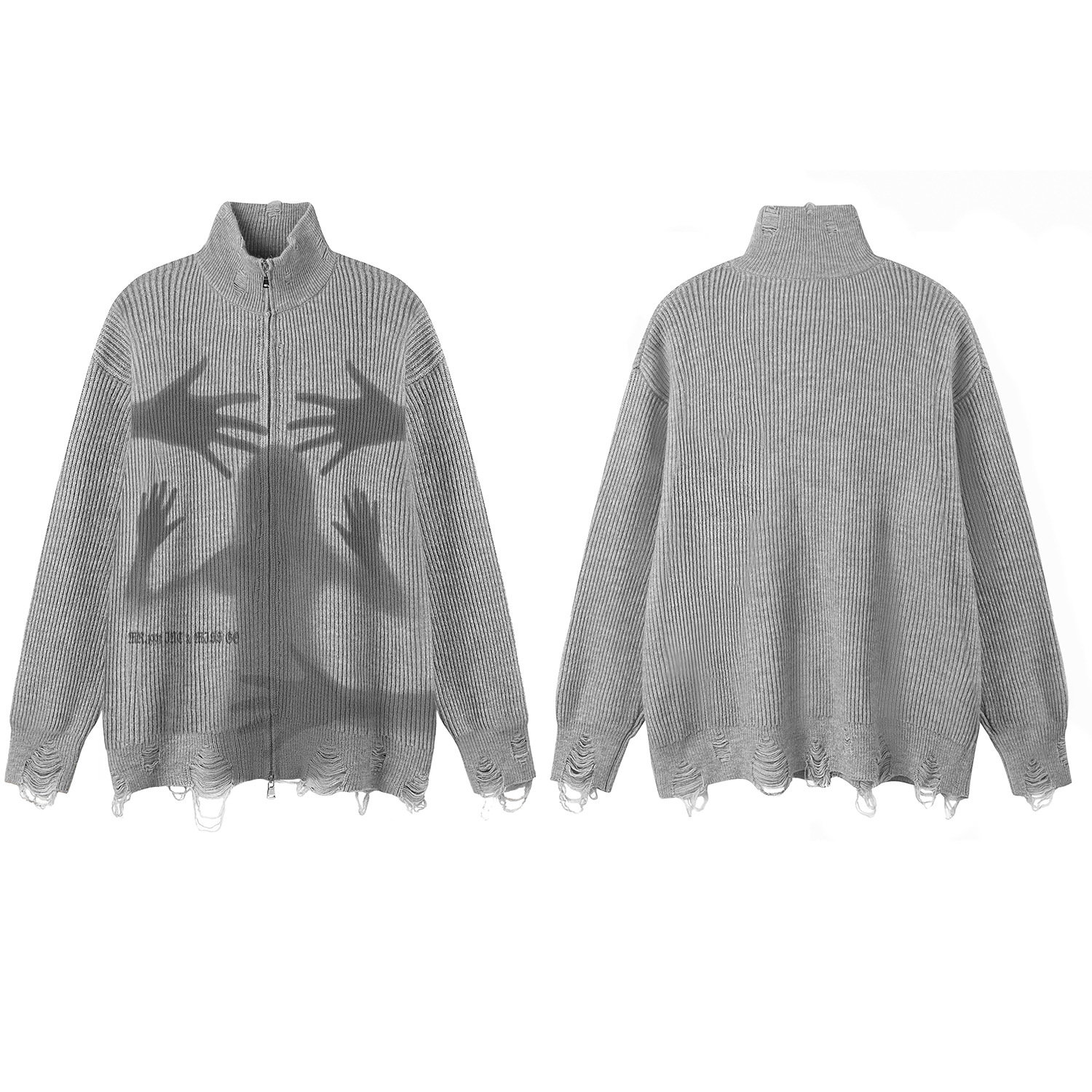 Abstract Print Zipper Knit Cardigan WN11511