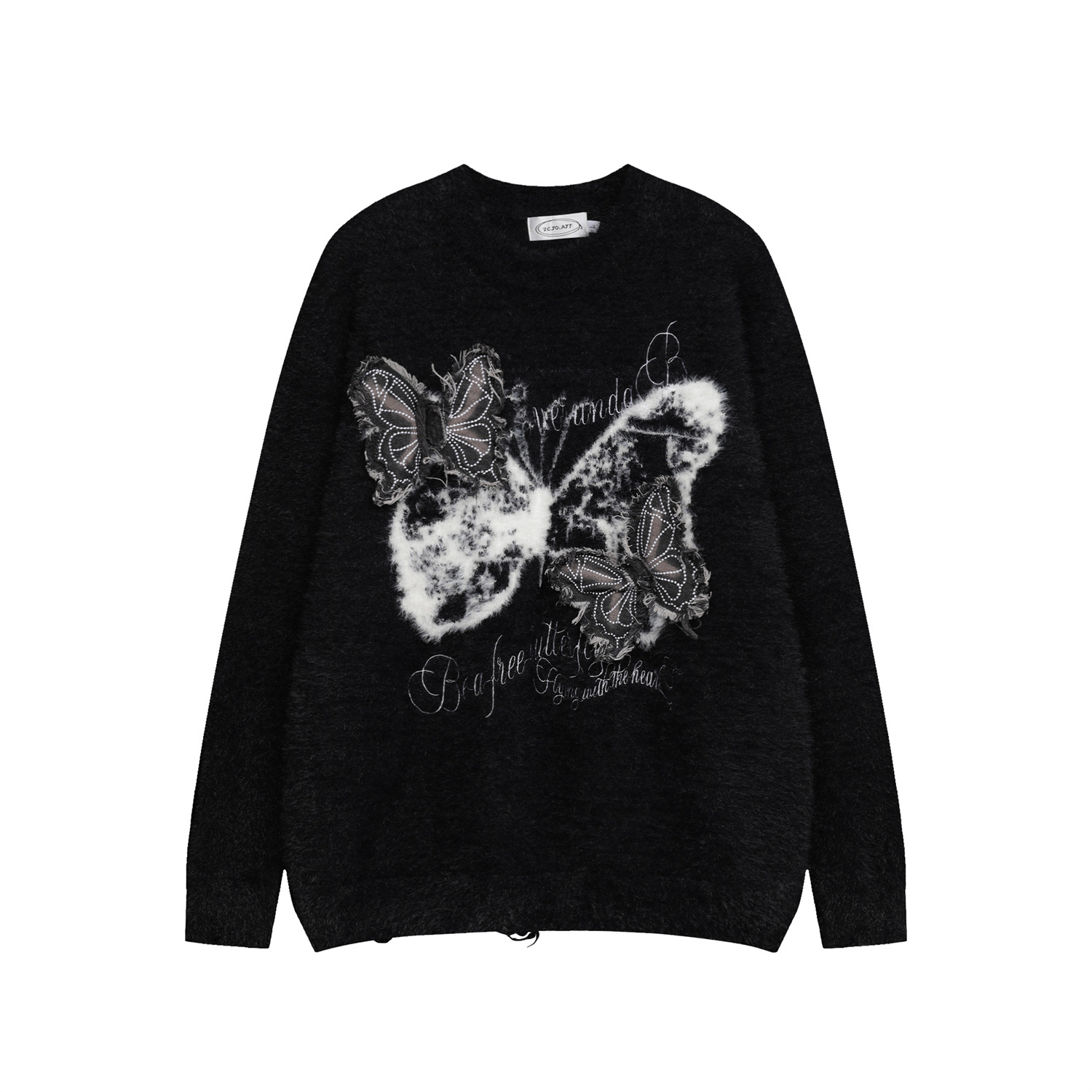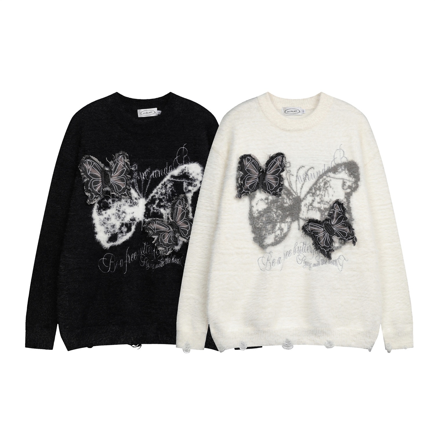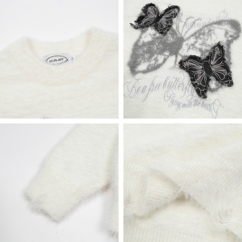 Butterfly Patchwork Embroidery Knit Sweater WN11539