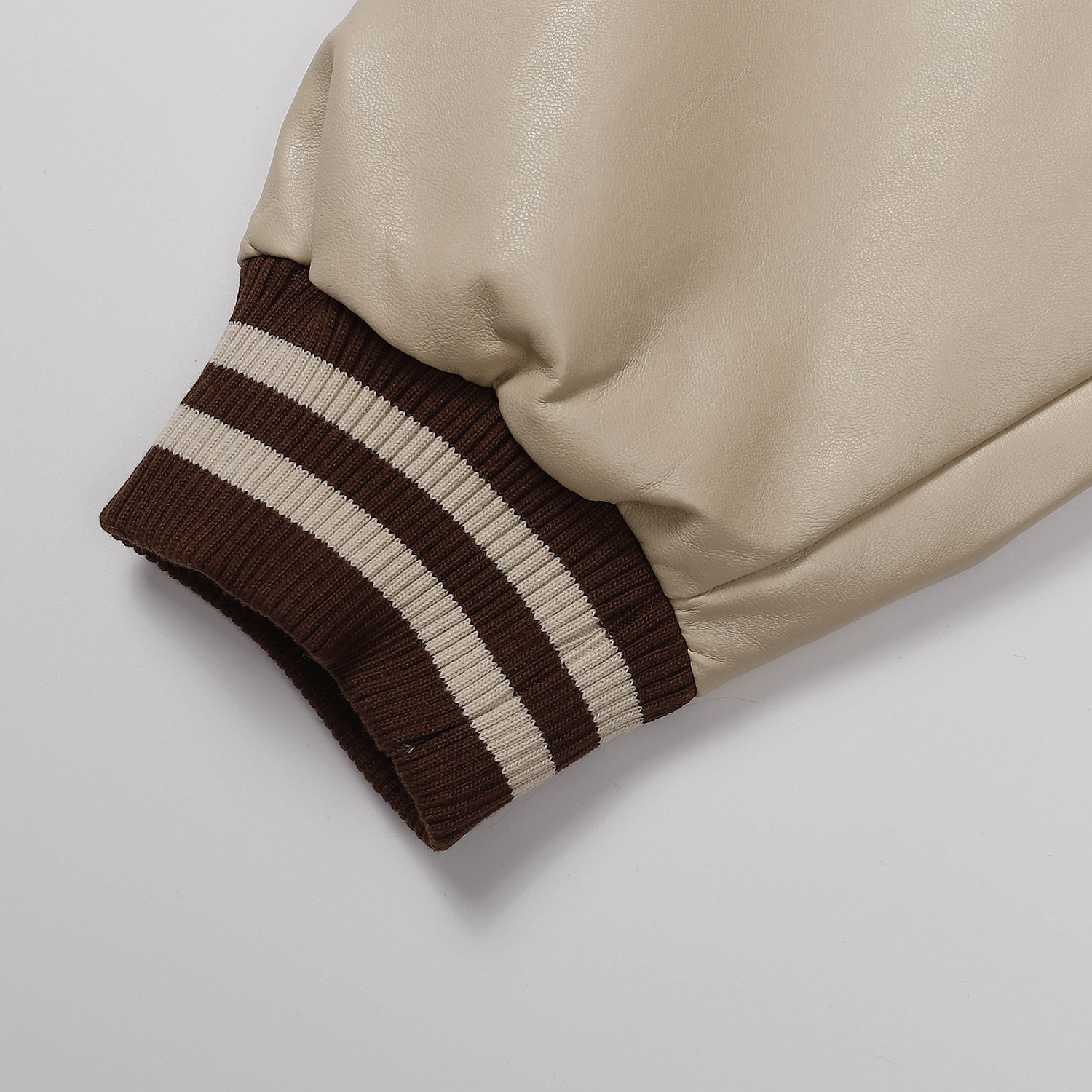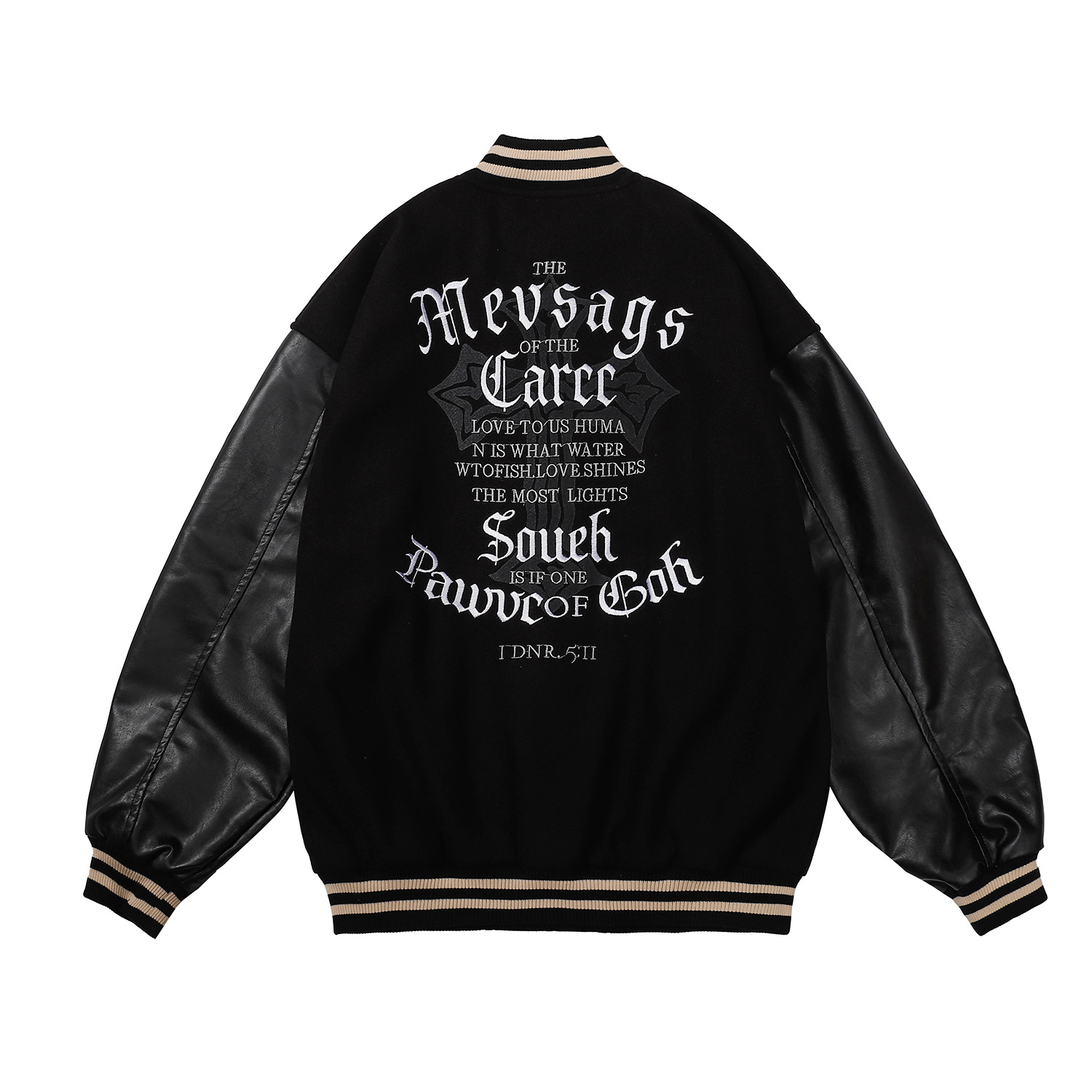 Letter Embroidery PU Leather Patchwork Baseball Jacket WN11573