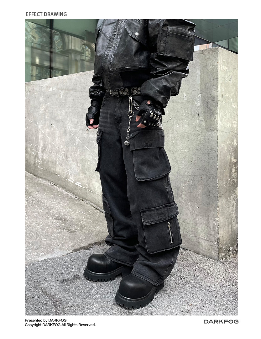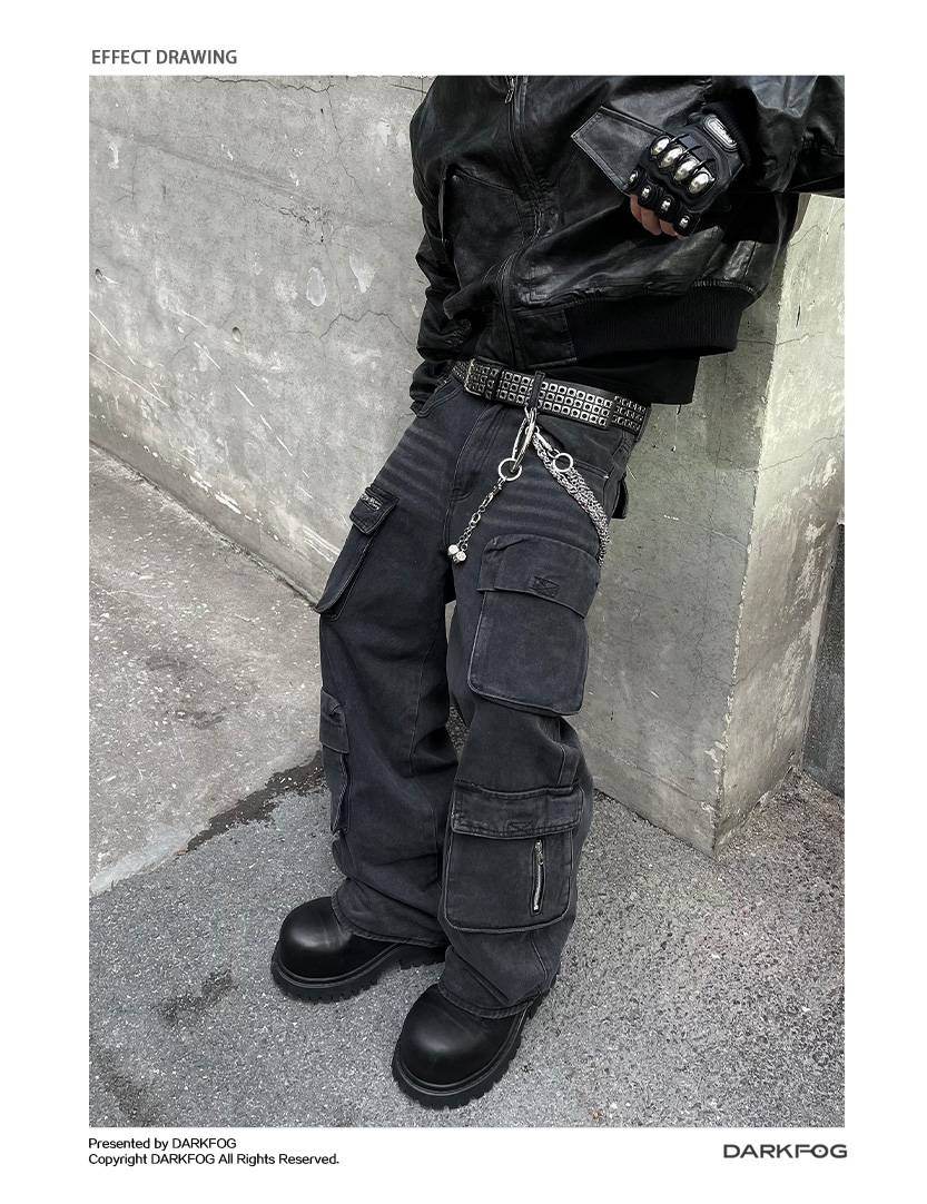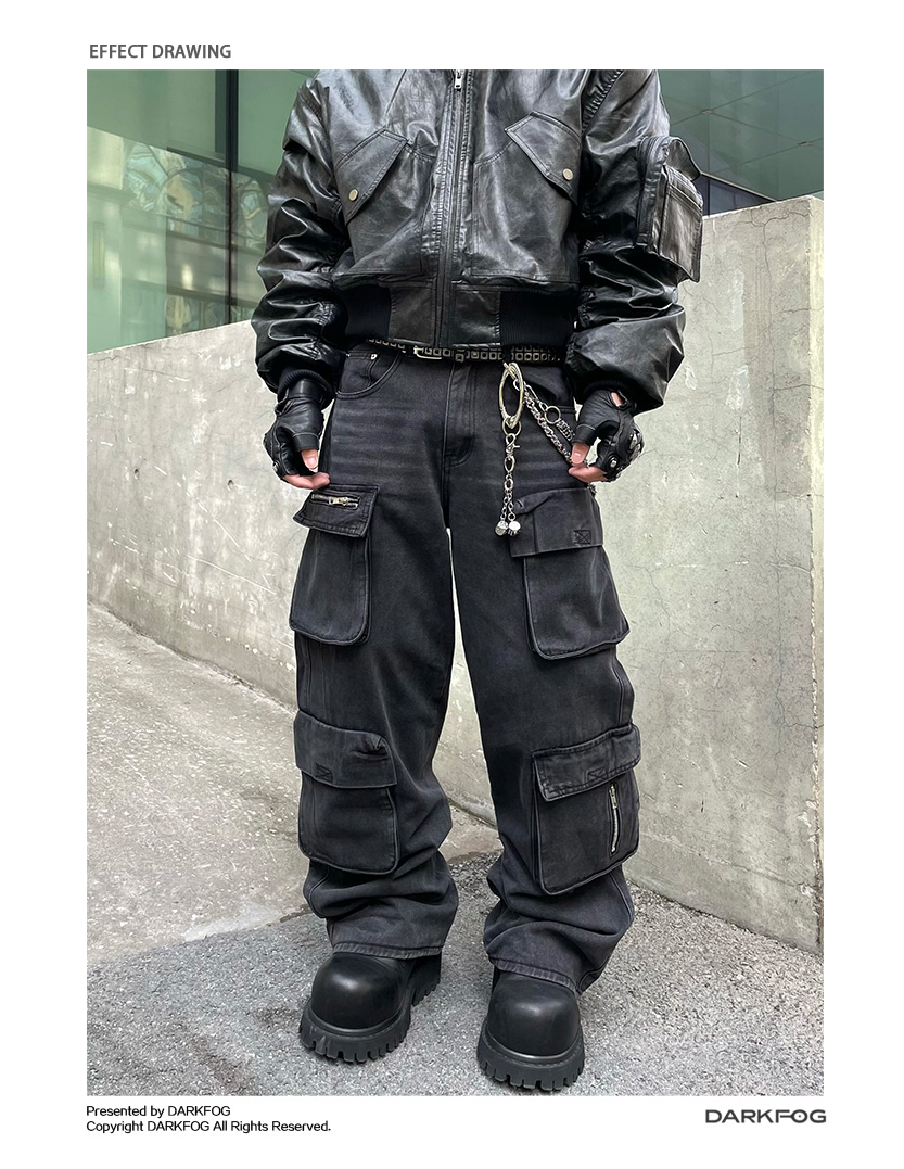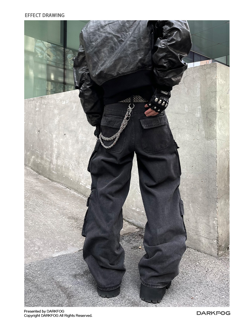 Multi-Pocket Utility Straight Cargo Denim Jeans WN12881